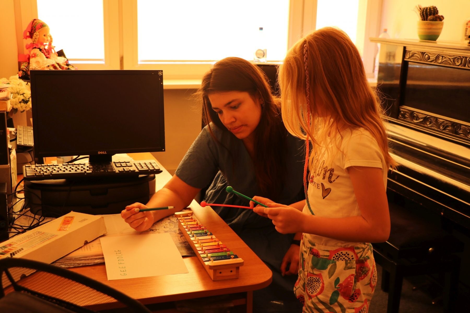 Natomiast podczas zajęć umuzykalniających uczestnicy spróbowali swoich sił grając na keyboardzie i doskonaląc umiejętności wokalne.