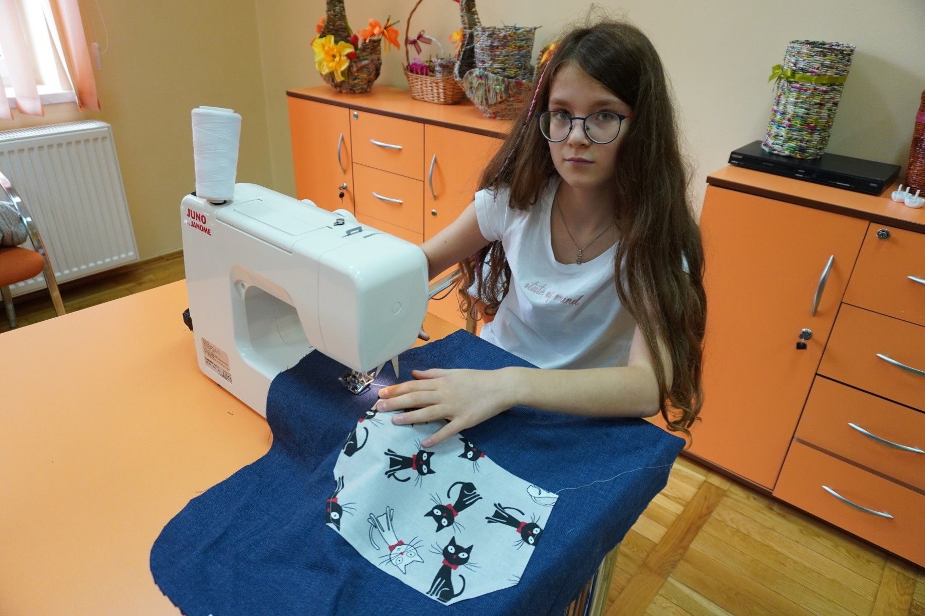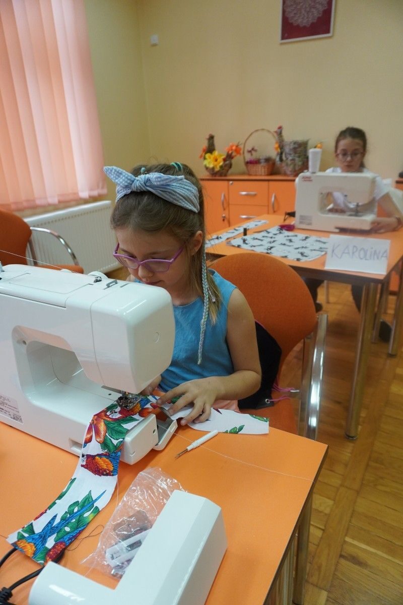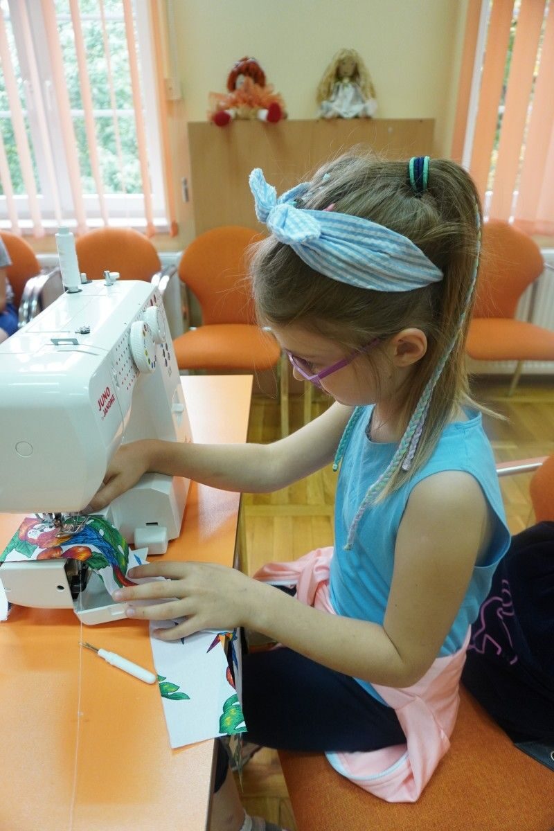 Na zajęciach z kreatywnego szycia się wiele działo. Uczestnicy rozpoczęli warsztaty od nauki obsługi maszyn do szycia ponieważ dla większości było to pierwsze spotkanie z tego typu urządzeniem. Następnie poznali podstawy kroju i projektowali gadżety kuchenne