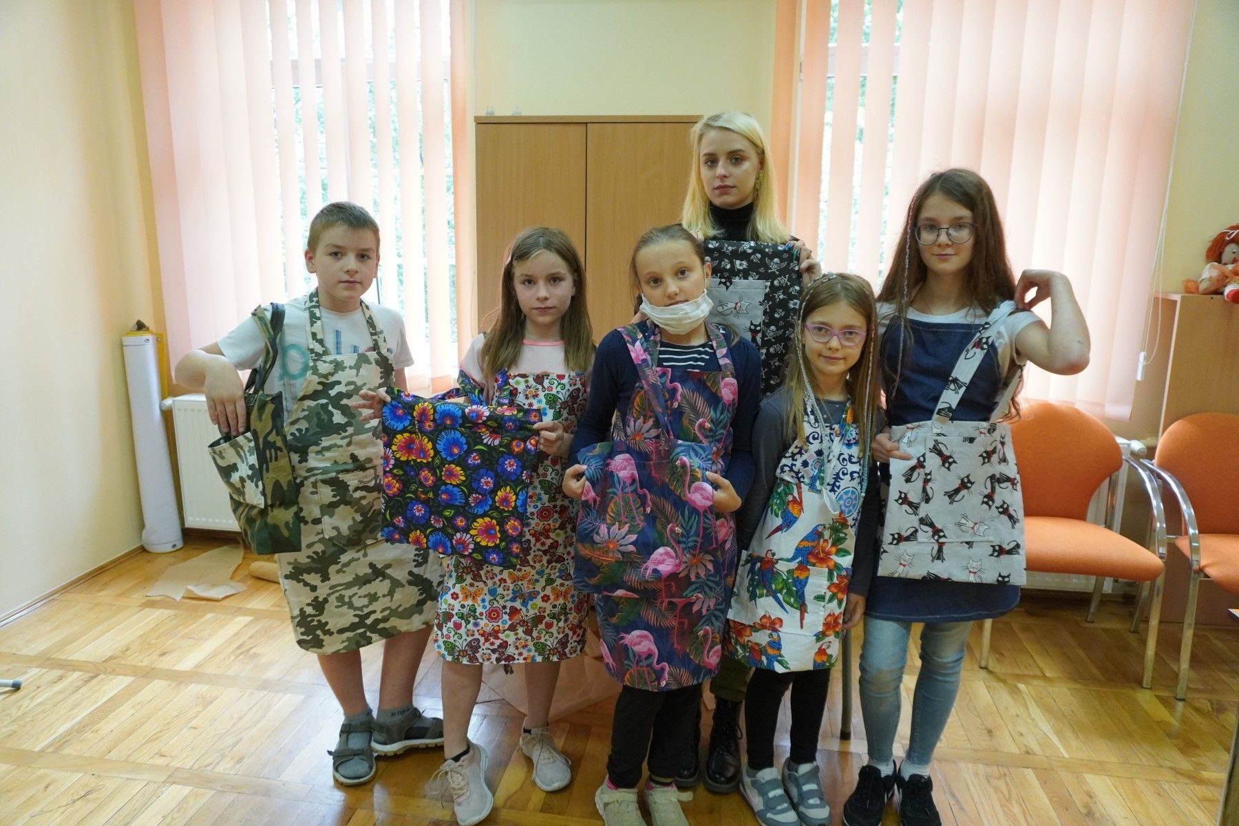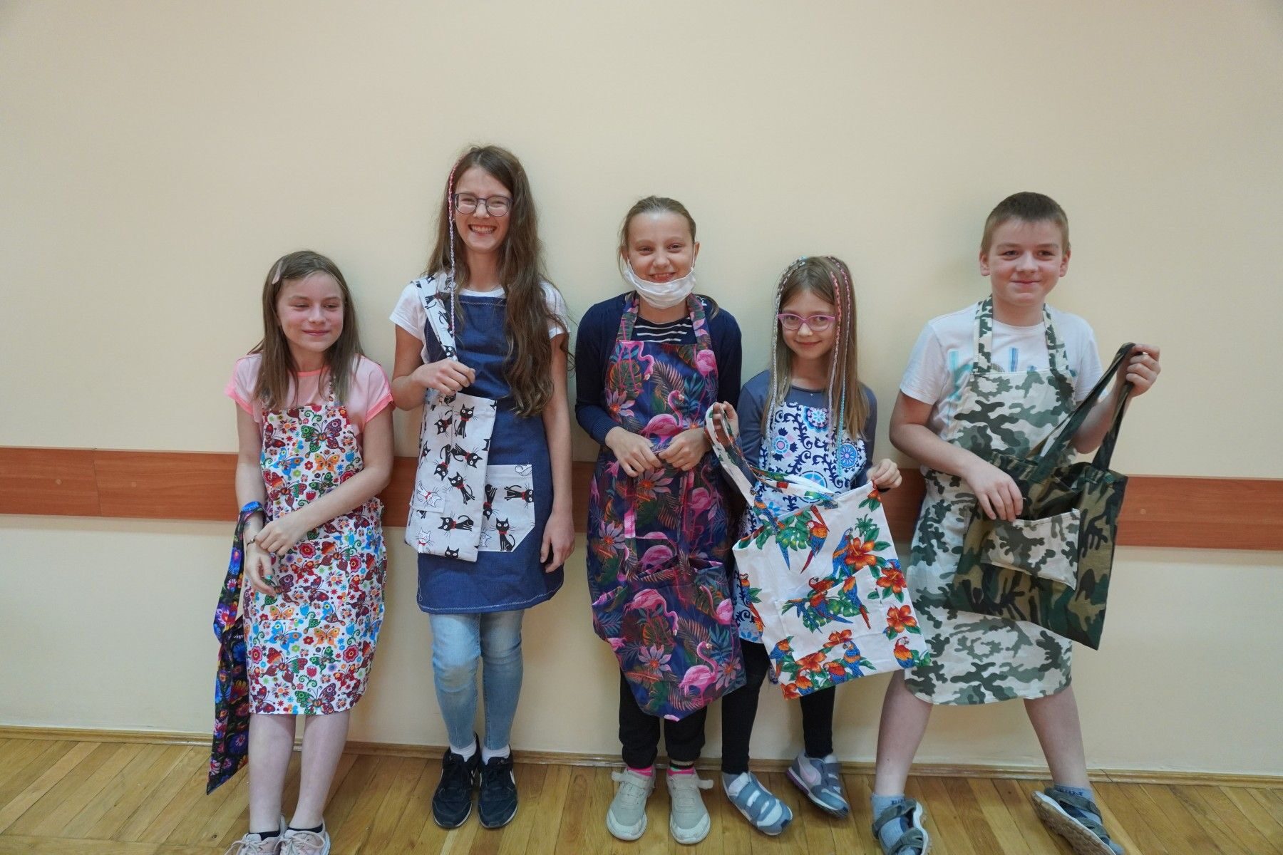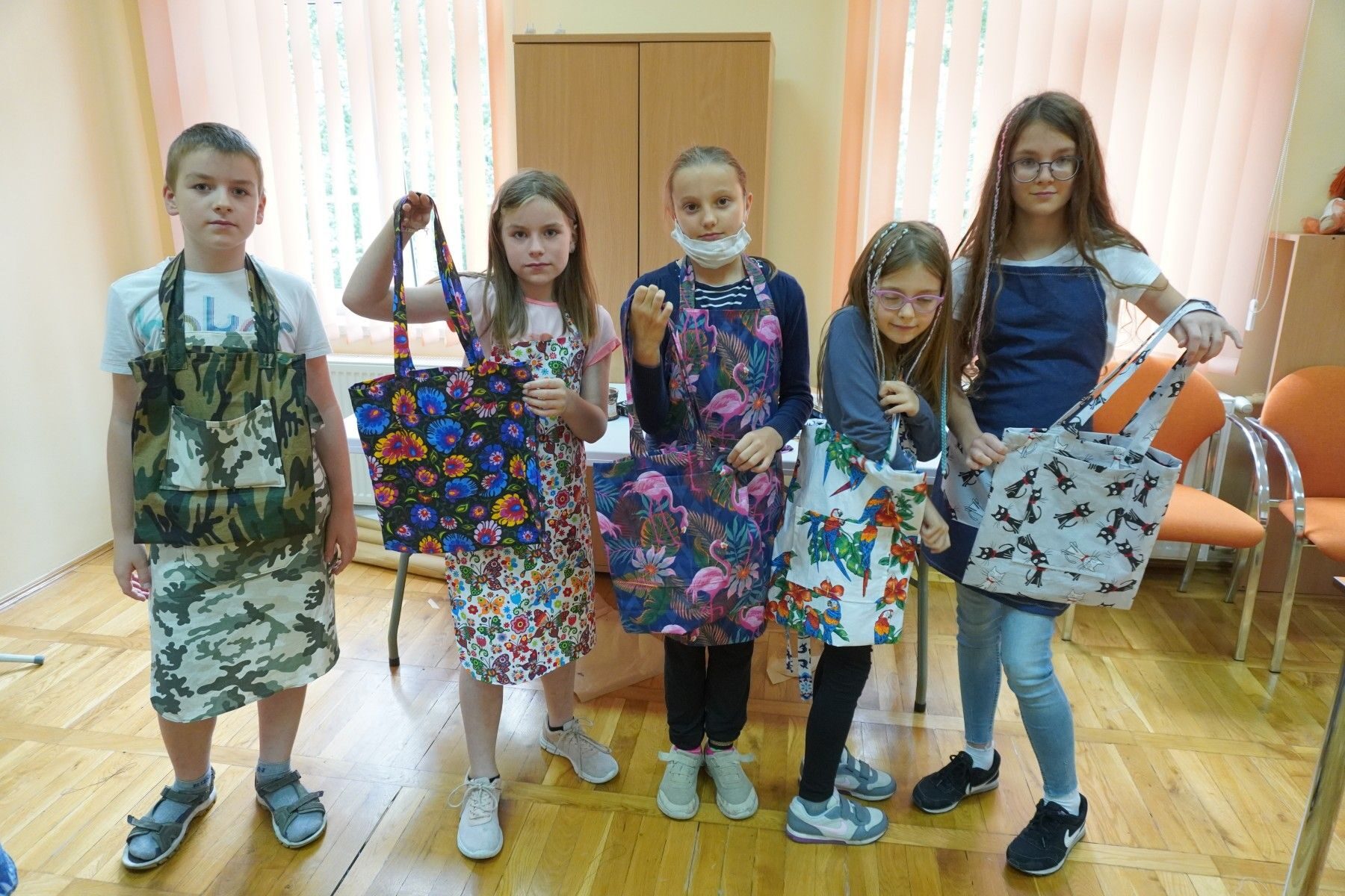 z powierzonych tkanin. Własnoręcznie uszyli fartuszki kuchenne oraz torby na zakupy.