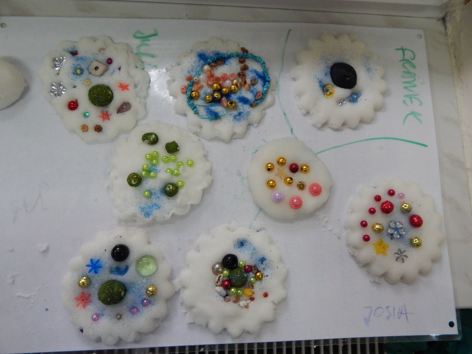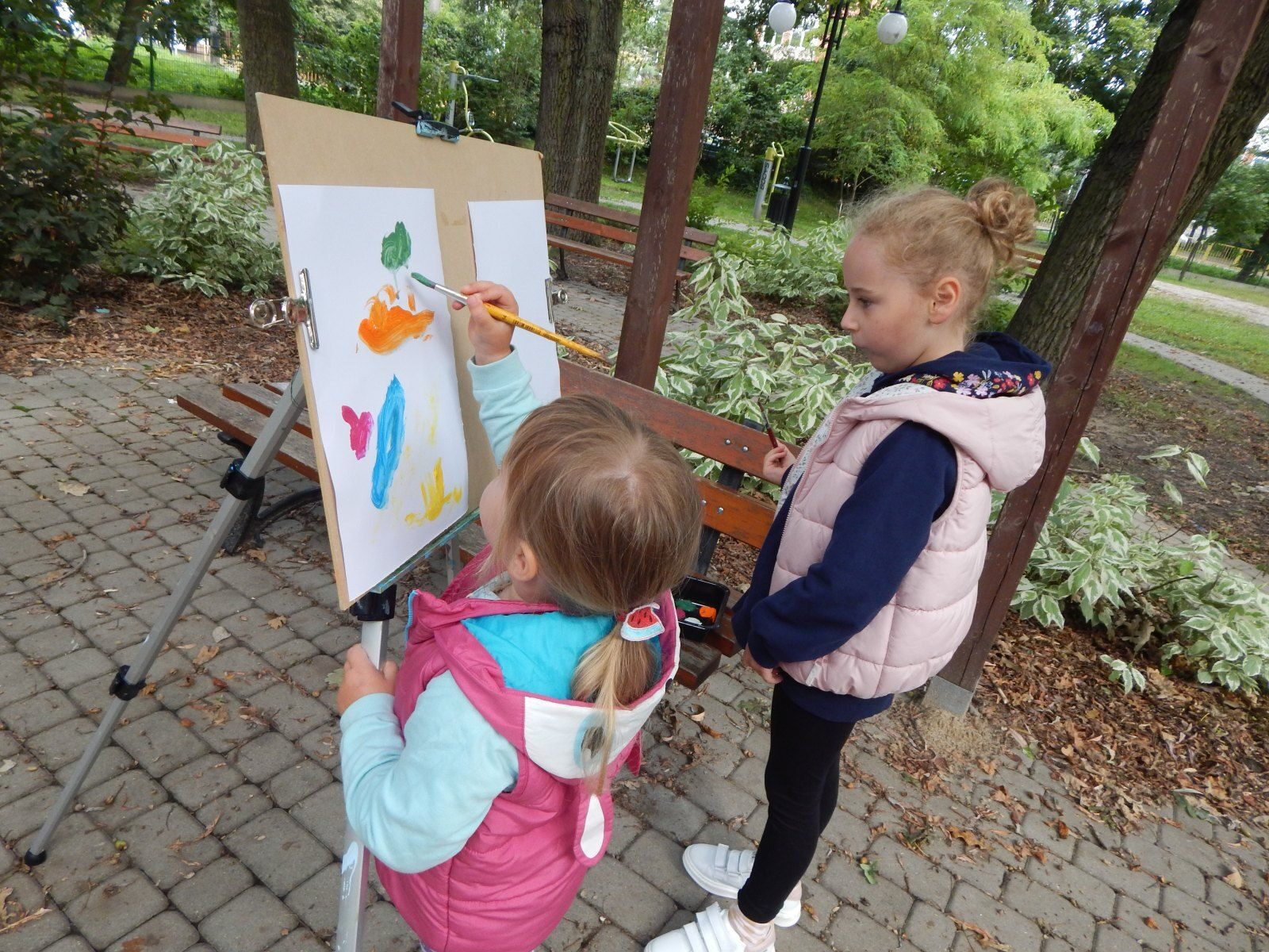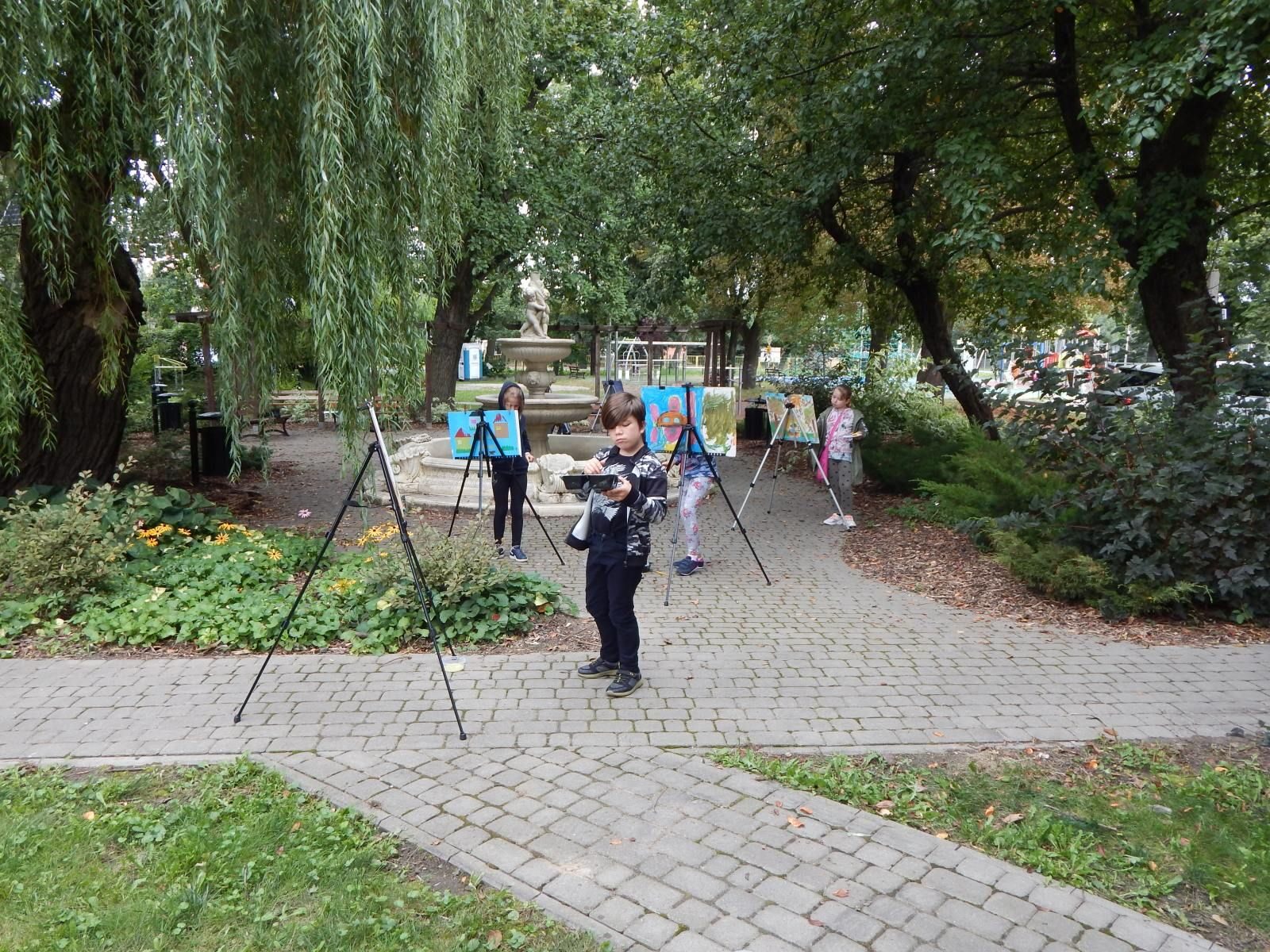 Podczas zajęć plastycznych dzieci tworzyły miseczki z masy solnej, robiły dekoracyjne medaliony z masy porcelanowej. Uczestnicy zajęć zapoznali się metodami czerpania papieru. Miłą zaś atrakcję stanowiło wyjście w plener malarski do parku przy Filii Domu Kultury. Mali artyści mogły uwiecznić w swoich pracach miejscową przyrodę i piękne otoczenie. Ostatniego dnia dzieci wykonały ramkę na swoje wakacyjne zdjęcie.