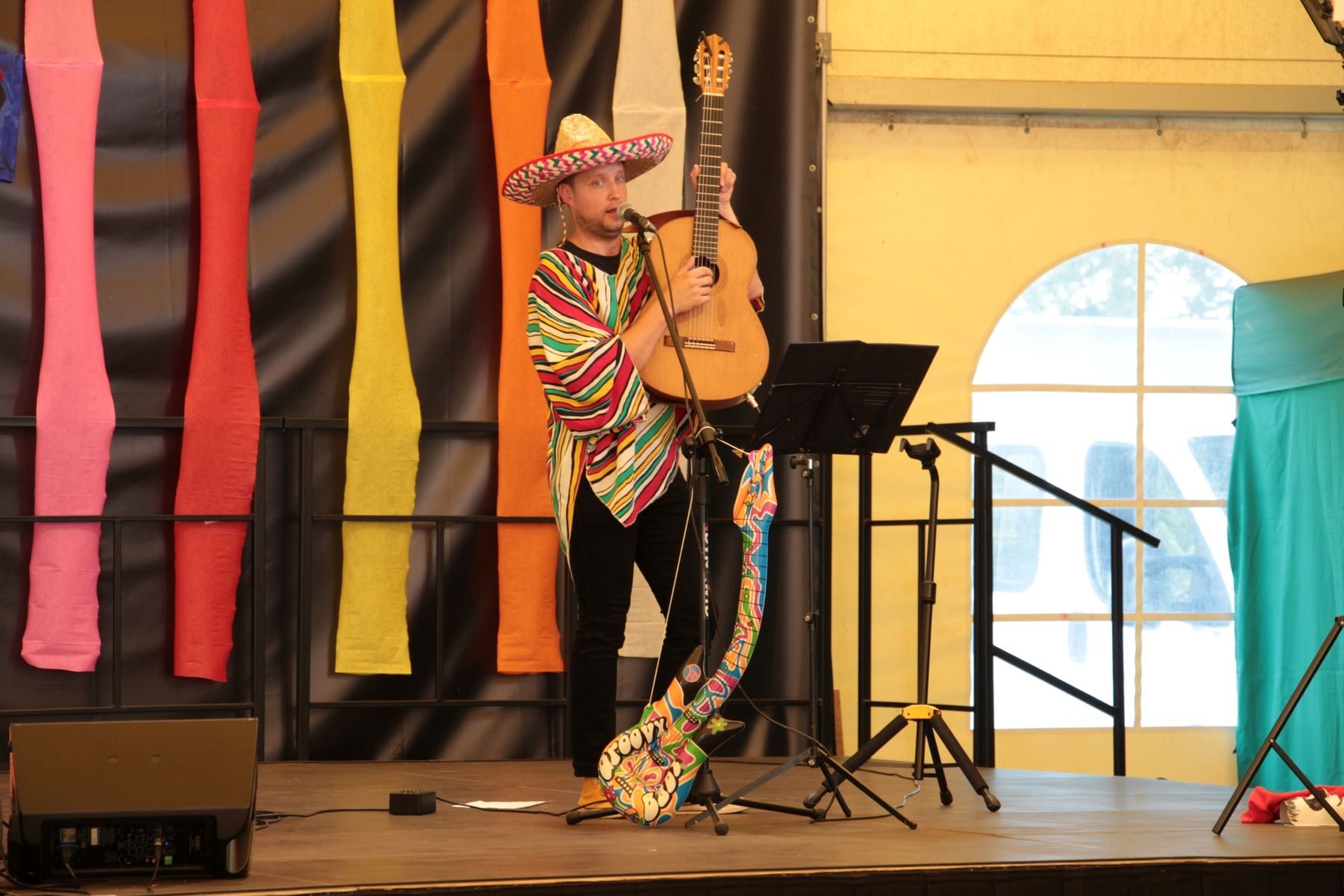 Rezonująca gitara, charakterystyczna barwa trąbki, melodyjny głos to nie wszystko, by poczuć klimat meksykańskiej muzyki Mariachi. Należy dodać jeszcze nutę bogatej tradycji i burzliwej historii, barwny wachlarz emocji, meksykańską duszę oraz sombrero utkane gorącym słońcem. Taki rodzaj ekspresyjnej, dynamicznej muzyki rozbrzmiewał podczas koncertu familijnego pt.” Un Poco Loco” na deskach Sceny Letniej zorganizowanej 21 lipca przez Dom Kultury „Uśmiech “. Muzyki Mariachi nie da się tylko słuchać, trzeba ją poczuć i wytańczyć, bawić się nią. A do tego również zostaliśmy zaproszeni przez artystów Agencji Artystycznej Pro Arte. Dzieci poznały meksykański taniec Jarabe Tapatio, uczestniczyły w zabawach, poznały proste zwroty i słownictwo hiszpańskie.