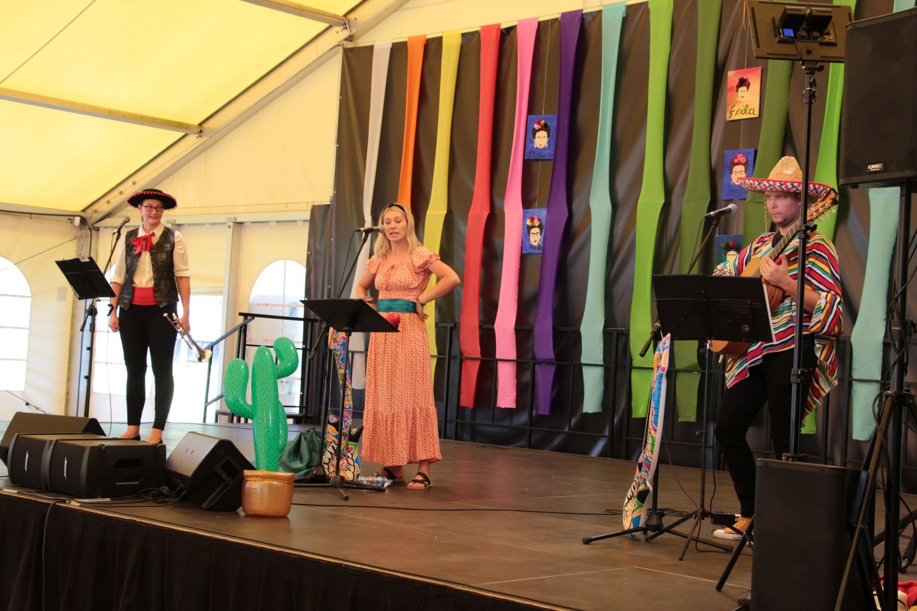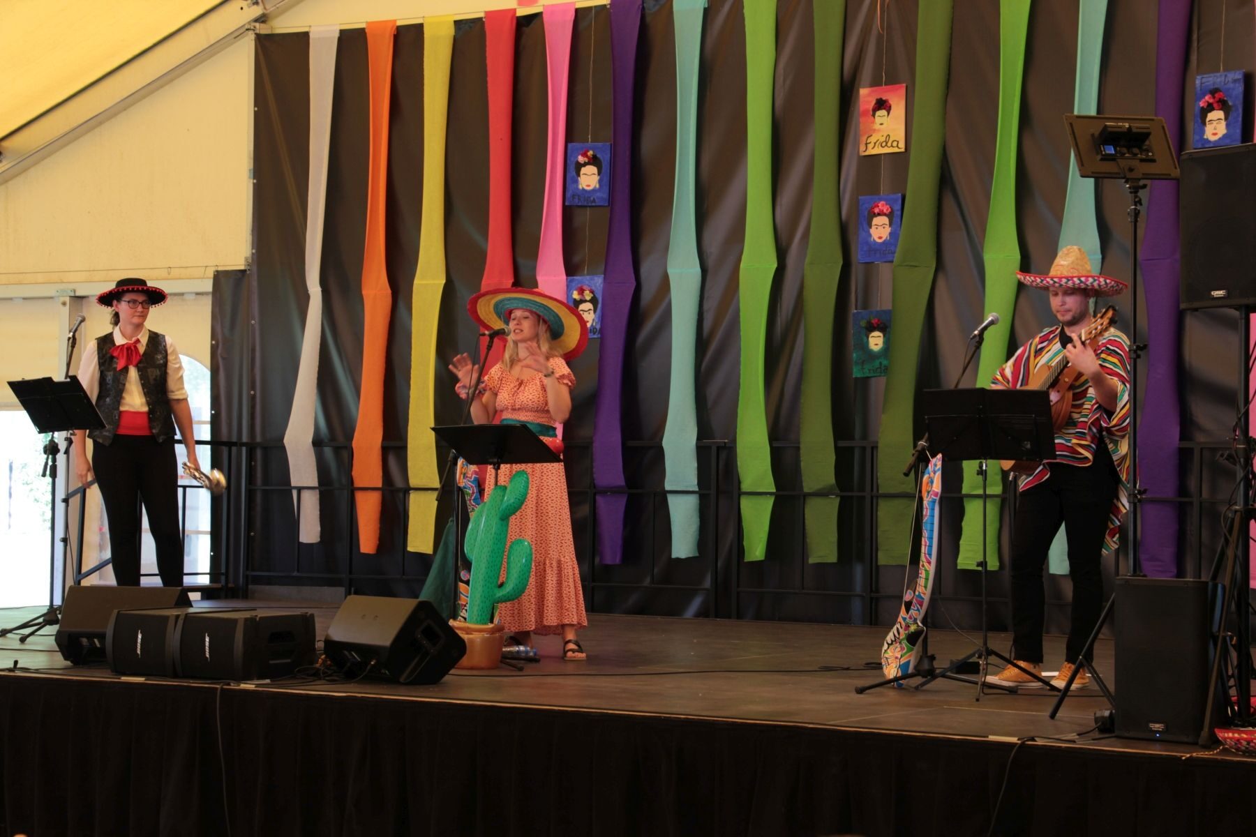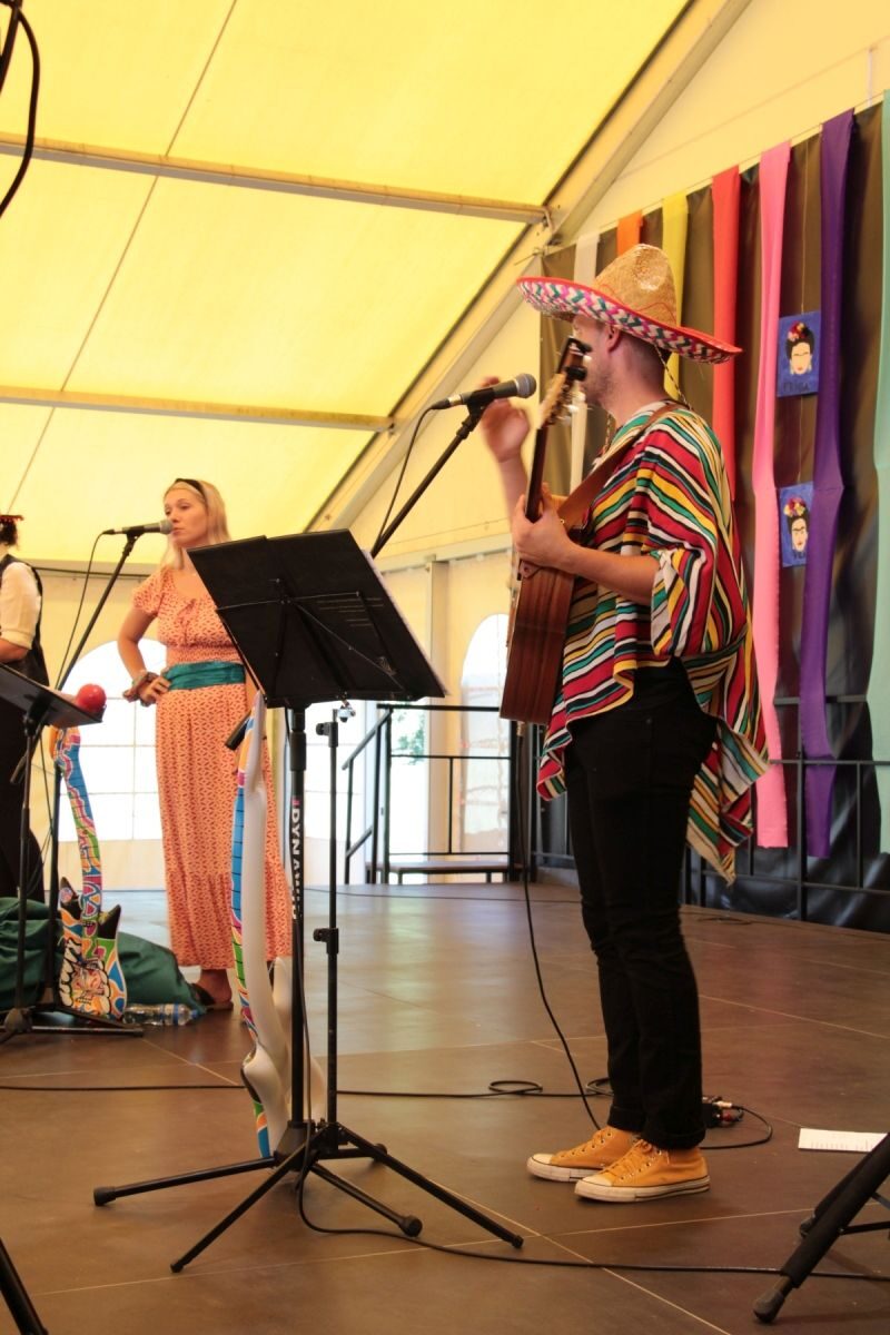 Wszystkim aktywnościom oprócz widowni przypatrywała się Frida Kahlo, której obrazy zdobiły kolorową Scenę Letnią w Ołtarzewie. Nie mogło jej zabraknąć, wszakże jest ikoną kultury meksykańskiej. Wszystkie „prace fridowe” zostały wykonane przez dzieci i młodzież podczas warsztatów plastycznych, które odbywają się stacjonarnie w Domu Kultury Uśmiech, na które już dziś serdecznie zapraszamy.
