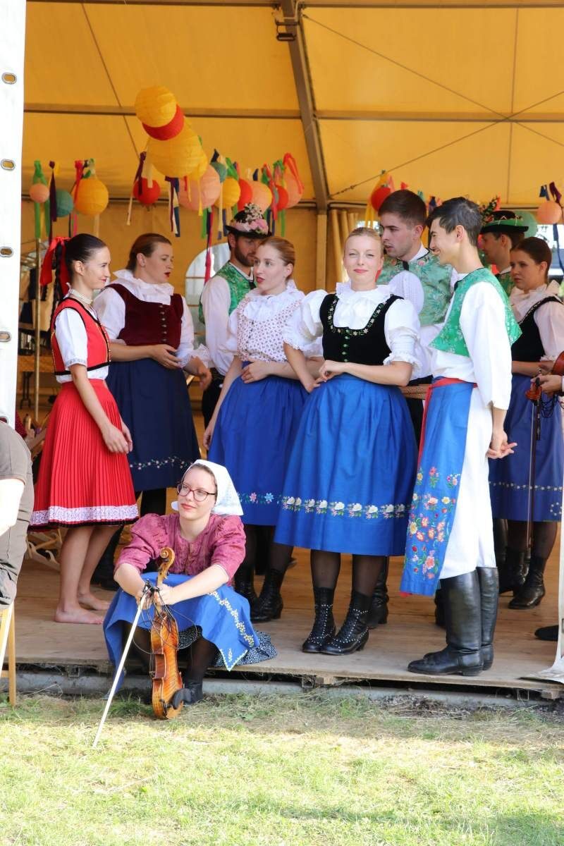 A właściwie mieli się zachwycać występami zespołów z całego świata – niestety najbardziej egzotyczna grupa Djembe Rhythm Group z Senegalu z powodów formalnych (niezależnych od organizatora) nie zdołała zjawić się na czas na naszym festiwalu… Wobec tego obsadę tegorocznej edycji Międzynarodowego Festiwalu Folkloru stanowiły zespoły z Czech – FS Demižon Strážnice, Słowenii – FS Klas Horjul oraz oczywiście Polski – naszym reprezentantem był niezastąpiony Zespół Ludowy „Ożarowiacy”.