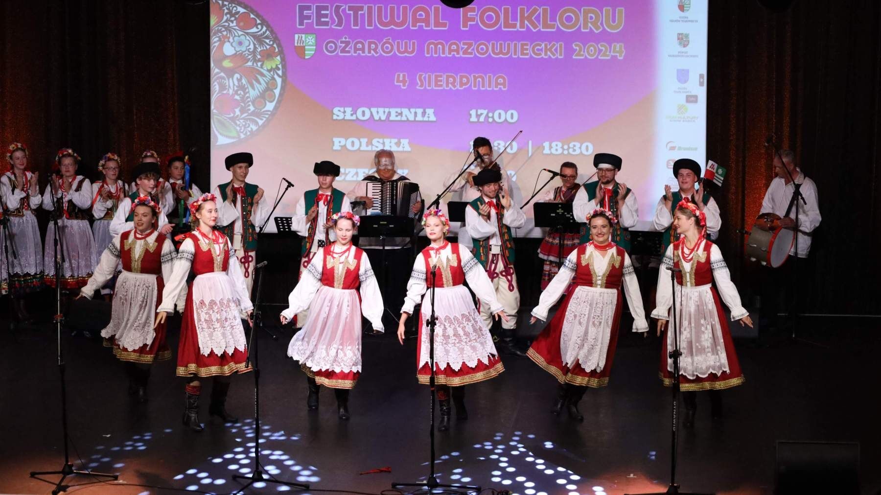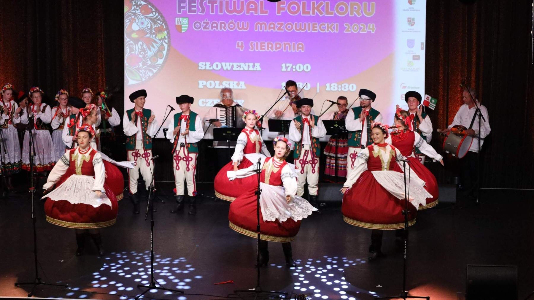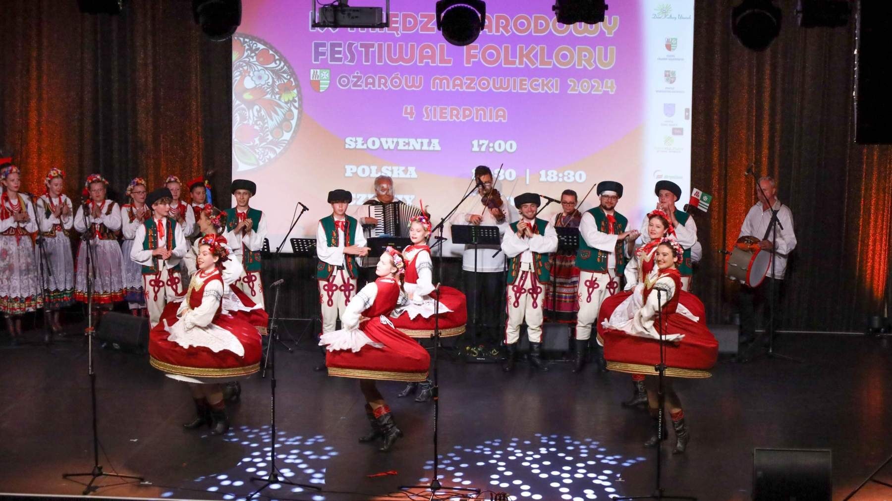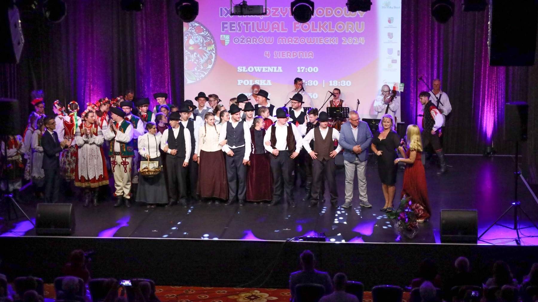 Po paradzie nadszedł czas na Koncert Finałowy, który odbył się w Hotelu Mazurkas Conference & Centre. Po tygodniu intensywnych pokazów, przyszedł czas na świętowanie. Sceną ostatni raz zawładnęły zespoły z Czech, Słowenii i Polski, skradając serca widowni swoimi hipnotyzującymi występami. Łezka w oku zakręciła się niejednej osobie na widowni, słuchając podziękowań gospodarza całego wydarzenia Burmistrza Pawła Kanclerza, a także Starosty Powiatu Warszawskiego Zachodniego Romualda Reszki, którzy dziękowali artystom przybyłym na festiwal, by wspólnie celebrować ten wyjątkowy czas, przepełniony radością, energią i kolorem.Tak zamknął się IX Międzynarodowy Festiwal Folkloru – Ożarów Mazowiecki 2024. Bardzo dziękujemy wszystkim osobom zaangażowanym w to przedsięwzięcie, które wymagało miesięcy przygotowań. Specjalne podziękowania kierujemy w stronę naszych partnerów: Powiat Warszawski Zachodni, Gmina Stare Babice i Dom Kultury w Starych Babicach oraz sponsorów: Warszawski Rolno-Spożywczy Rynek Hurtowy S.A. „Bronisze”, Czesio Energy Drink i Bittner Packaging – Państwa wsparcie było dla nas nieocenione. Za objęcie festiwalu Honorowym Patronatem dziękujemy także Burmistrzowi Ożarowa Mazowieckiego Panu Pawłowi Kanclerzowi, a także Wójtowi Gminy Stare Babice Panu Sławomirowi Sumce.