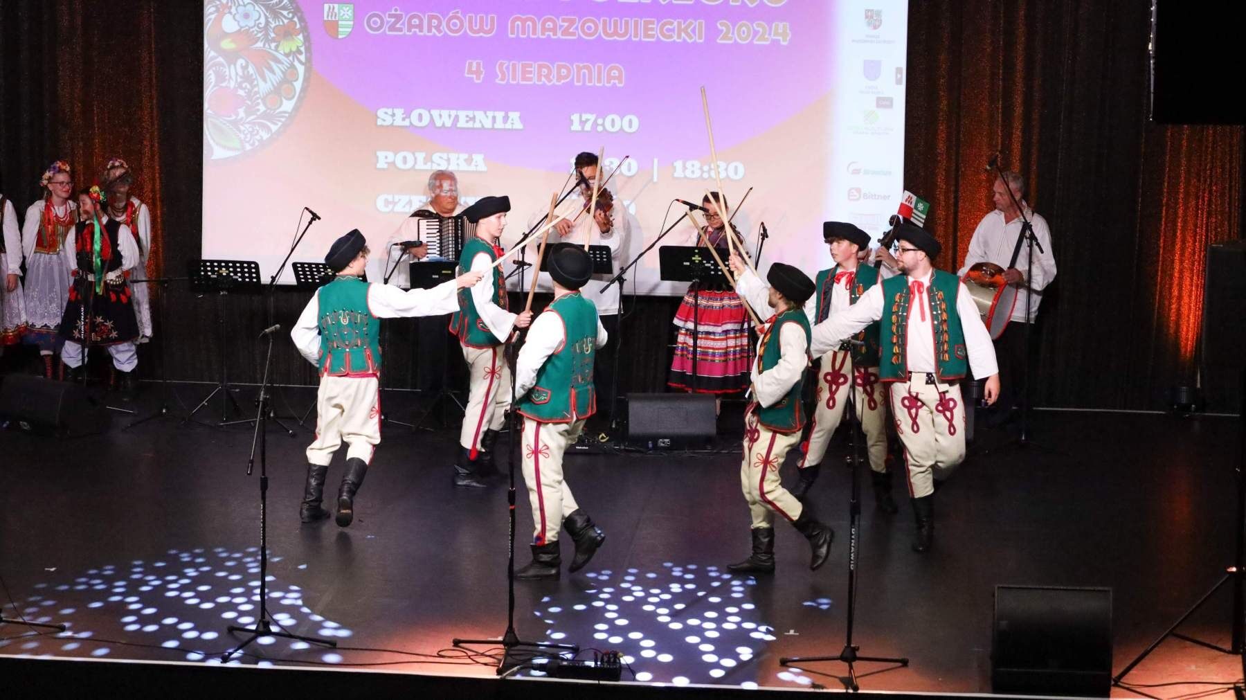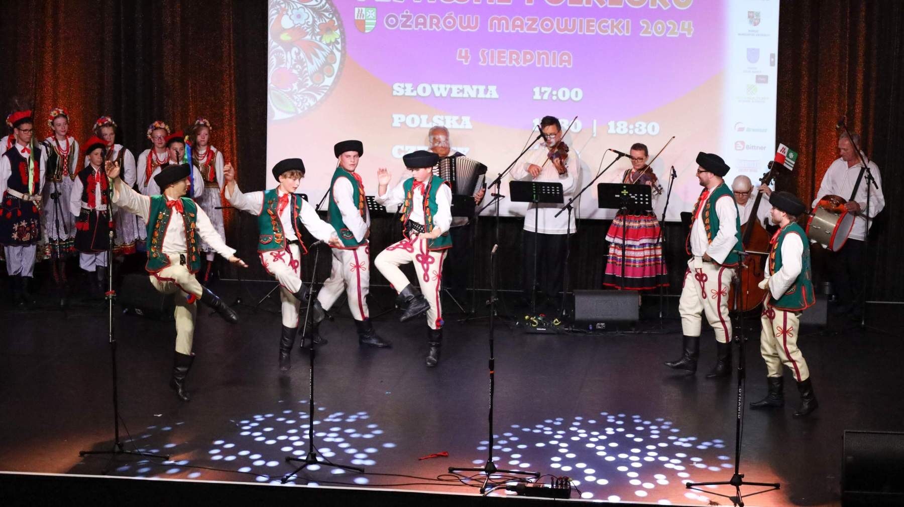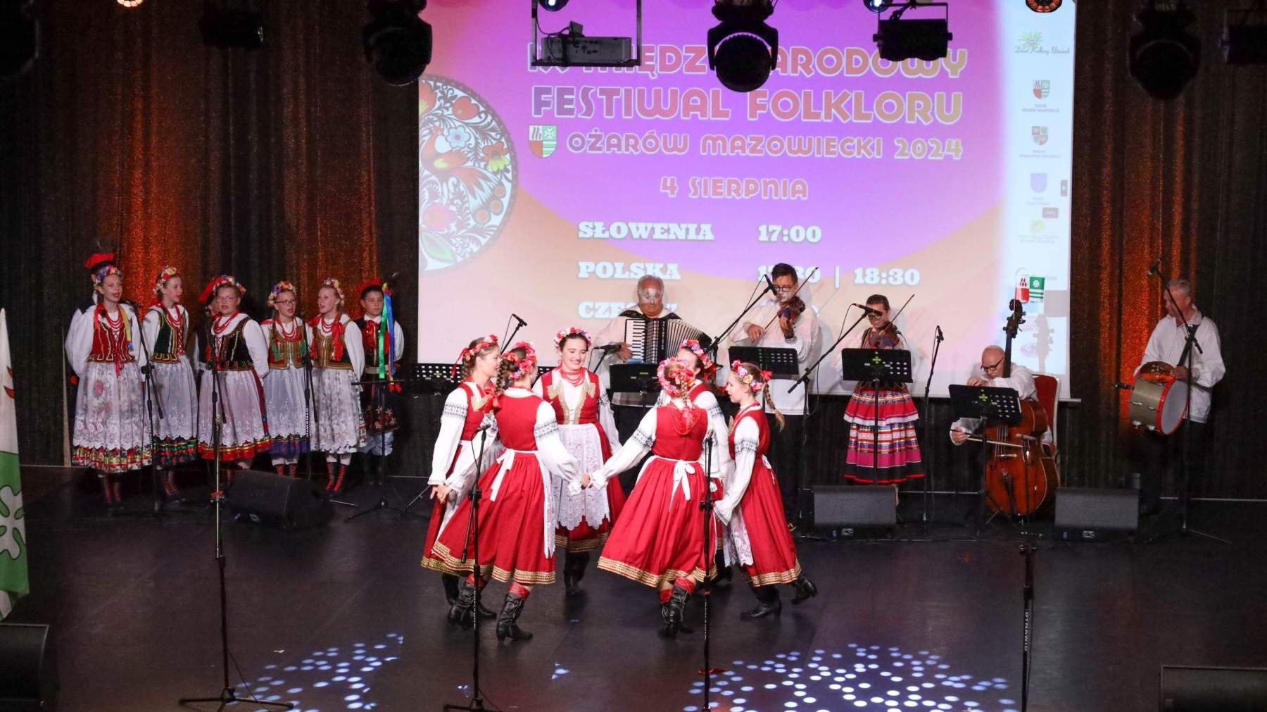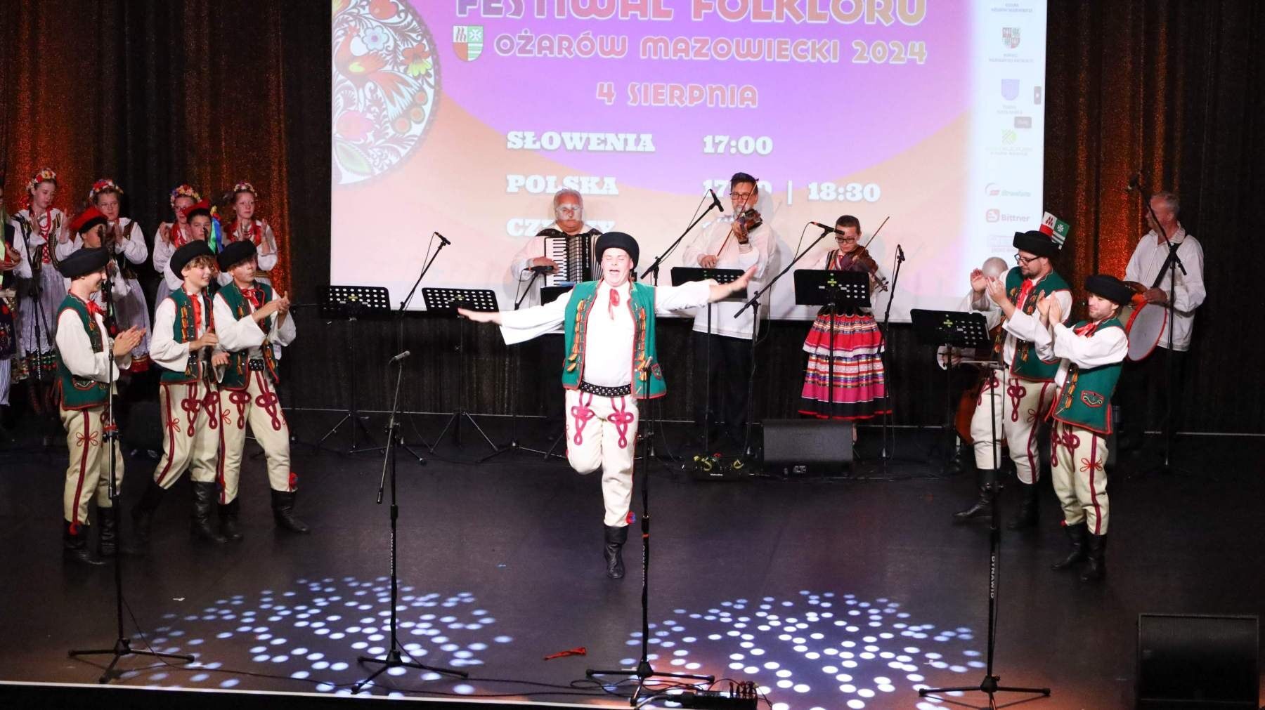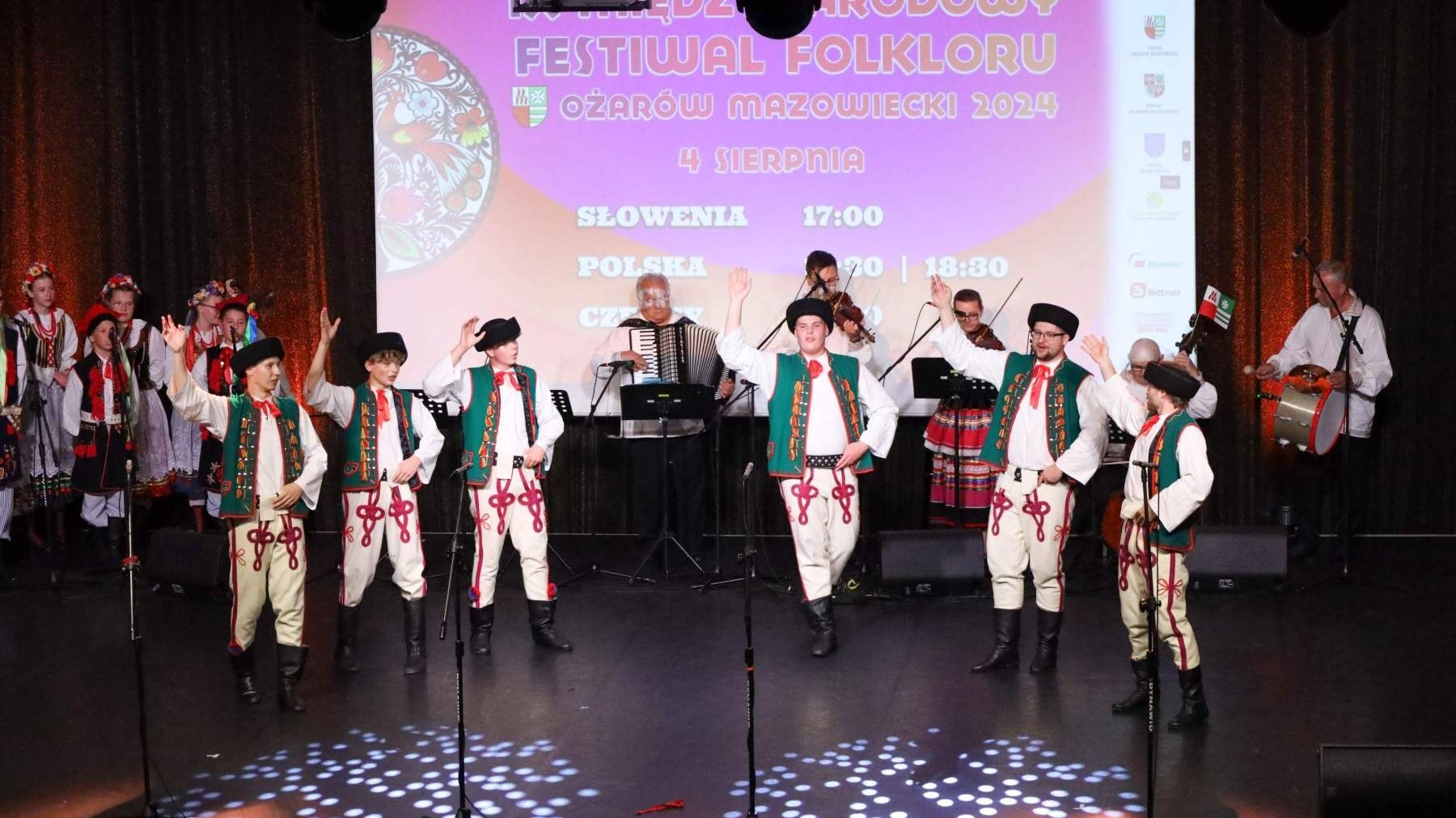 Po paradzie nadszedł czas na Koncert Finałowy, który odbył się w Hotelu Mazurkas Conference & Centre. Po tygodniu intensywnych pokazów, przyszedł czas na świętowanie. Sceną ostatni raz zawładnęły zespoły z Czech, Słowenii i Polski, skradając serca widowni swoimi hipnotyzującymi występami. Łezka w oku zakręciła się niejednej osobie na widowni, słuchając podziękowań gospodarza całego wydarzenia Burmistrza Pawła Kanclerza, a także Starosty Powiatu Warszawskiego Zachodniego Romualda Reszki, którzy dziękowali artystom przybyłym na festiwal, by wspólnie celebrować ten wyjątkowy czas, przepełniony radością, energią i kolorem.Tak zamknął się IX Międzynarodowy Festiwal Folkloru – Ożarów Mazowiecki 2024. Bardzo dziękujemy wszystkim osobom zaangażowanym w to przedsięwzięcie, które wymagało miesięcy przygotowań. Specjalne podziękowania kierujemy w stronę naszych partnerów: Powiat Warszawski Zachodni, Gmina Stare Babice i Dom Kultury w Starych Babicach oraz sponsorów: Warszawski Rolno-Spożywczy Rynek Hurtowy S.A. „Bronisze”, Czesio Energy Drink i Bittner Packaging – Państwa wsparcie było dla nas nieocenione. Za objęcie festiwalu Honorowym Patronatem dziękujemy także Burmistrzowi Ożarowa Mazowieckiego Panu Pawłowi Kanclerzowi, a także Wójtowi Gminy Stare Babice Panu Sławomirowi Sumce.