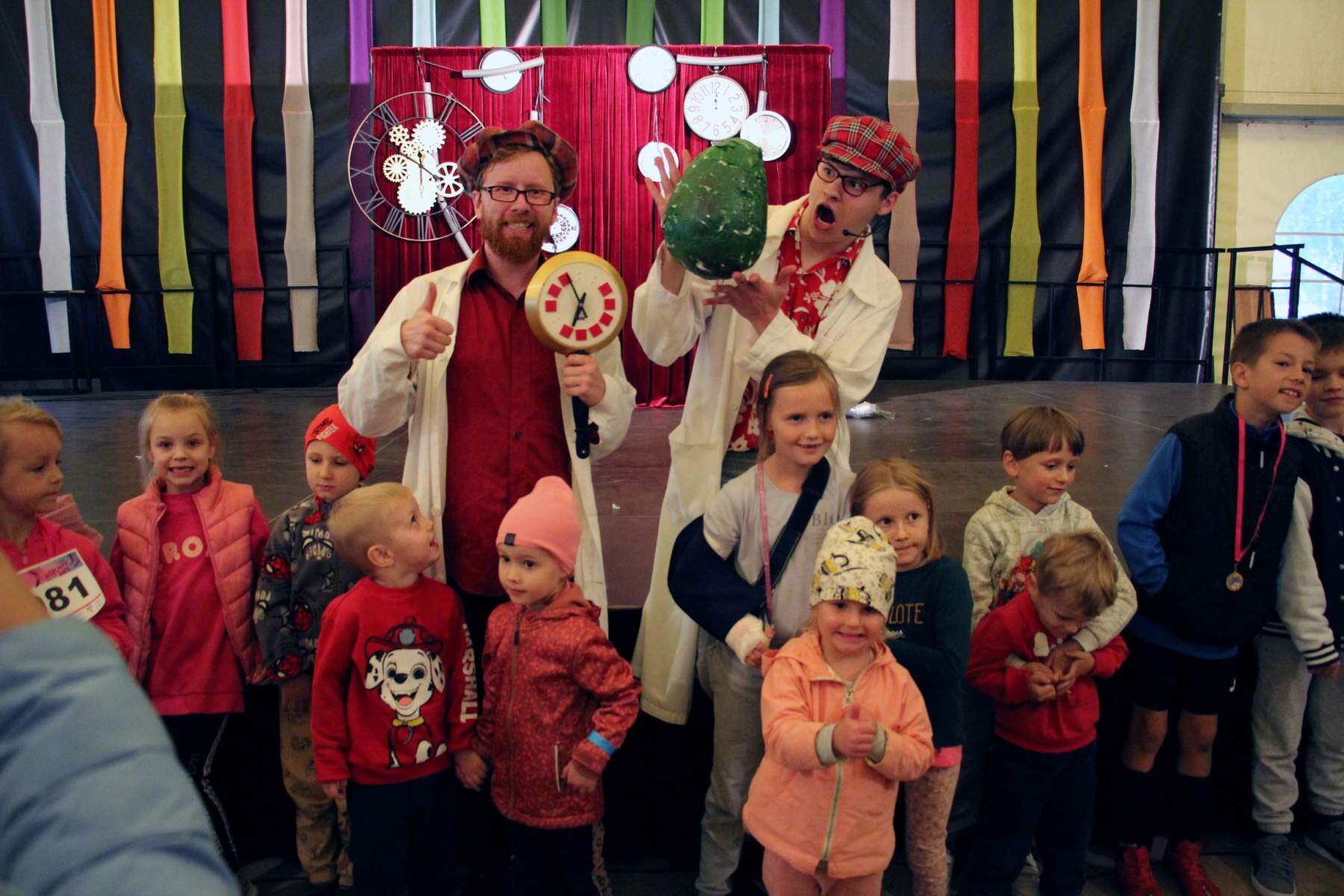 Sobota rozpoczęła się bezpłatnymi badaniami piersi, które były dedykowane kobietom 45+ w ramach II Różowego Biegu organizowanego przez Stowarzyszenie Sprężyny Biznesu. Sam bieg wystartował o godzinie 15.00 – wydarzenie miało za zadanie promocję profilaktyki badań raka piersi wśród kobiet. O tej samej godzinie ruszyły Wymianki Książkowe w Hali Namiotowej, położonej na terenie boiska UKS Ołtarzew. Już o godzinie 16.00 ta sama hala zamieniła się w sale teatralną, a Krakowski Teatr Bajki zabrał dzieci w wir tajemniczych wydarzeń, odkrywając zapomniane karty historii. Spektakl pt. ”Maszyna czasu” to zabawna opowieść o dwójce naukowców, którzy wynaleźli wehikuł czasu – dzięki niemu, wraz z dziećmi na widowni – bohaterowie poznali postaci z różnych epok. Na jednej scenie spotkali się prehistoryczny dinozaur, lękliwy rycerz, super inteligentny robot i nasz najstarszy przodek, czyli pierwszy człowiek na Ziemi. Przedstawienie przyciągnęło rzeszę widzów – młodych i starszych – i zostało ochoczo przyjęte przez wszystkich uczestników spektaklu. Tego dnia potrawy świata smakować można było do godziny 21.00