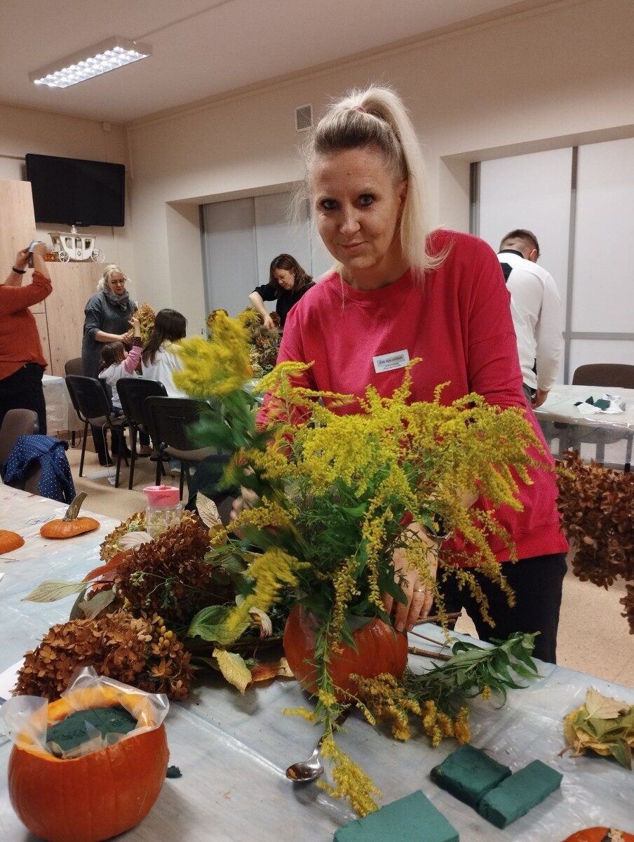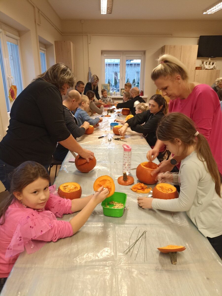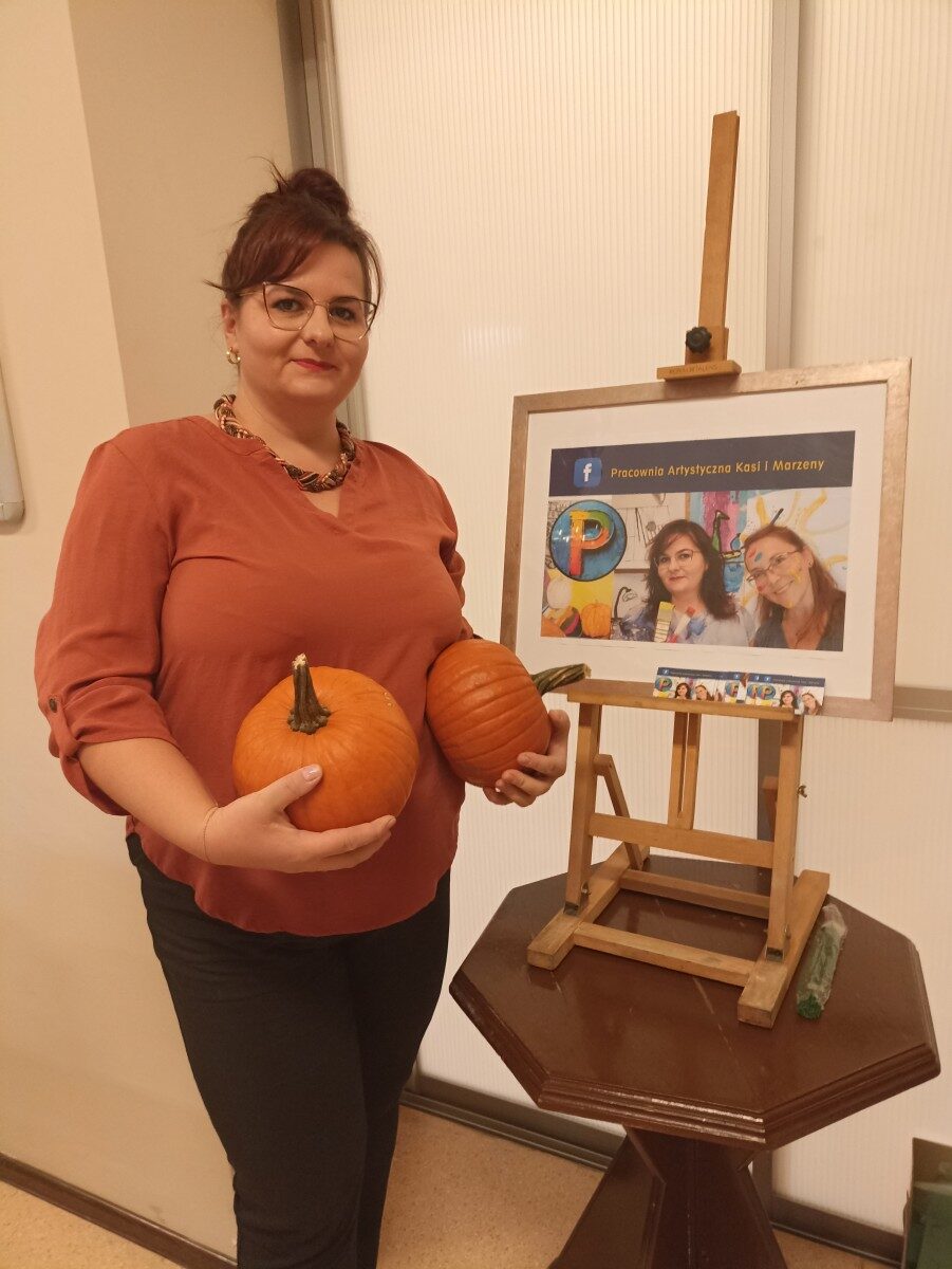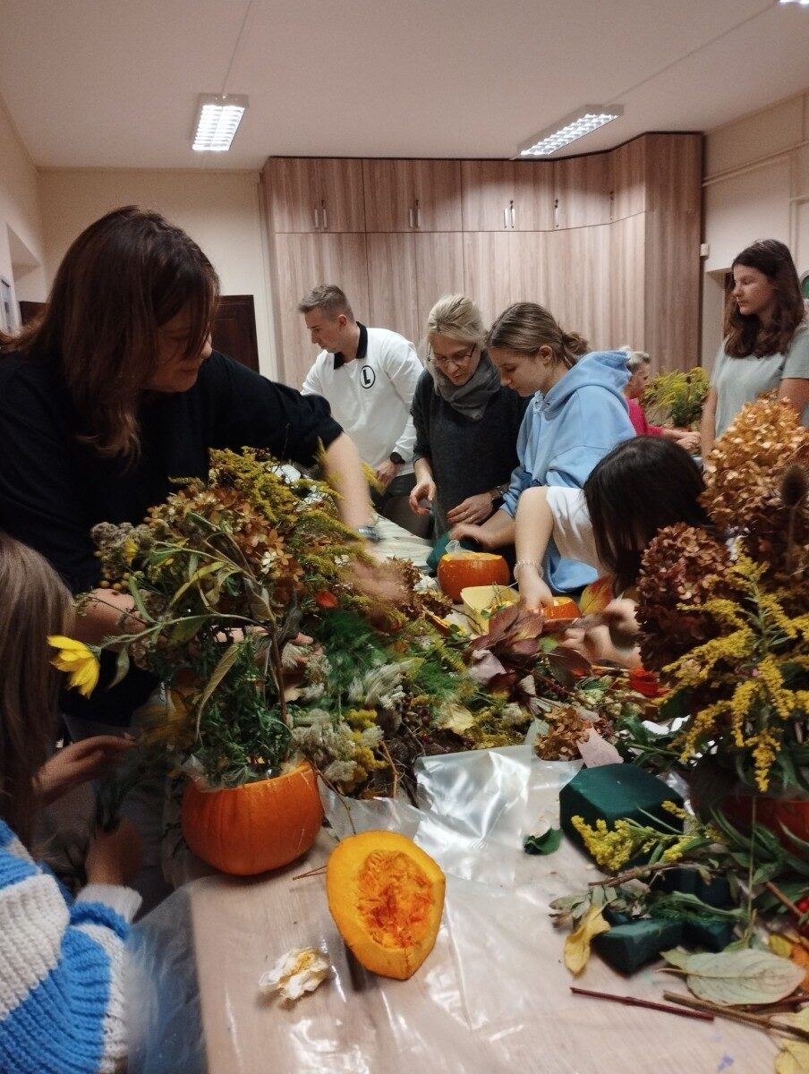Dynia – królowa jesiennego stołu. Jesień piękna, kolorowa wprost zachwyca. Przecudne dekoracje na stół ” dyniowe wazony” wykonali uczestnicy niedzielnych warsztatów, pod czujnym okiem instruktor Katarzyny Cyniak- Górneckiej  w Filii Bronisze.