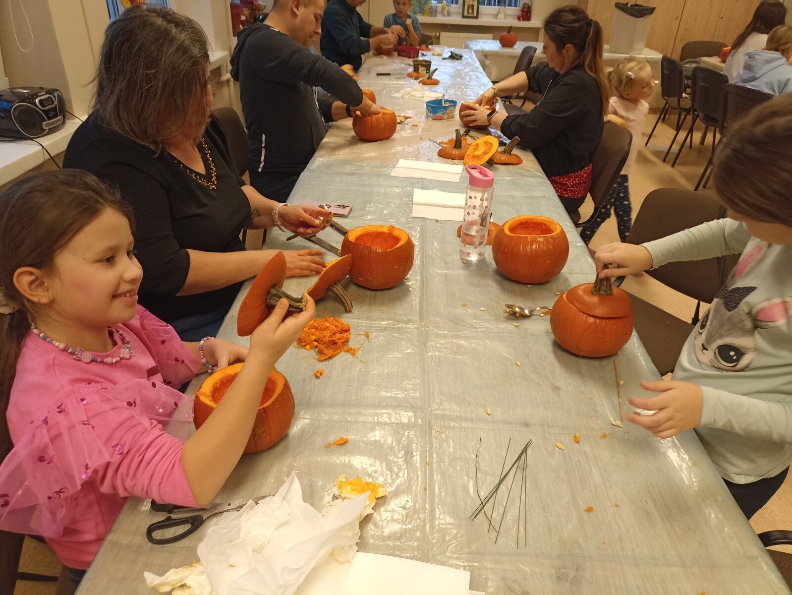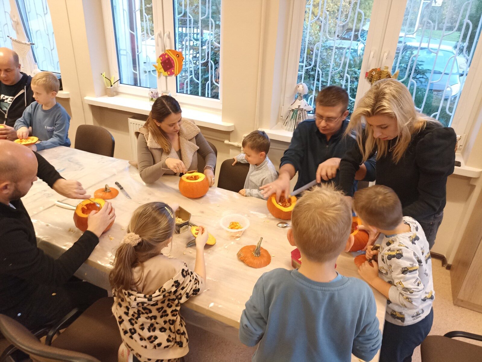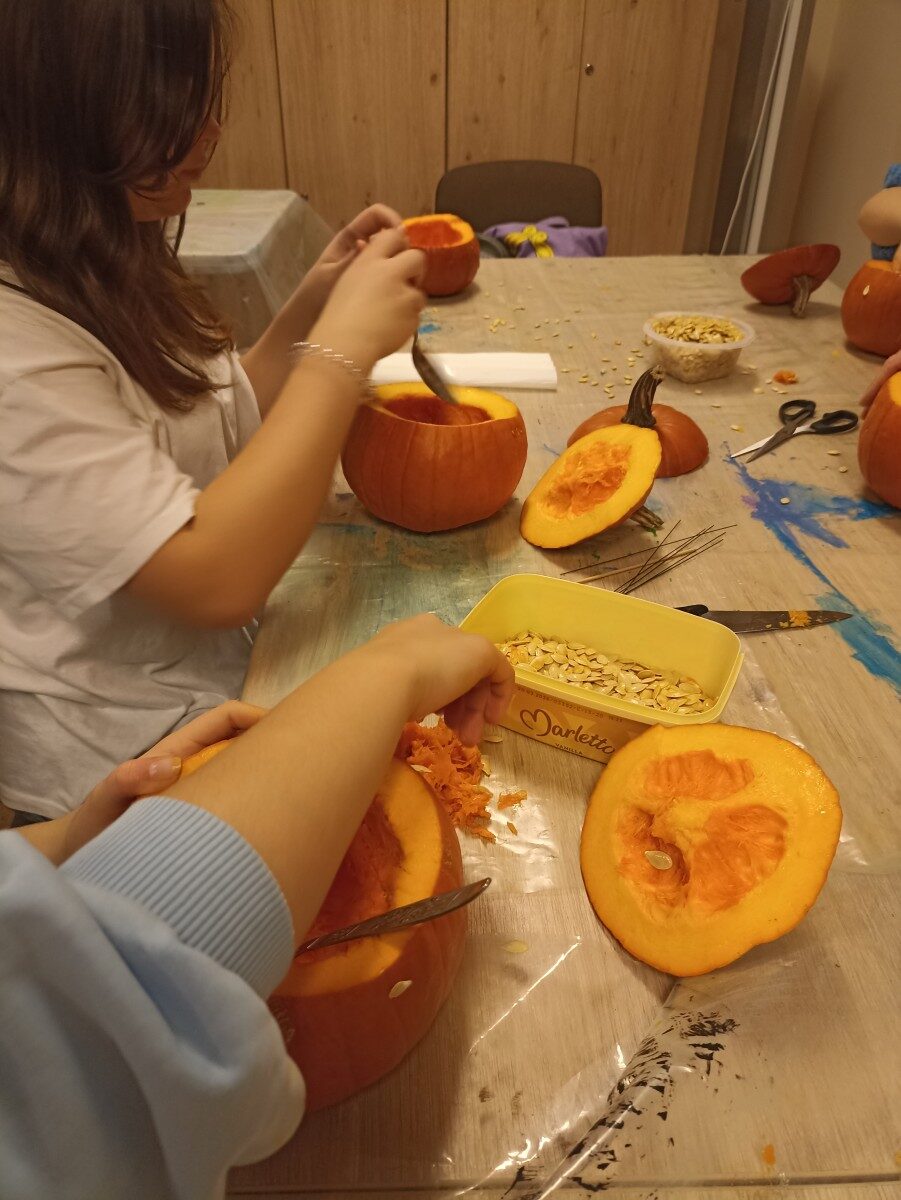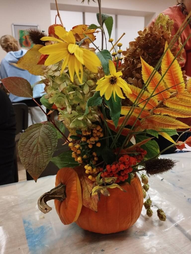 Dynia – królowa jesiennego stołu. Jesień piękna, kolorowa wprost zachwyca. Przecudne dekoracje na stół ” dyniowe wazony” wykonali uczestnicy niedzielnych warsztatów, pod czujnym okiem instruktor Katarzyny Cyniak- Górneckiej  w Filii Bronisze.
