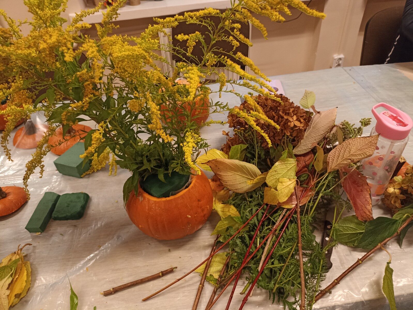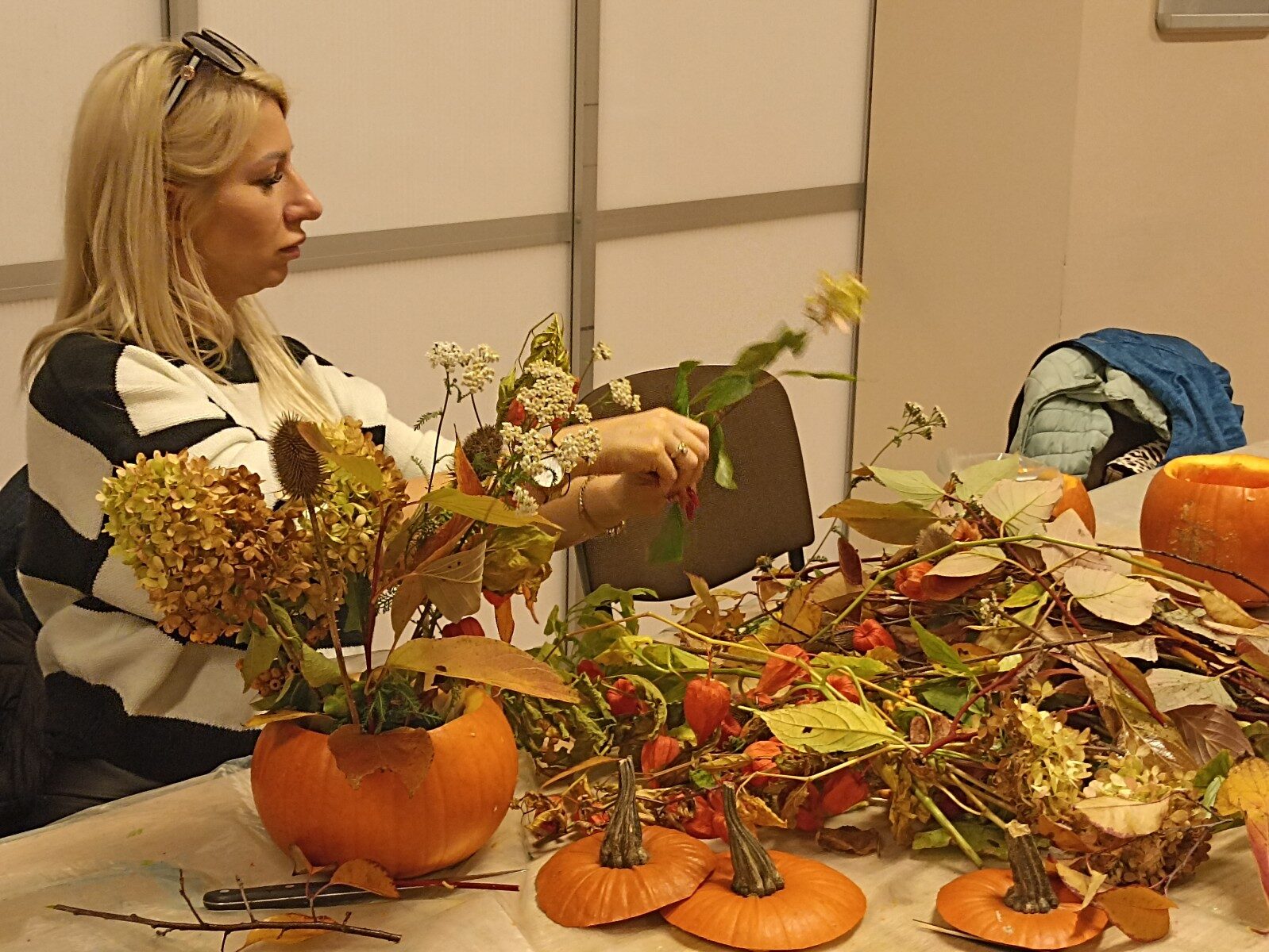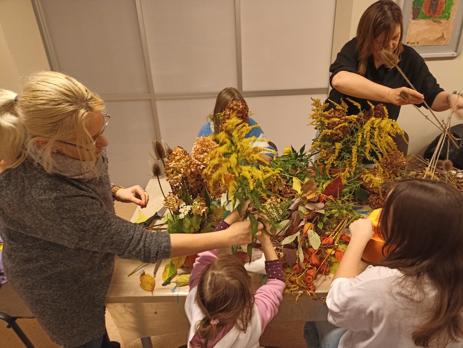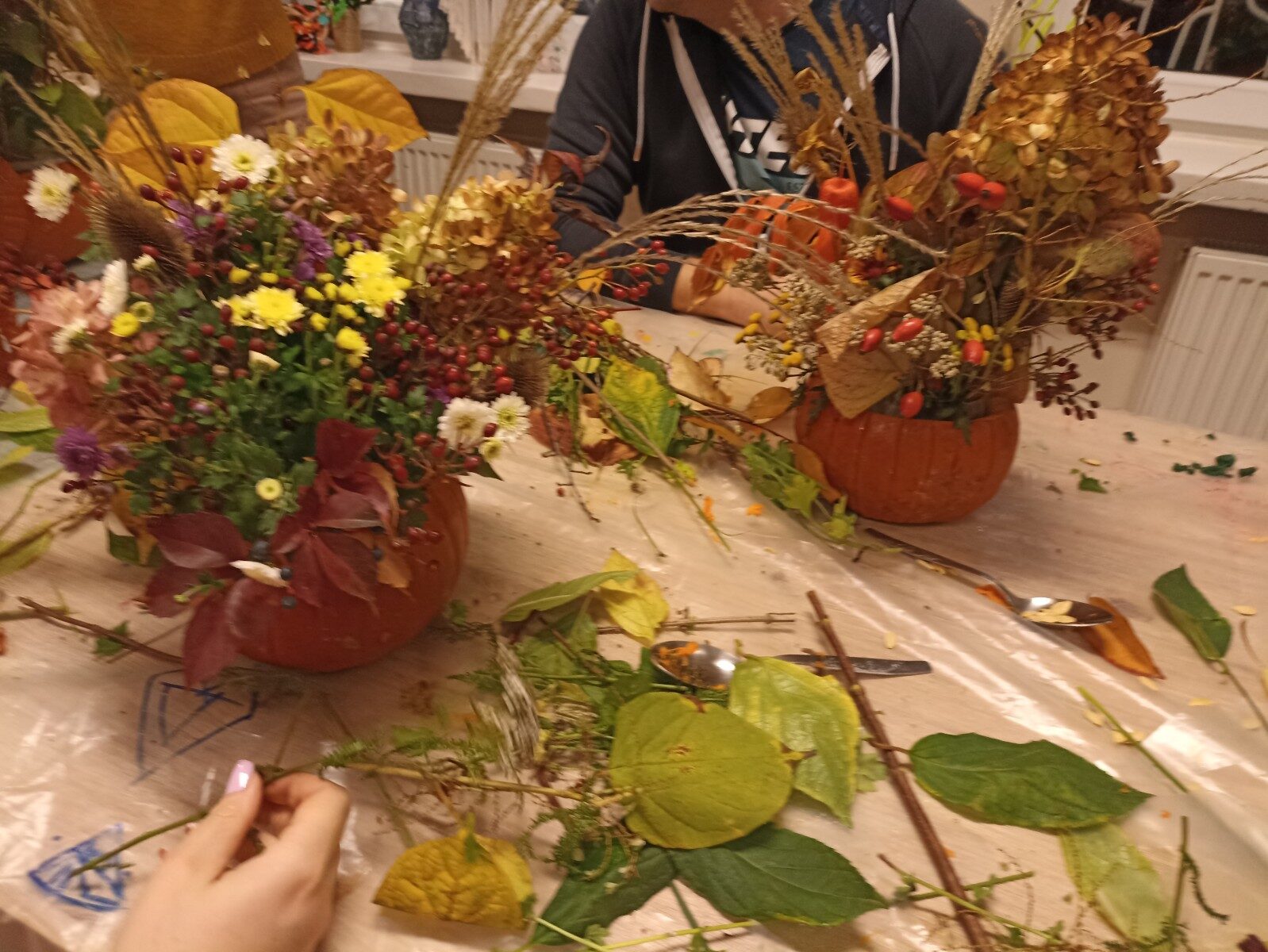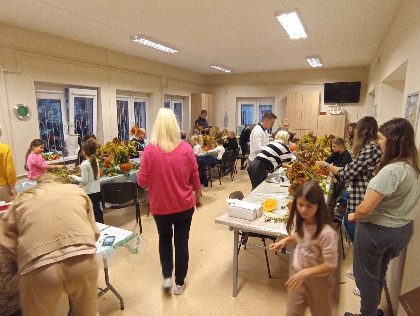 Dynia – królowa jesiennego stołu. Jesień piękna, kolorowa wprost zachwyca. Przecudne dekoracje na stół ” dyniowe wazony” wykonali uczestnicy niedzielnych warsztatów, pod czujnym okiem instruktor Katarzyny Cyniak- Górneckiej  w Filii Bronisze.