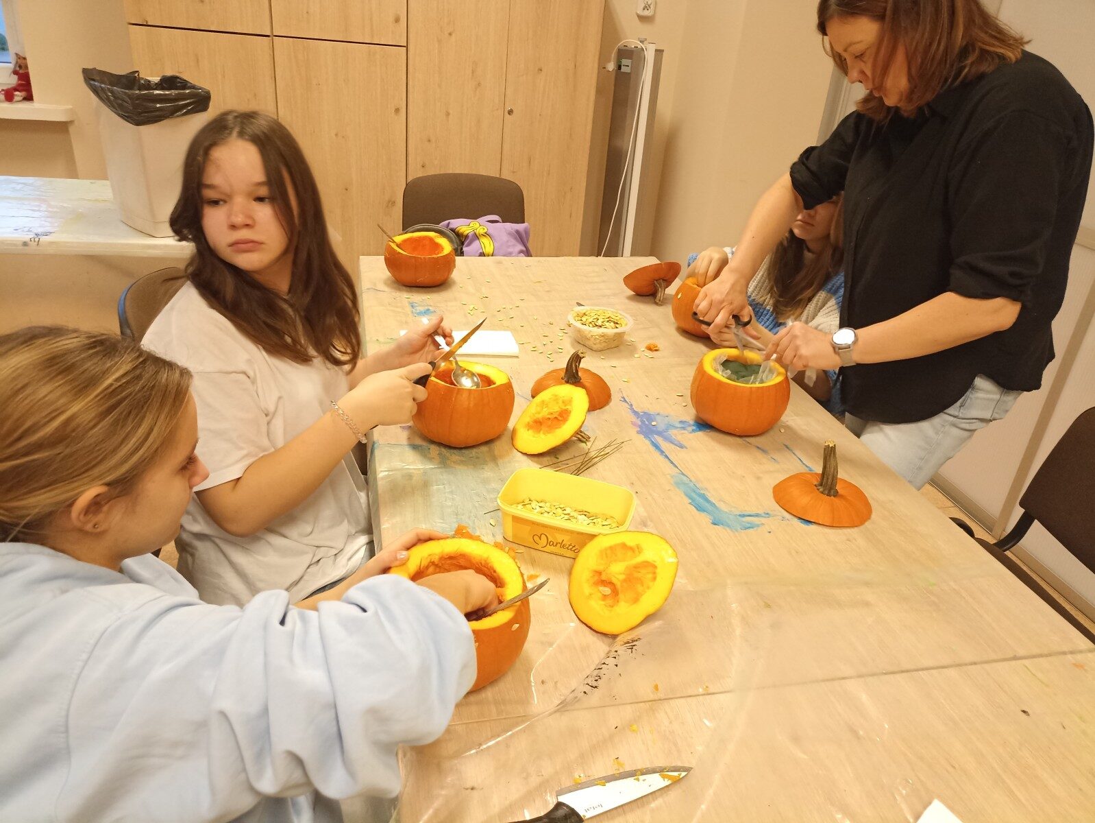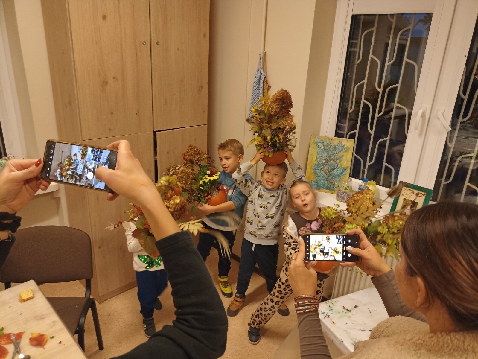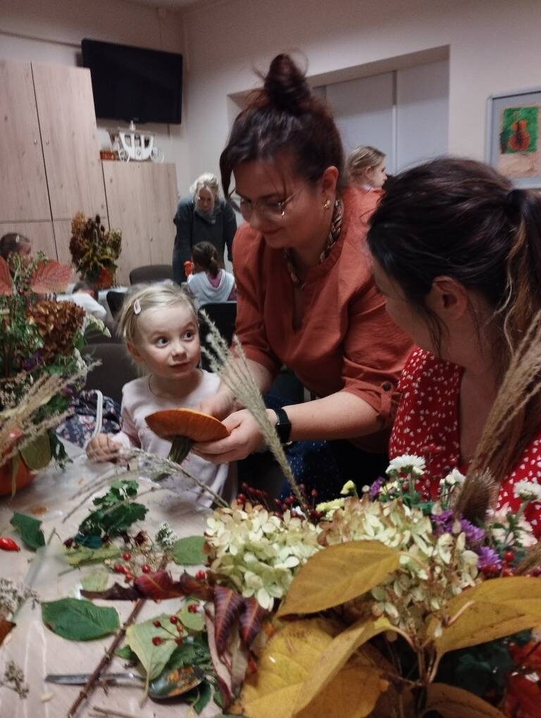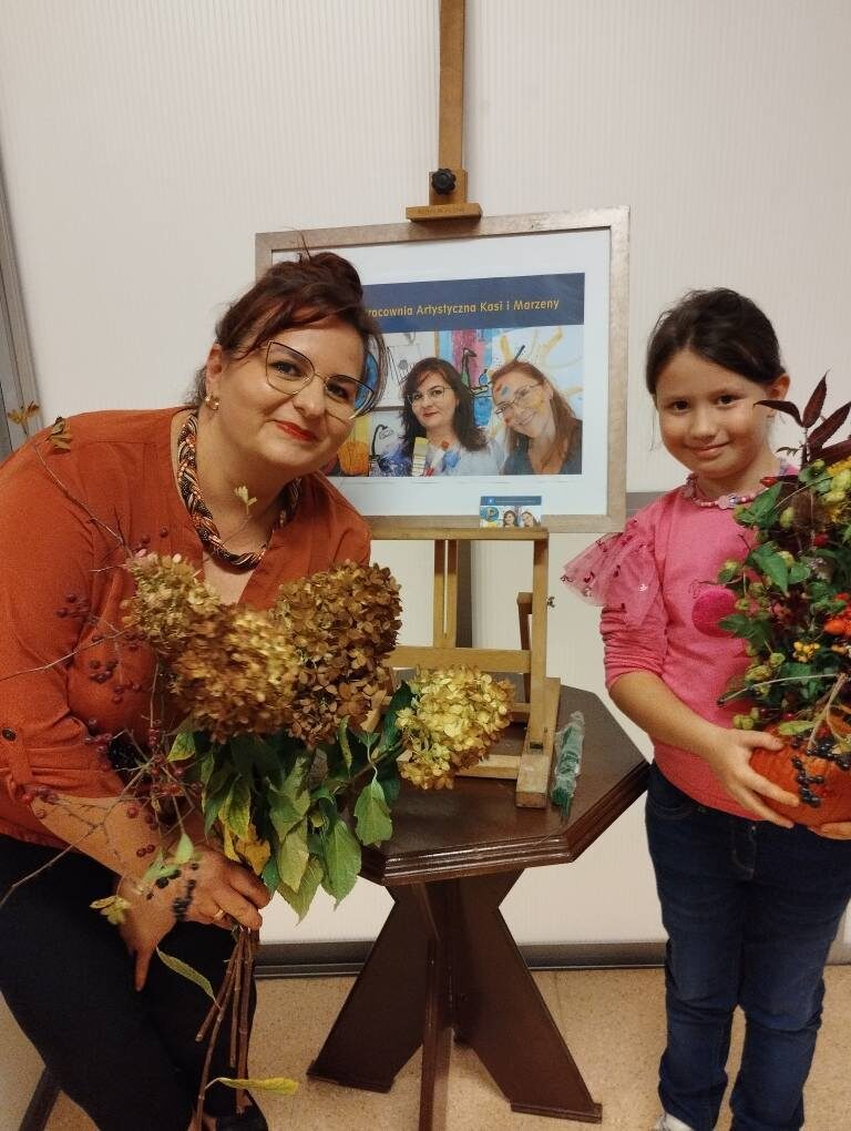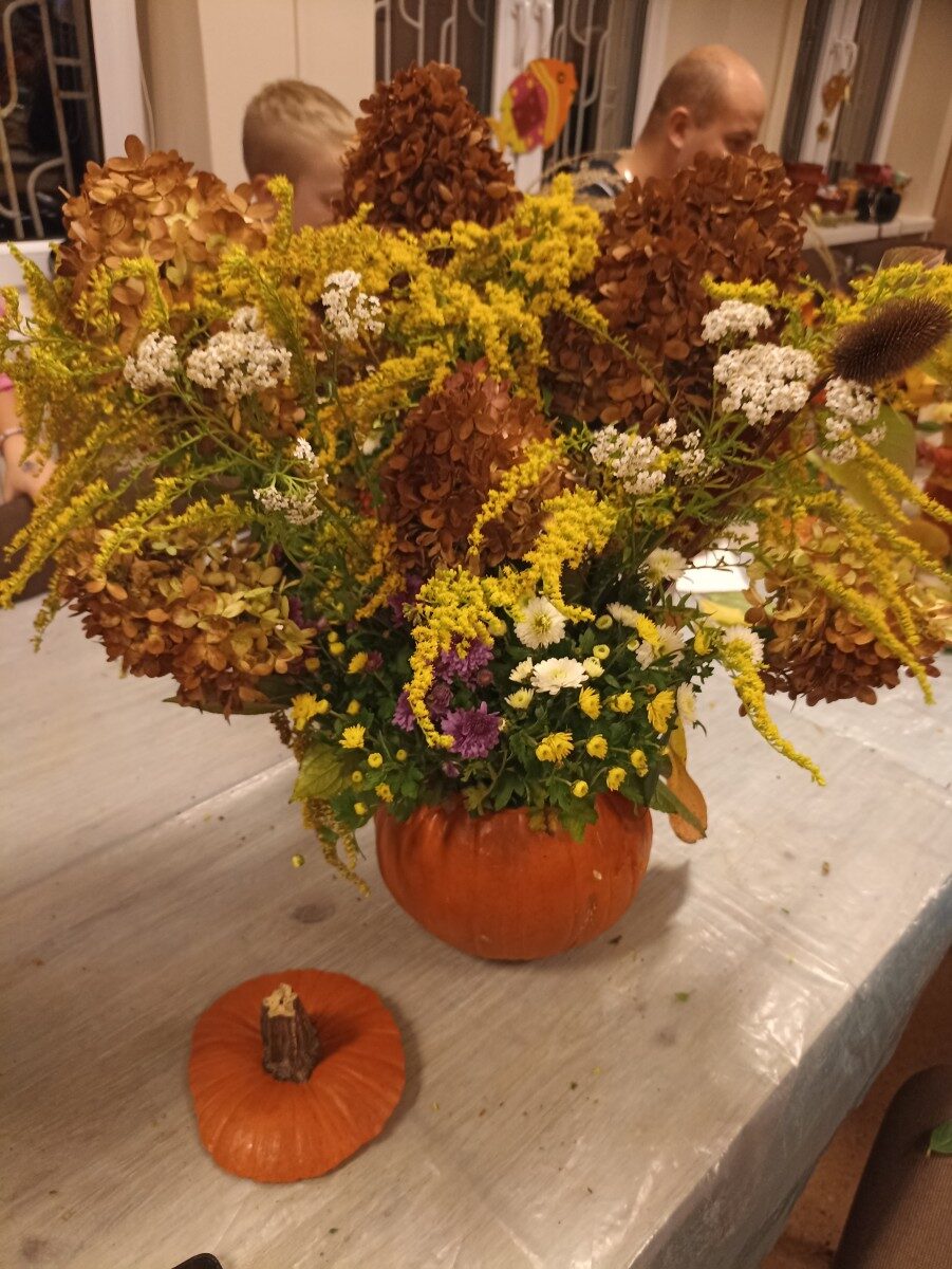 Dynia – królowa jesiennego stołu. Jesień piękna, kolorowa wprost zachwyca. Przecudne dekoracje na stół ” dyniowe wazony” wykonali uczestnicy niedzielnych warsztatów, pod czujnym okiem instruktor Katarzyny Cyniak- Górneckiej  w Filii Bronisze.