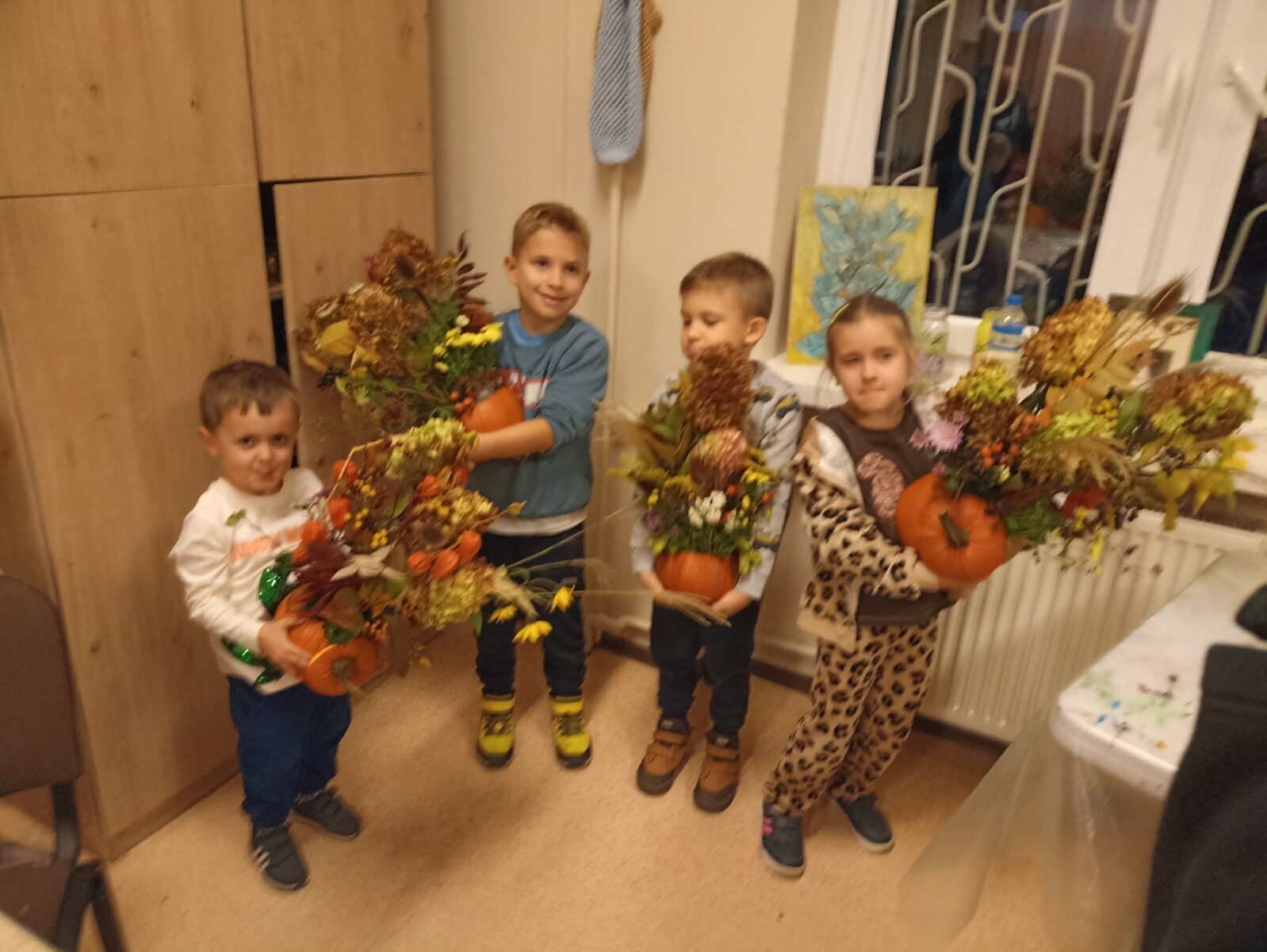 Dynia – królowa jesiennego stołu. Jesień piękna, kolorowa wprost zachwyca. Przecudne dekoracje na stół ” dyniowe wazony” wykonali uczestnicy niedzielnych warsztatów, pod czujnym okiem instruktor Katarzyny Cyniak- Górneckiej w Filii Bronisze.