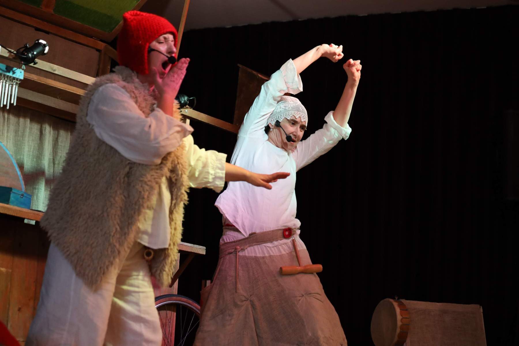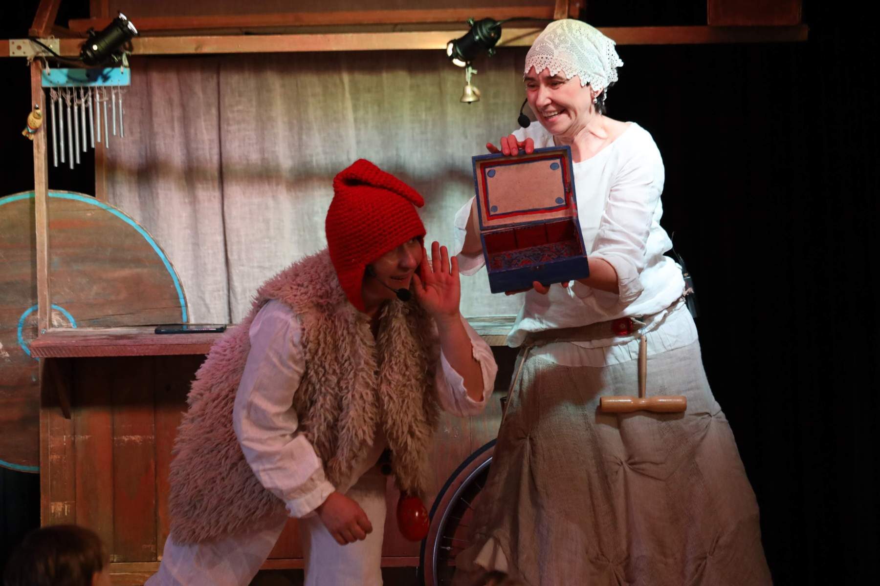 Punktualnie w południe (pomimo zmiany czasu na letni!) na scenę sali widowiskowej wkroczyły artystki z kolektywu Teatr Małe Mi! To już ich druga wizyta w Domu Kultury Uśmiech na przestrzeni roku – i doskonale to było czuć: był luz, była zabawa i było niezwykłe, humorystyczne i pouczające widowisko dla dzieci!