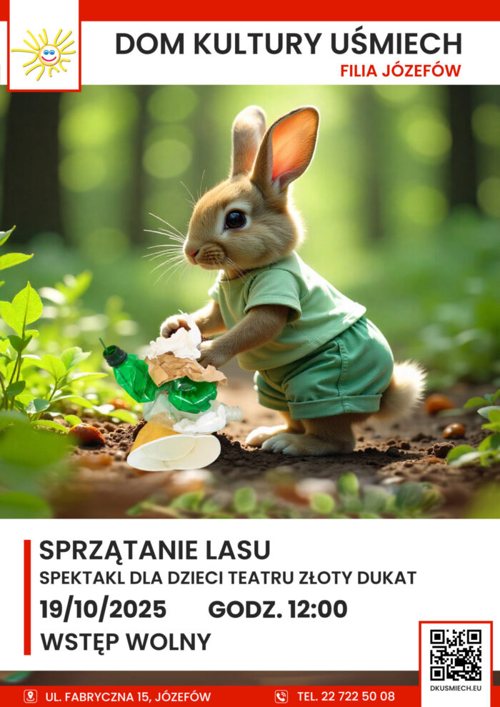 Dyrektor Domu Kultury “Uśmiech” serdecznie zaprasza na wyjątkowe przedstawienie pt. „Sprzątanie lasu” w wykonaniu   Teatru Złoty Dukat