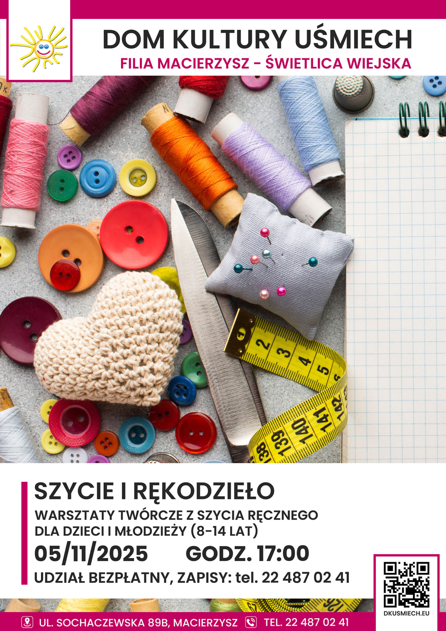 Warsztaty z szycia ręcznego, w trakcie których wprowadzimy młodych, aspirujących mistrzów krawiectwa w podstawy pracy z igłą i nitką. Będziemy pracowali praktycznie, a efekty pracy spotkania będzie można zabrać ze sobą do domu.