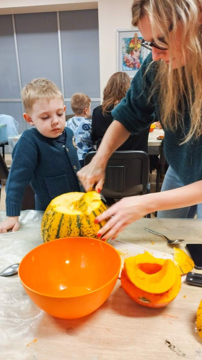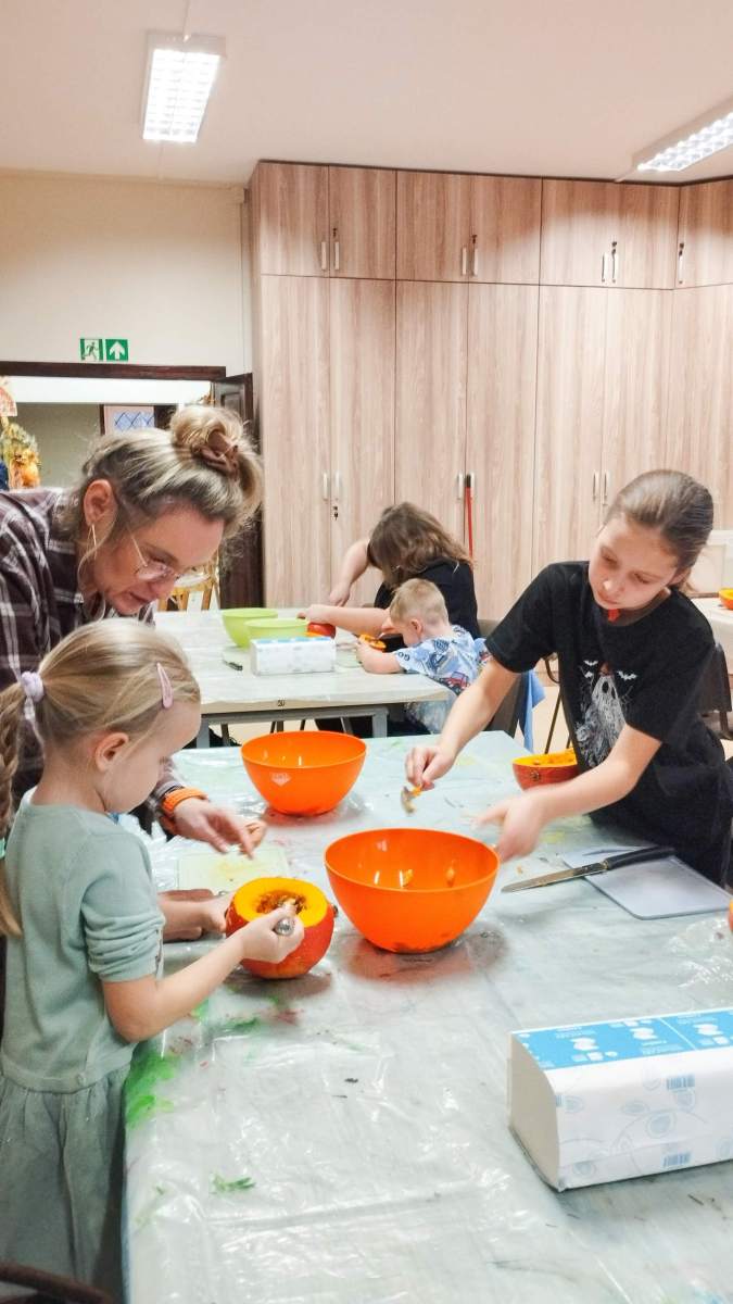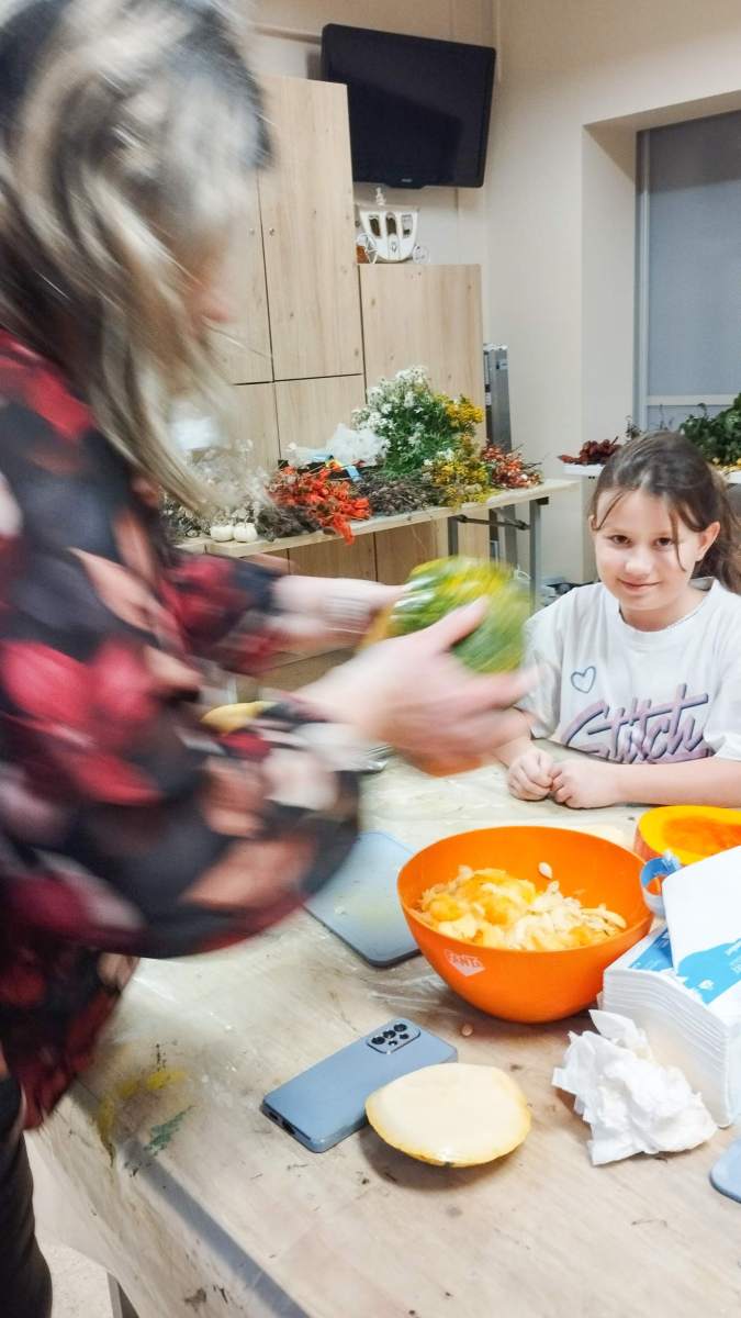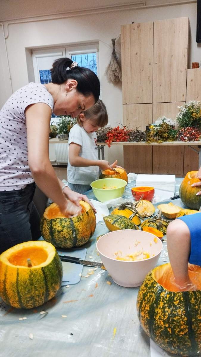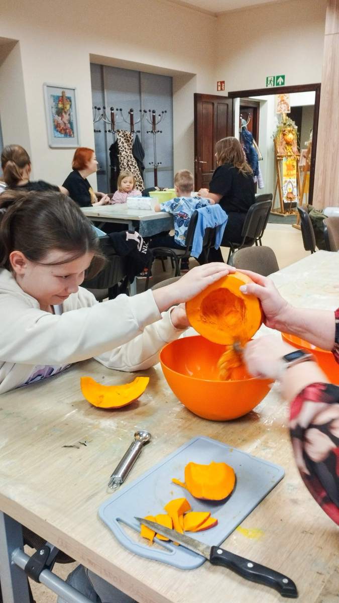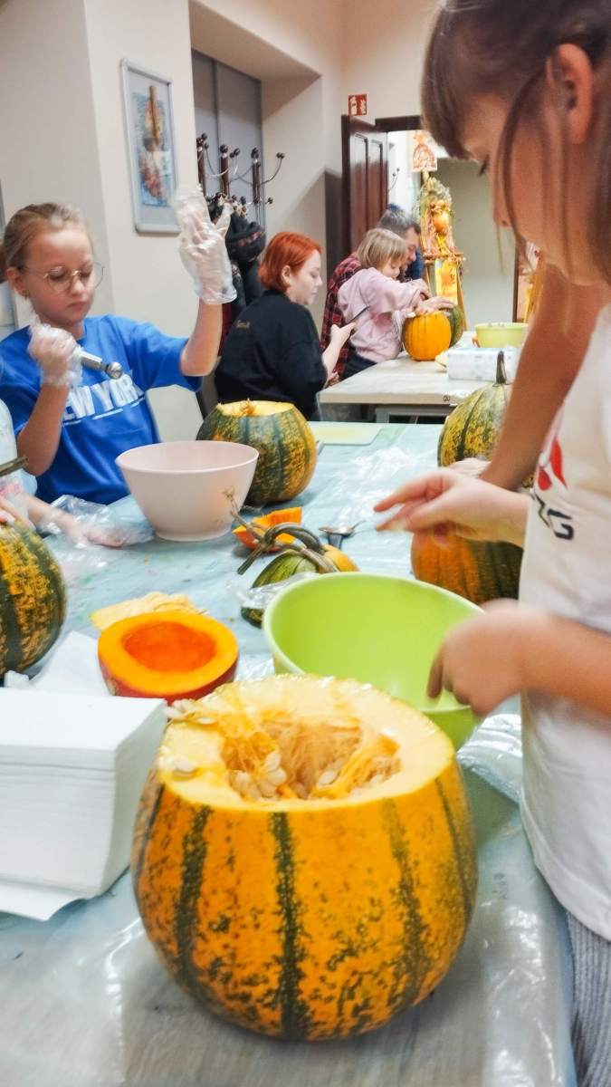 Popołudnie w Filii Bronisze minęło pod znakiem dyni! Niektórzy kochają, inni nie mogą na to warzywo patrzeć… ale niezaprzeczalnie – jest ono źródłem wielu atrakcji! Pośród tych pięknych, dojrzałych bulw (w każdym kolorze jesieni!) wspólnie przygotowywaliśmy dekoracje, drążąc i wycinając, a przy tym zajadając pyszne i aromatyczne smakołyki – oczywiście z dyni – które wcześniej przyrządziliśmy! Powstałe stroiki udekorują niejeden jesienny stół! Był to prawdziwy zawrót głowy – sprawdźcie sami!