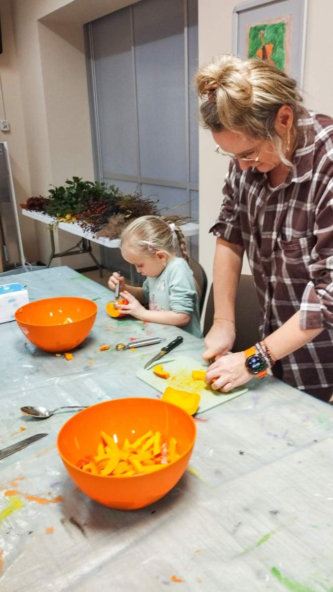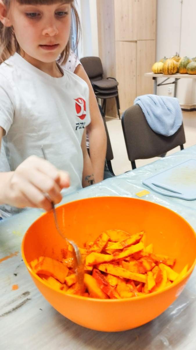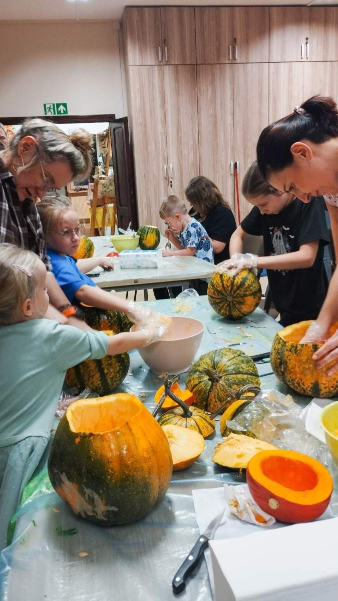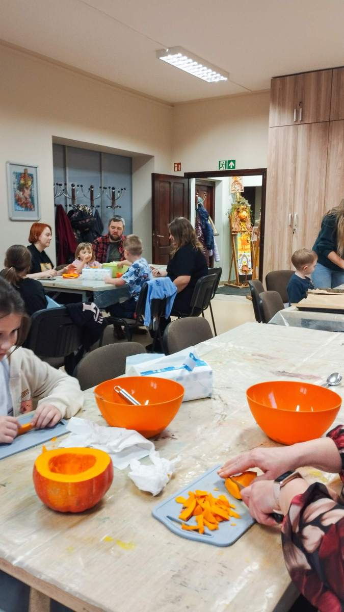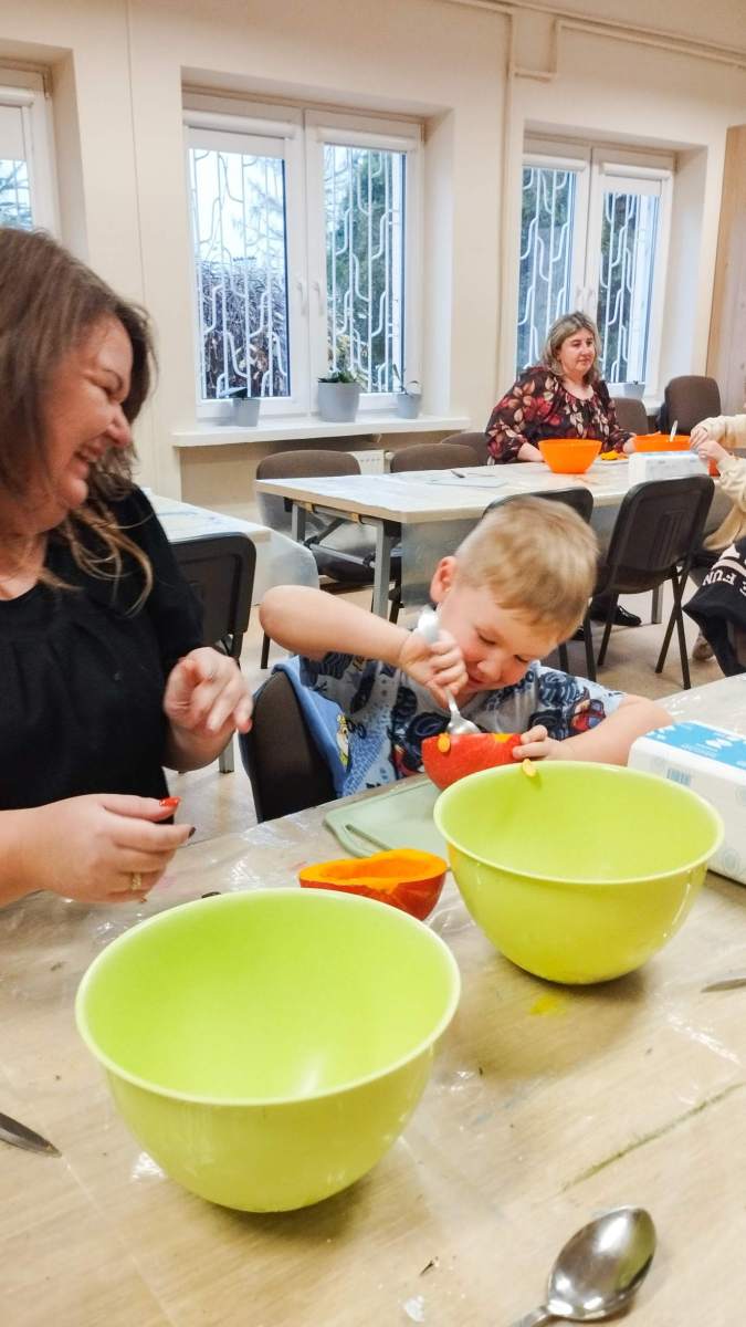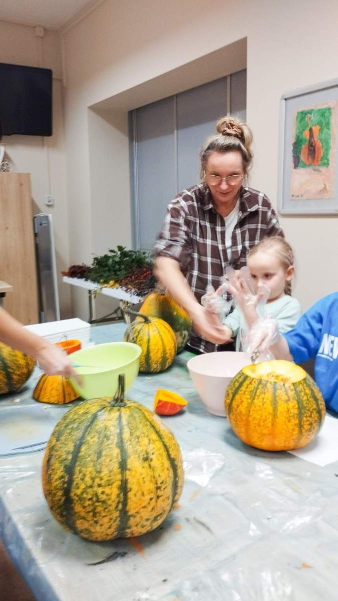 Popołudnie w Filii Bronisze minęło pod znakiem dyni! Niektórzy kochają, inni nie mogą na to warzywo patrzeć… ale niezaprzeczalnie – jest ono źródłem wielu atrakcji! Pośród tych pięknych, dojrzałych bulw (w każdym kolorze jesieni!) wspólnie przygotowywaliśmy dekoracje, drążąc i wycinając, a przy tym zajadając pyszne i aromatyczne smakołyki – oczywiście z dyni – które wcześniej przyrządziliśmy! Powstałe stroiki udekorują niejeden jesienny stół! Był to prawdziwy zawrót głowy – sprawdźcie sami!