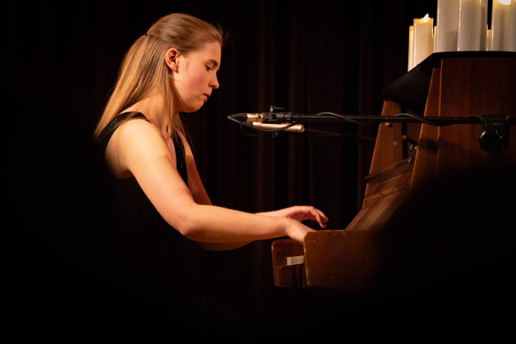 Na scenie sali widowiskowej w siedzibie Domu Kultury Uśmiech popis swoich umiejętności muzycznych na pianinie dała Julia Kalinowska. Młoda pianistka to laureatka wielu prestiżowych konkursów ogólnopolskich i międzynarodowych, a swoją pasję gry na fortepianie realizuje koncertując w miejscach takich jak NOSPR w Katowicach czy Zamek Królewski w Warszawie.
