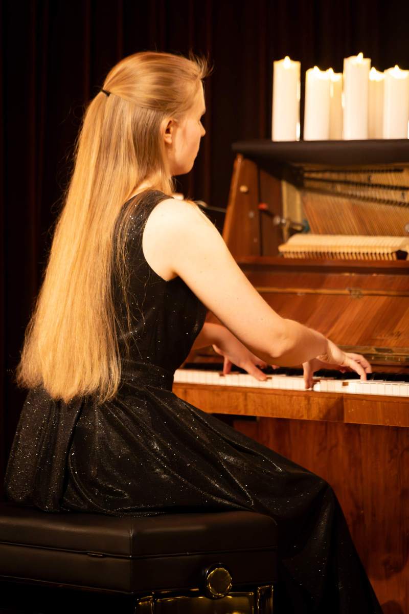Na scenie sali widowiskowej w siedzibie Domu Kultury Uśmiech popis swoich umiejętności muzycznych na pianinie dała Julia Kalinowska. Młoda pianistka to laureatka wielu prestiżowych konkursów ogólnopolskich i międzynarodowych, a swoją pasję gry na fortepianie realizuje koncertując w miejscach takich jak NOSPR w Katowicach czy Zamek Królewski w Warszawie.