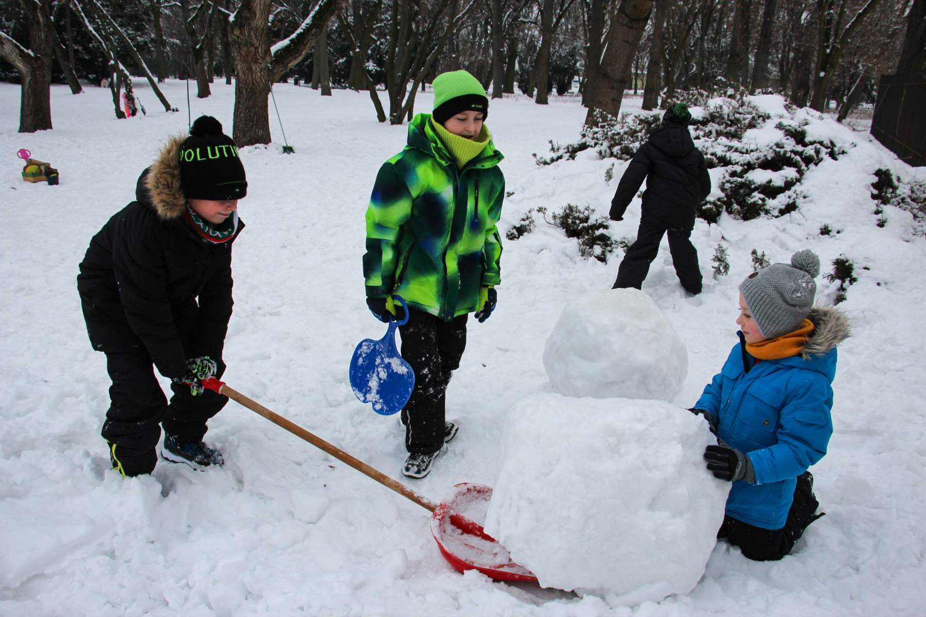 Na dzieci czekały zajęcia zarówno w sali warsztatowej, jak i w pobliskim parku. Wspólnie podjęliśmy się nauki szycia czy rysunku. Owocem dziecięcej inwencji był także śnieżny bałwan przed budynkiem filii, który stanął na straży dobrej atmosfery i zabawy.