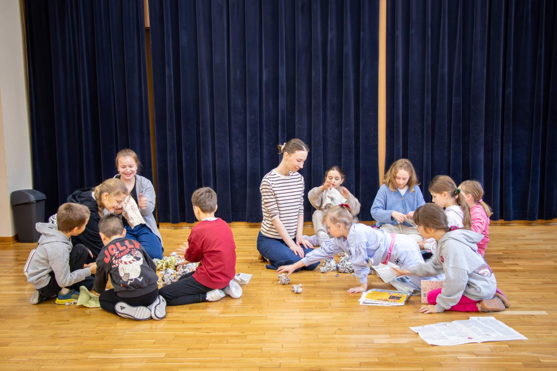 Podczas zajęć teatralnych uczestnicy mieli okazję rozwijać wyobraźnię, ekspresję ruchową i słowną, a także przełamywać nieśmiałość. Wspólne ćwiczenia aktorskie, zabawy i improwizacje sprzyjały budowaniu pewności siebie.