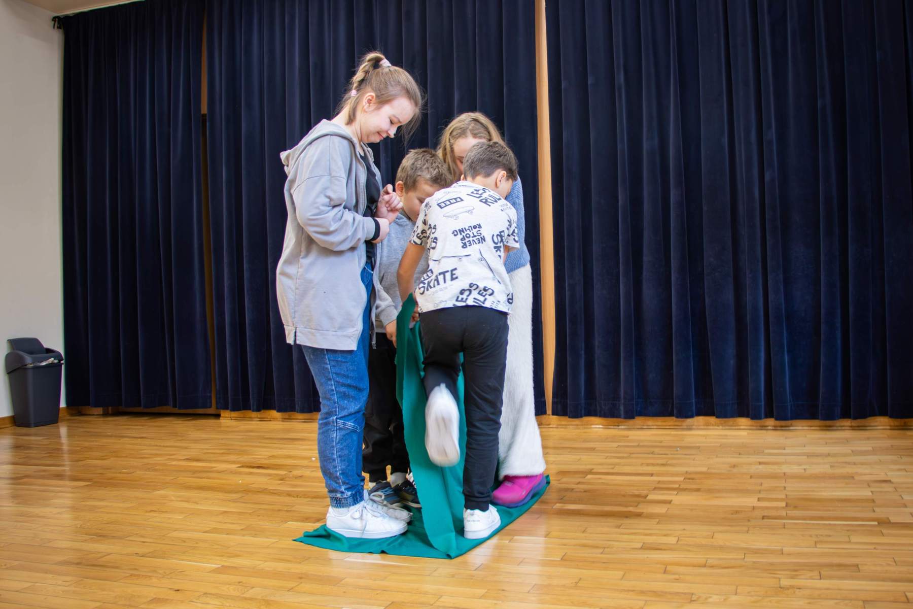 Podczas zajęć teatralnych uczestnicy mieli okazję rozwijać wyobraźnię, ekspresję ruchową i słowną, a także przełamywać nieśmiałość. Wspólne ćwiczenia aktorskie, zabawy i improwizacje sprzyjały budowaniu pewności siebie.