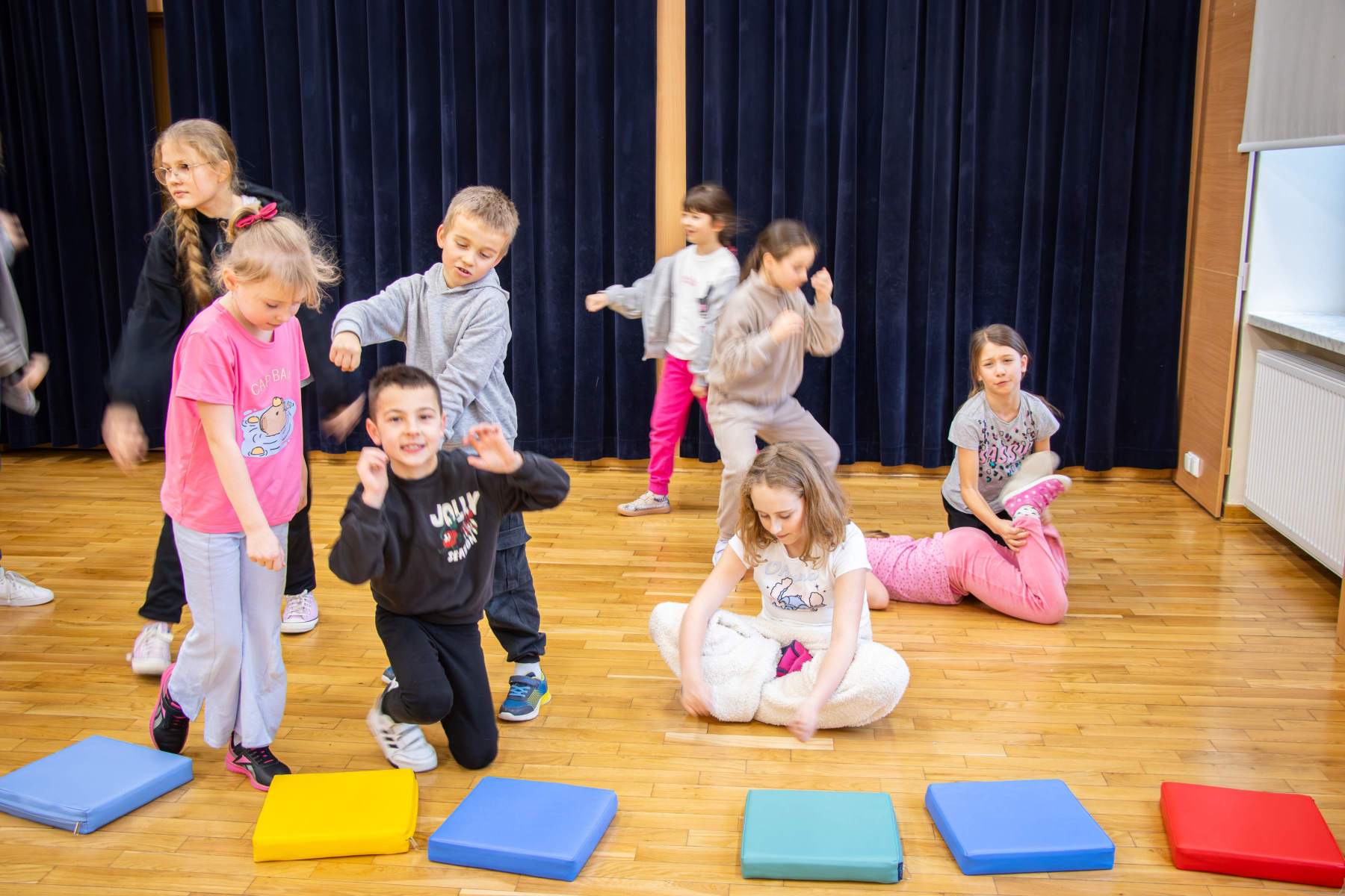 Podczas zajęć teatralnych uczestnicy mieli okazję rozwijać wyobraźnię, ekspresję ruchową i słowną, a także przełamywać nieśmiałość. Wspólne ćwiczenia aktorskie, zabawy i improwizacje sprzyjały budowaniu pewności siebie.