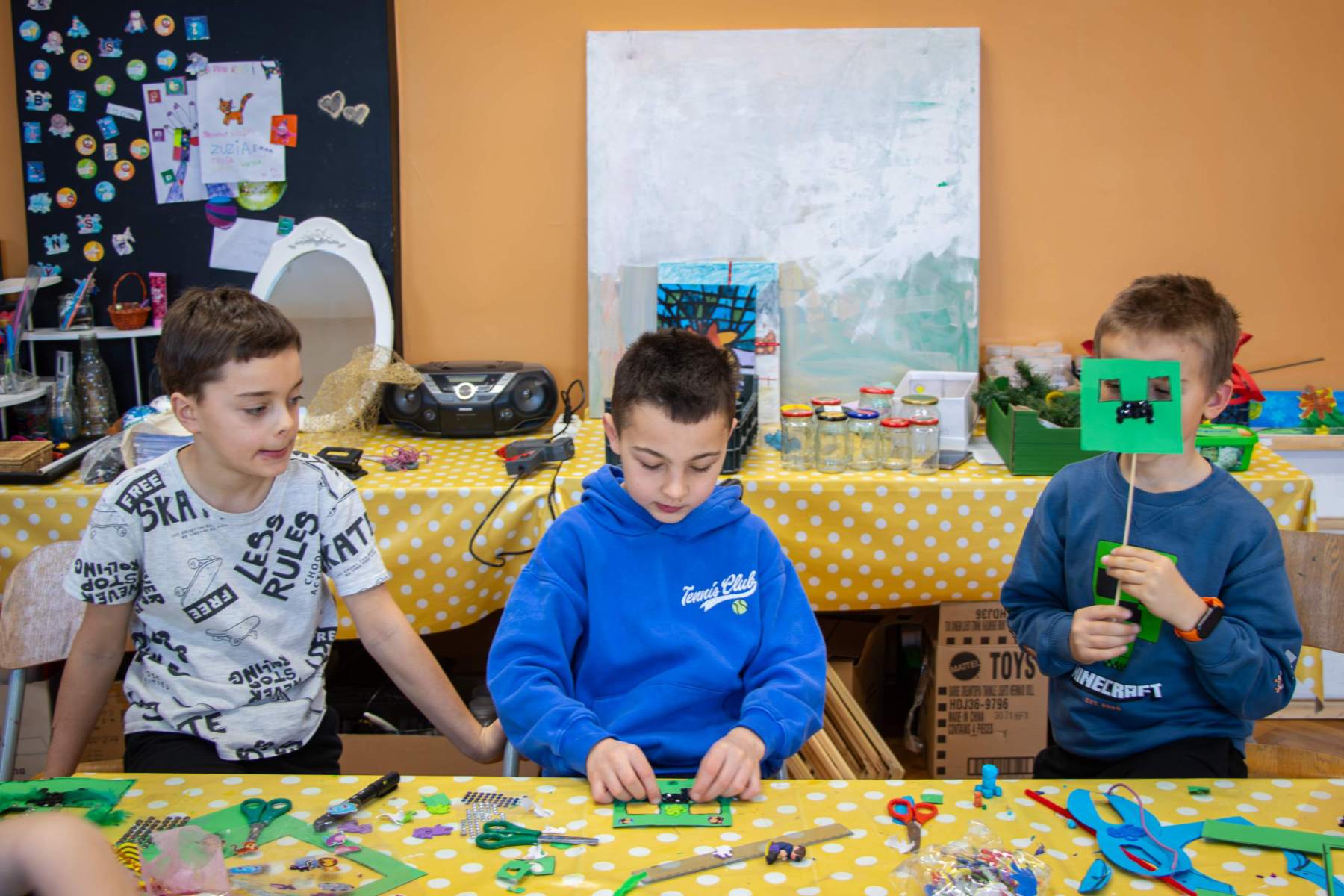 W Macierzyszu czekały na dzieci warsztaty z rękodzieła, na których powstały pięknie malowane lniane torby.