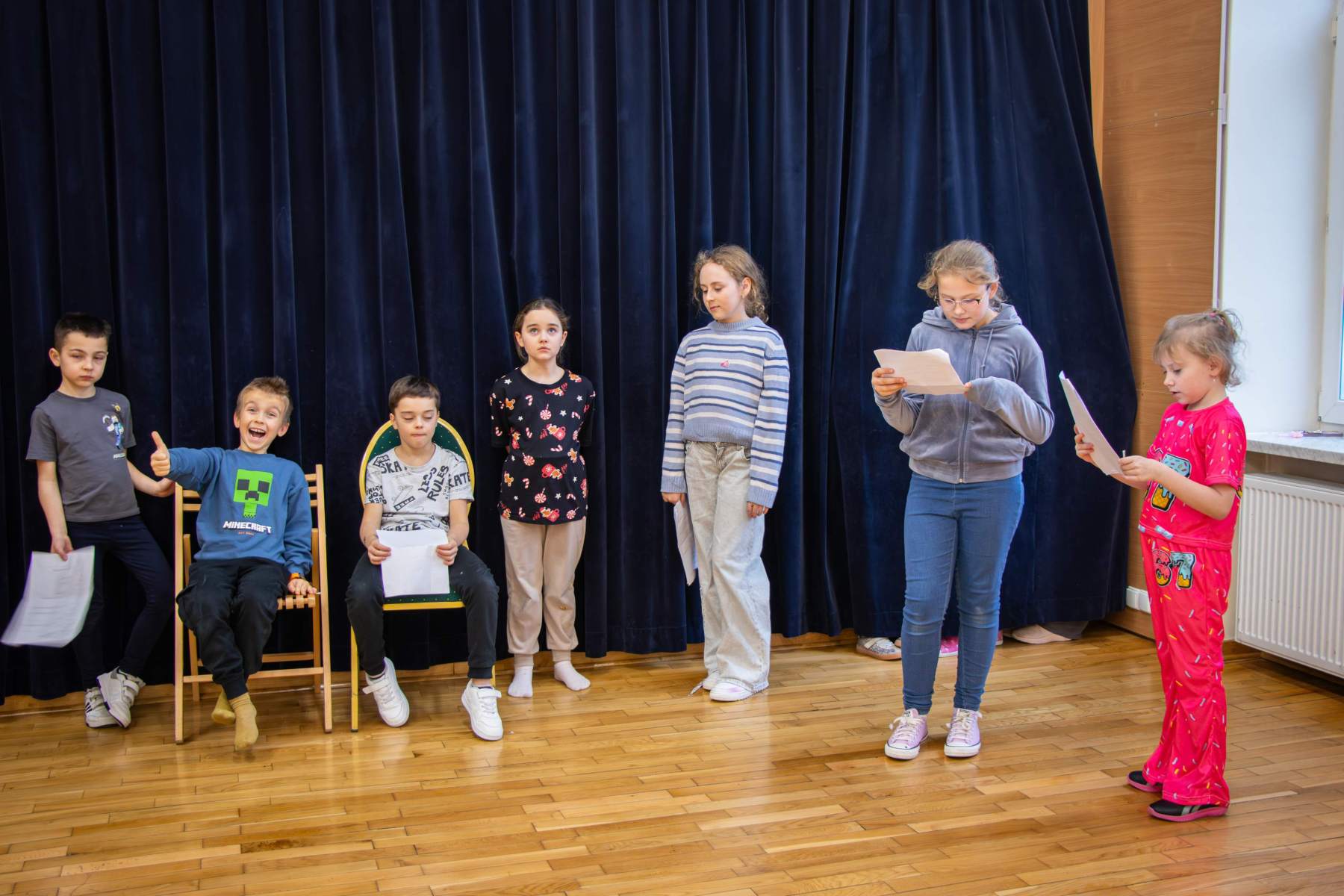 Podczas zajęć teatralnych uczestnicy mieli okazję rozwijać wyobraźnię, ekspresję ruchową i słowną, a także przełamywać nieśmiałość. Wspólne ćwiczenia aktorskie, zabawy i improwizacje sprzyjały budowaniu pewności siebie.