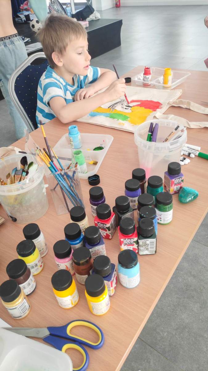 W Macierzyszu czekały na dzieci warsztaty z rękodzieła, na których powstały pięknie malowane lniane torby.