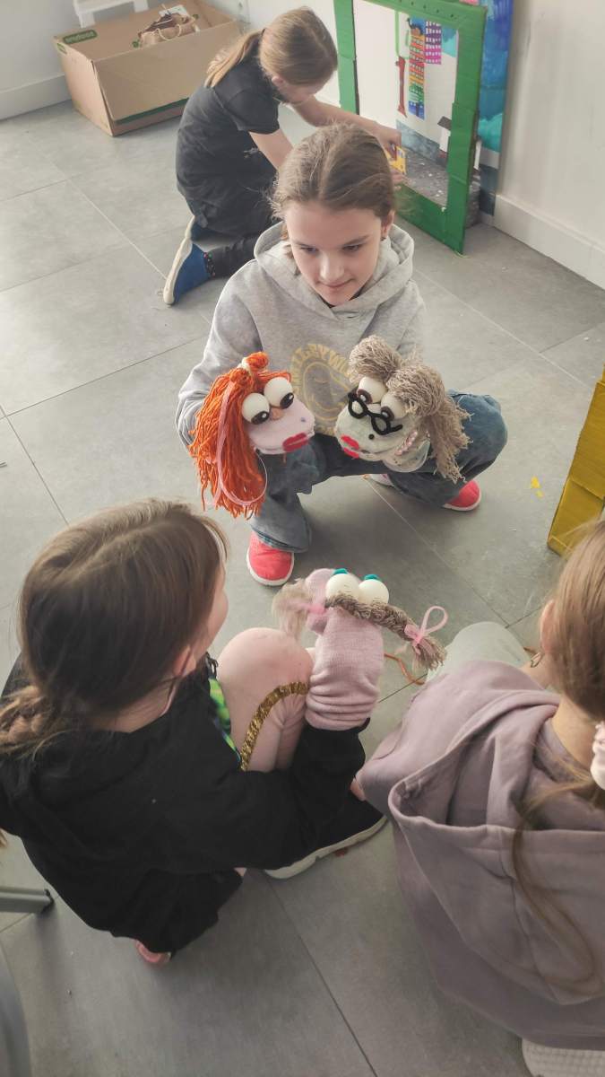 Trzecim blokiem zajęciowym był Teatr pacynek, podczas którego dzieci samodzielnie wykonały kukiełki i przygotowały przedstawienie.