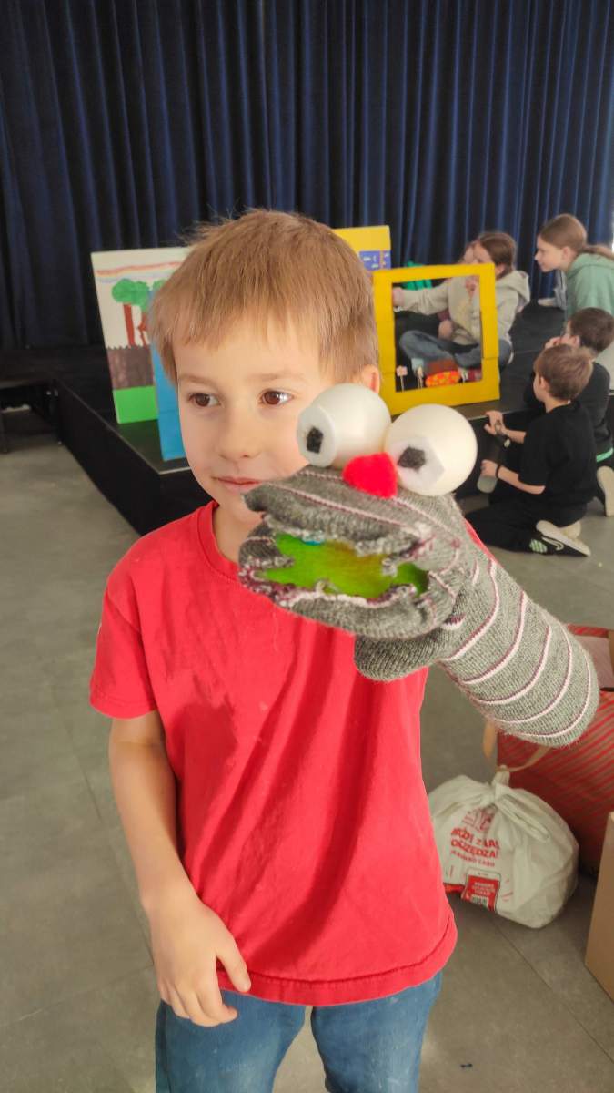 Trzecim blokiem zajęciowym był Teatr pacynek, podczas którego dzieci samodzielnie wykonały kukiełki i przygotowały przedstawienie.
