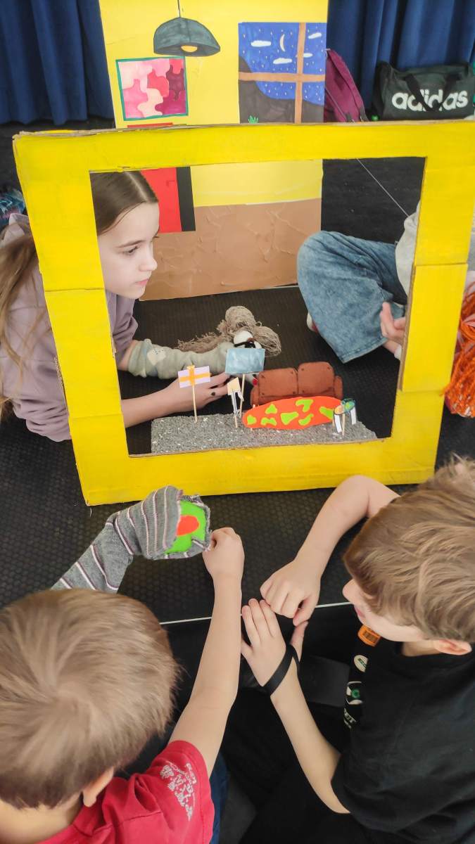 Trzecim blokiem zajęciowym był Teatr pacynek, podczas którego dzieci samodzielnie wykonały kukiełki i przygotowały przedstawienie.