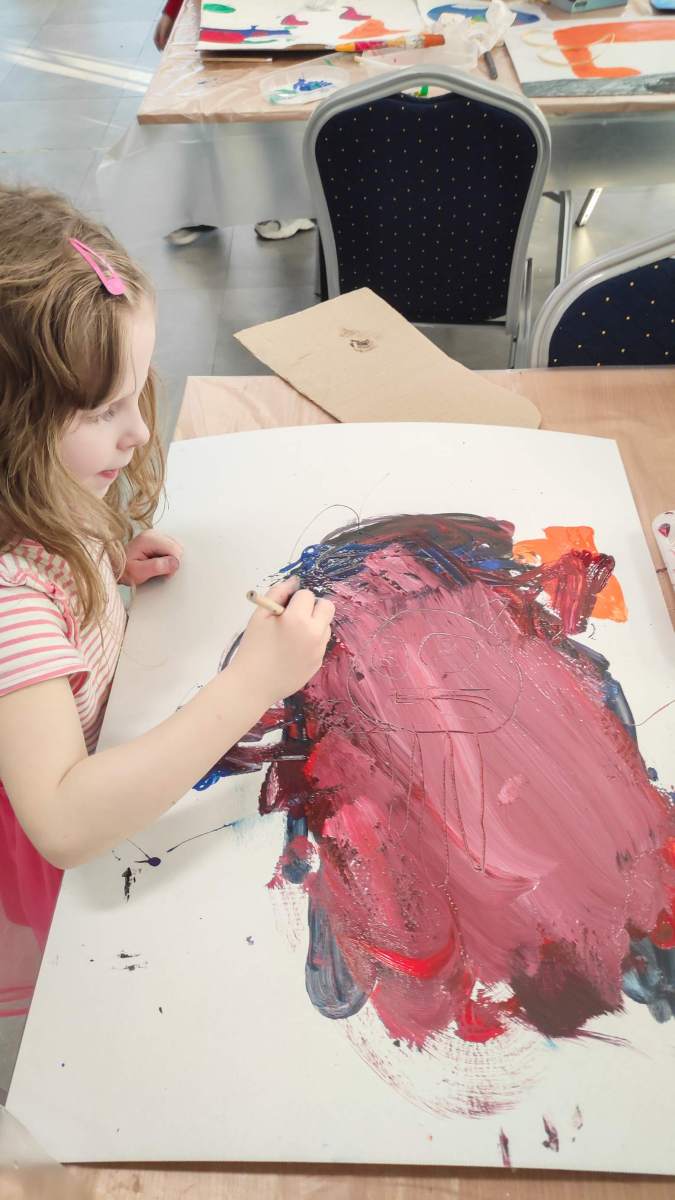 Z kolei zajęcia plastyczne pozwoliły na rozwijanie zdolności manualnych i puszczenie wodzy wyobraźni. Dzieci tworzyły prace różnymi technikami, eksperymentowały z kolorami i materiałami, a każdy projekt był okazją do pokazania własnej kreatywności.