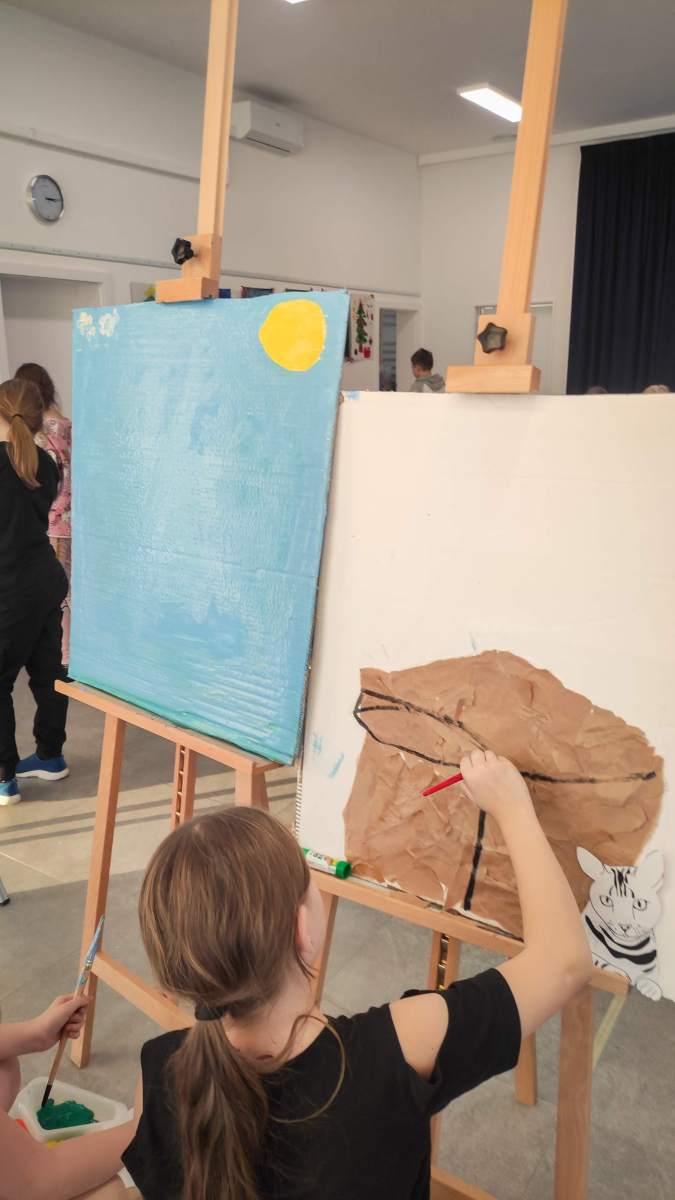 Z kolei zajęcia plastyczne pozwoliły na rozwijanie zdolności manualnych i puszczenie wodzy wyobraźni. Dzieci tworzyły prace różnymi technikami, eksperymentowały z kolorami i materiałami, a każdy projekt był okazją do pokazania własnej kreatywności.