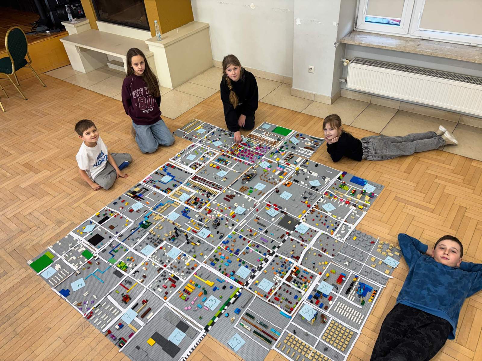Dla młodych architektów przygotowaliśmy zajęcia z budowania Ożarowa z klocków LEGO, podczas których uczestnicy zapoznali się z topografią miasta za pomocą papierowych map, a następnie stworzyli makietę miasta.