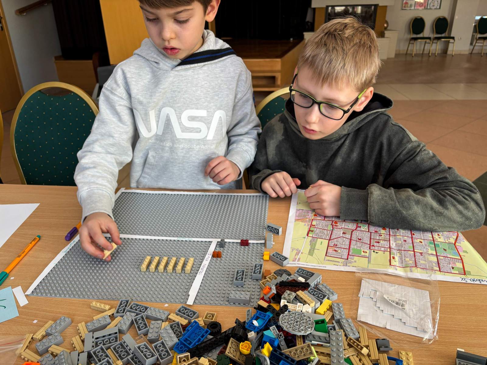 Dla młodych architektów przygotowaliśmy zajęcia z budowania Ożarowa z klocków LEGO, podczas których uczestnicy zapoznali się z topografią miasta za pomocą papierowych map, a następnie stworzyli makietę miasta.