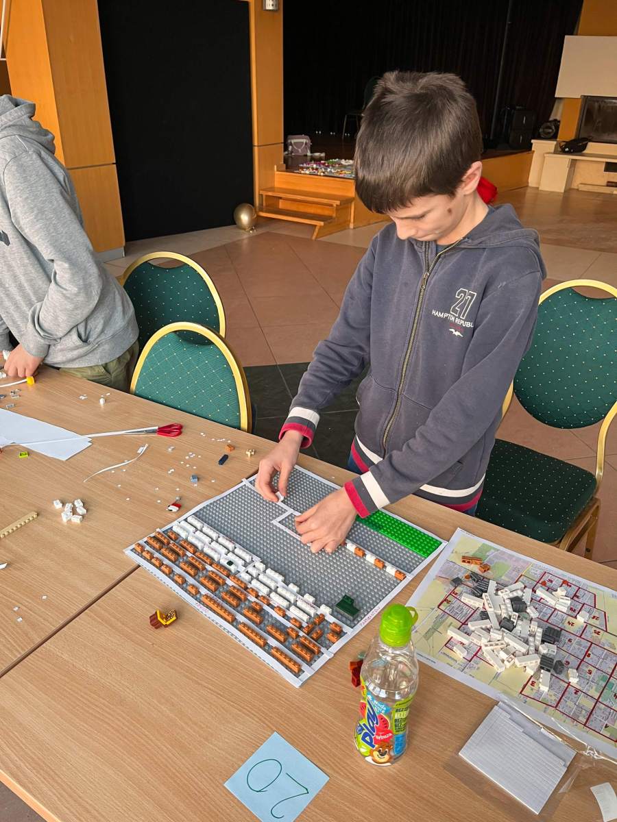 Dla młodych architektów przygotowaliśmy zajęcia z budowania Ożarowa z klocków LEGO, podczas których uczestnicy zapoznali się z topografią miasta za pomocą papierowych map, a następnie stworzyli makietę miasta.