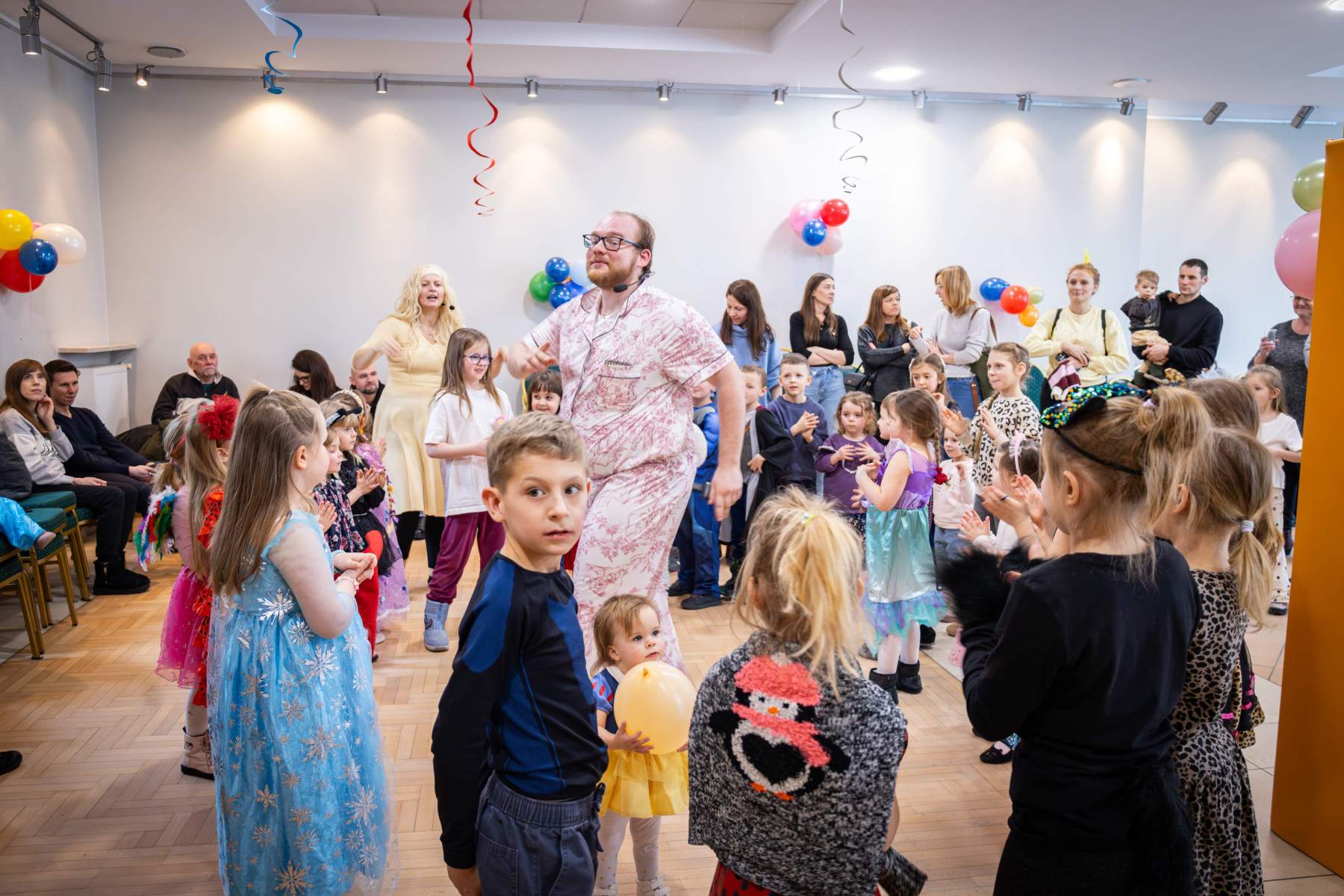 Po spektaklu artyści z Teatru od Serca zorganizowali animacje karnawałowe, które stanowiły dopełnienie atmosfery wspólnej zabawy. Na pozostałych uczestników czekały zabawy, wspólne tańce, przeciąganie liny czy wybór Króla i Królowej Balu. Sala widowiskowa wypełniła się muzyką, śmiechem i karnawałową atmosferą, która pozostała z nami do końca!