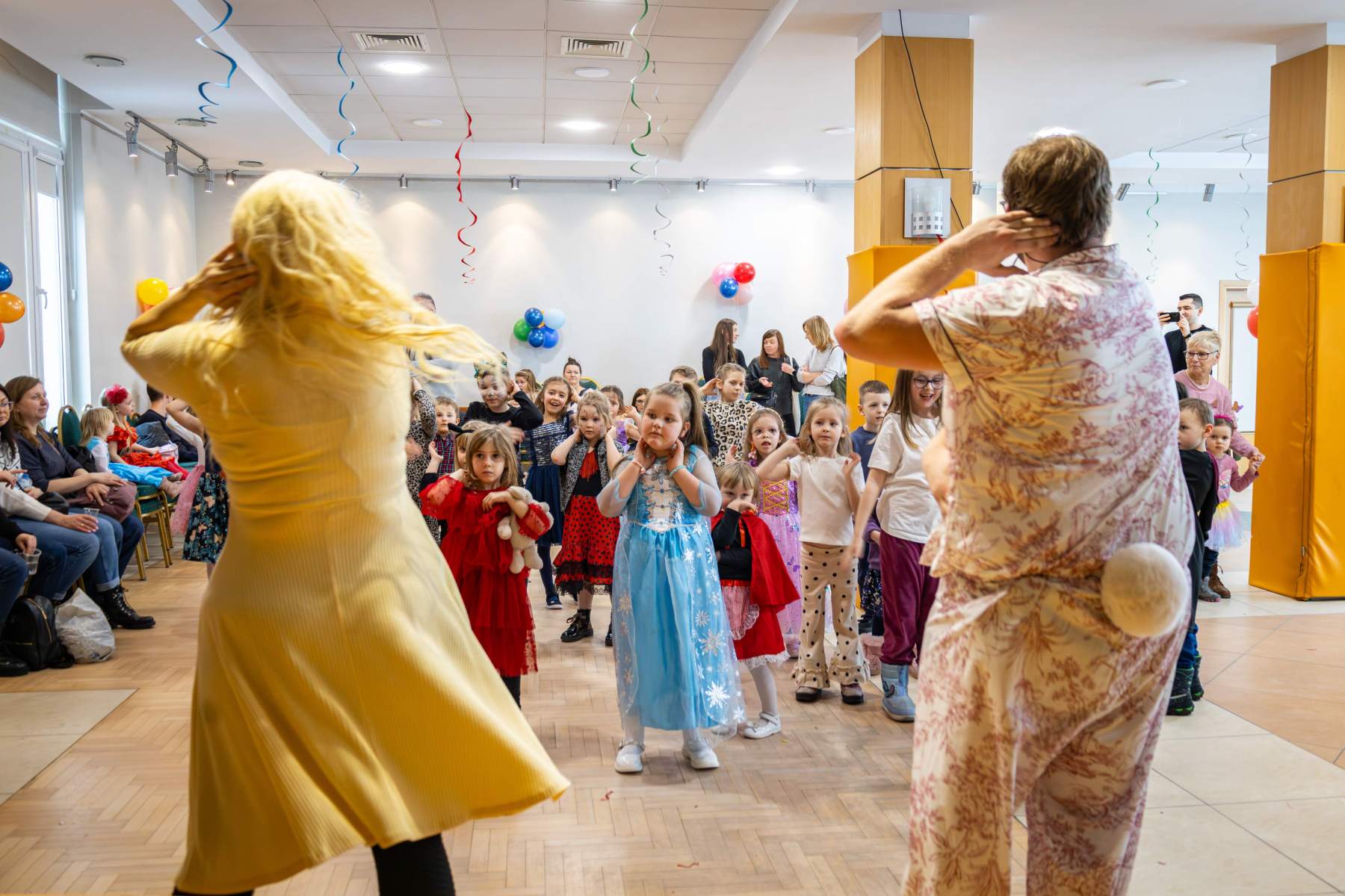 Po spektaklu artyści z Teatru od Serca zorganizowali animacje karnawałowe, które stanowiły dopełnienie atmosfery wspólnej zabawy. Na pozostałych uczestników czekały zabawy, wspólne tańce, przeciąganie liny czy wybór Króla i Królowej Balu. Sala widowiskowa wypełniła się muzyką, śmiechem i karnawałową atmosferą, która pozostała z nami do końca!