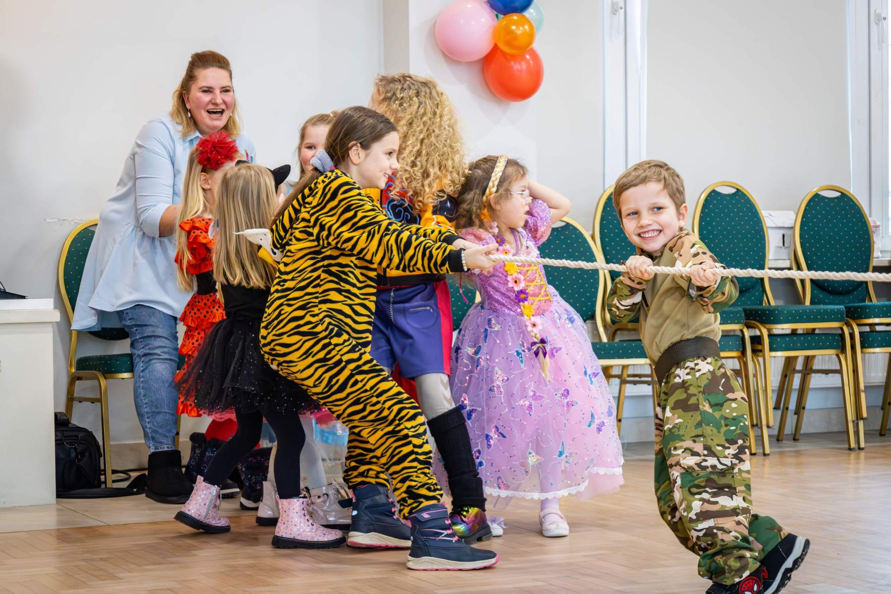 Po spektaklu artyści z Teatru od Serca zorganizowali animacje karnawałowe, które stanowiły dopełnienie atmosfery wspólnej zabawy. Na pozostałych uczestników czekały zabawy, wspólne tańce, przeciąganie liny czy wybór Króla i Królowej Balu. Sala widowiskowa wypełniła się muzyką, śmiechem i karnawałową atmosferą, która pozostała z nami do końca!