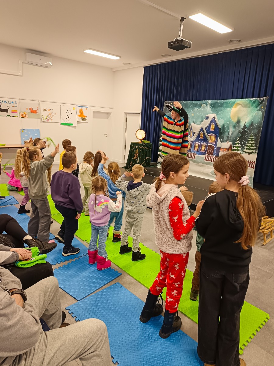Zimowe, weekendowe popołudnie zamykaliśmy spotkaniem w filii Domu Kultury Uśmiech w Macierzyszu, gdzie odbył się spektakl teatralny dla dzieci pt. ,,Zimowe przygody Iskierki’’ w wykonaniu Teatru Jumaja.