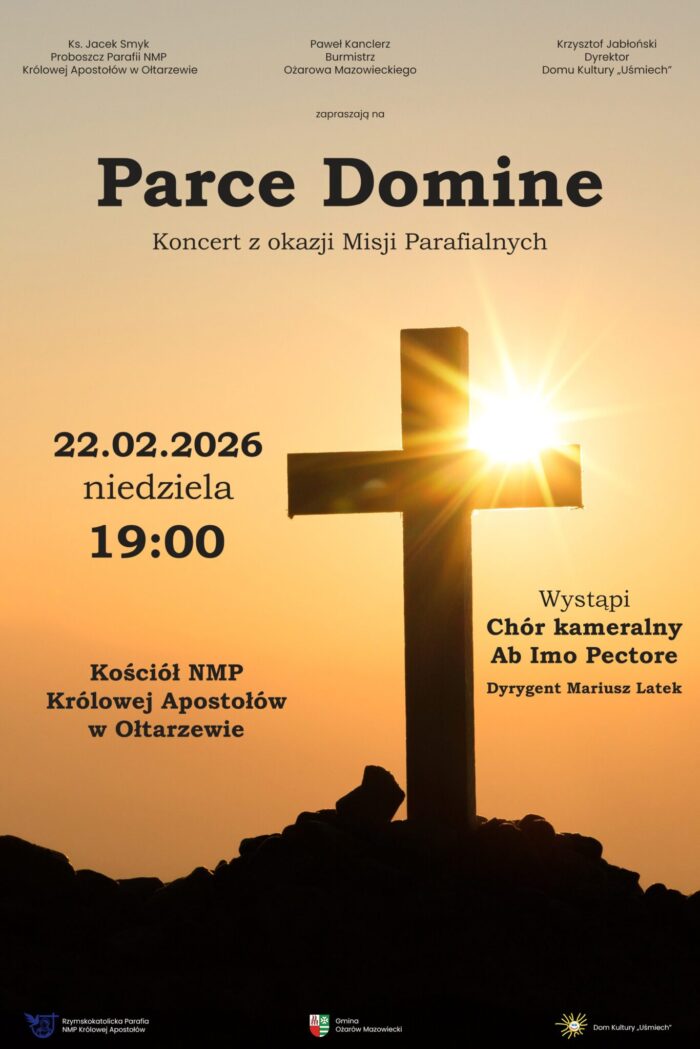 „Parce Domine” – czyli wyjątkowy koncert w wykonaniu Chóru Kameralnego Ab Imo Pectore pod dyrekcją Mariusza Latka. To niezwykłe wydarzenie muzyczne, organizowane w ramach Misji Parafialnych, będzie doskonałą okazją do refleksji i zatrzymania się przy dźwiękach najwyższej klasy muzyki sakralnej.