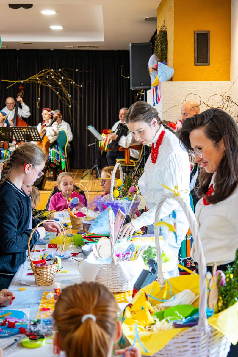 Jednym z najbardziej wyczekiwanych punktów wydarzenia było wspólne tworzenie imponującej palmy wielkanocnej pod okiem członkiń KGW „Galimatjas”. Każdy z uczestników mógł dołożyć swoją przysłowiową cegiełkę w realizacji tego przedsięwzięcia, a efekt końcowy przerósł oczekiwania i stał się symbolem współpracy oraz celebracji tradycji. Z kolei o oprawę muzyczno-taneczną zadbali Zespół Ludowy Ożarowiacy wraz z Ożarowską Kapelą Ludową, których występy wprowadziły uczestników w prawdziwie świąteczny nastrój.