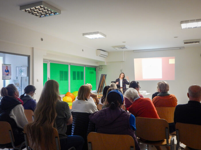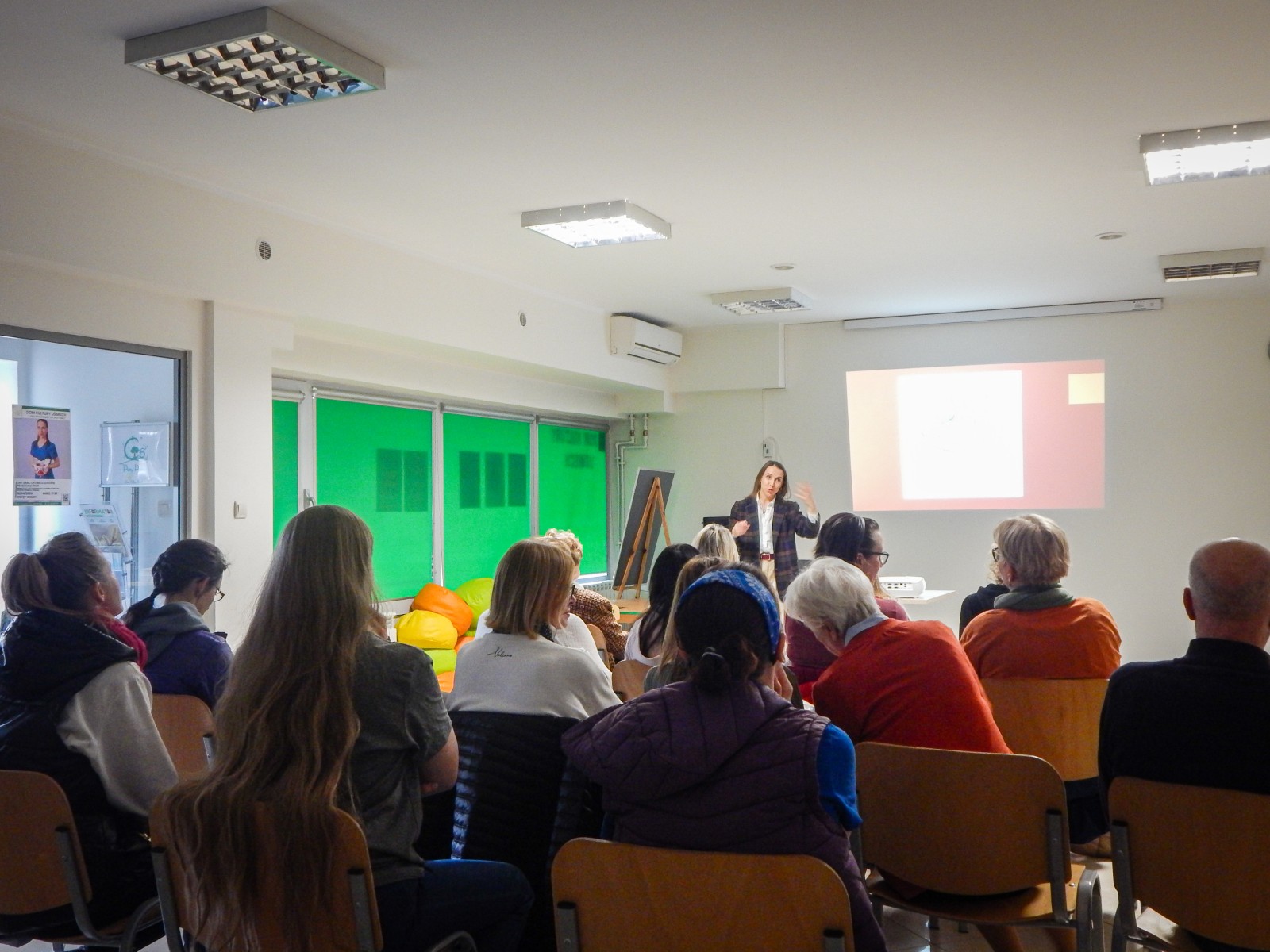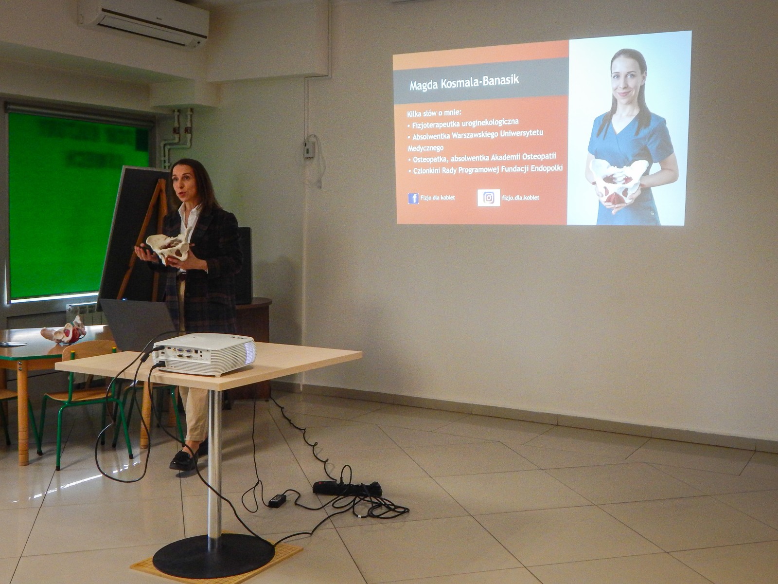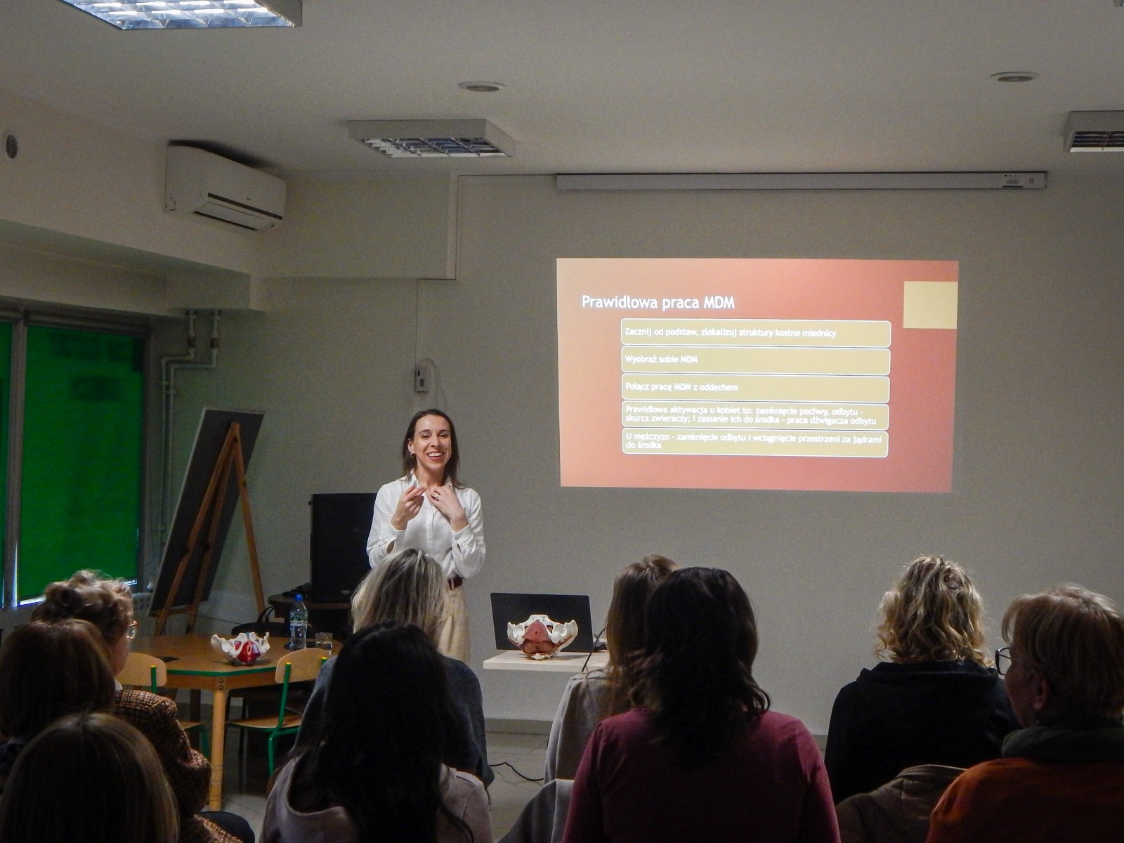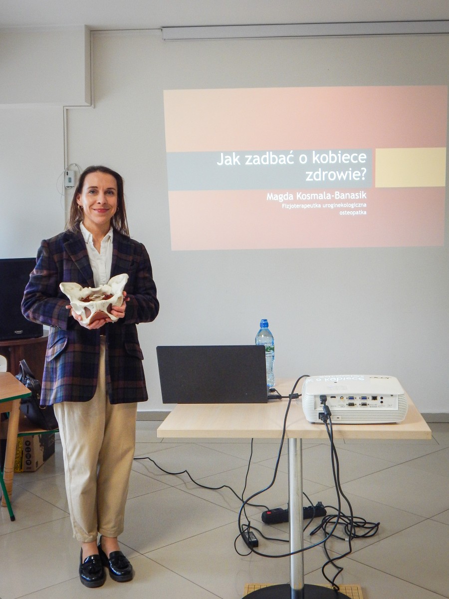 16 kwietnia w Filii DK CIS „Przy Parku” odbył się wykład na temat zdrowia kobiet. Prowadząca, Magda Kosmala-Banasik – fizjoterapeutka urologiczna i osteopatka – poruszyła bardzo ważne zagadnienia, takie jak anatomia i fizjologia miednicy, kobiece tematy tabu (m.in. nietrzymanie moczu czy obniżenie narządów miednicy mniejszej), zdrowe nawyki na co dzień, a także kwestie związane z menopauzą.