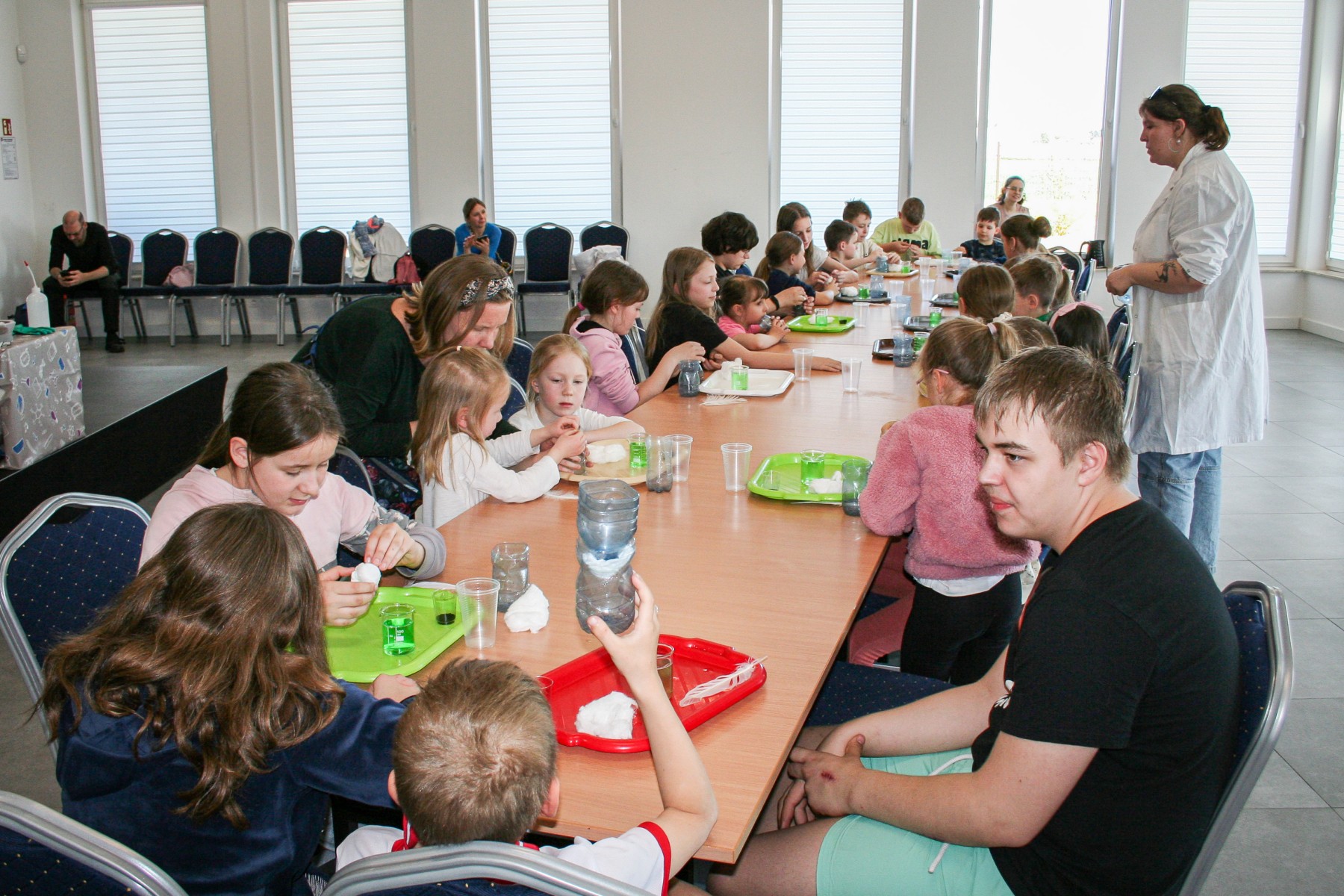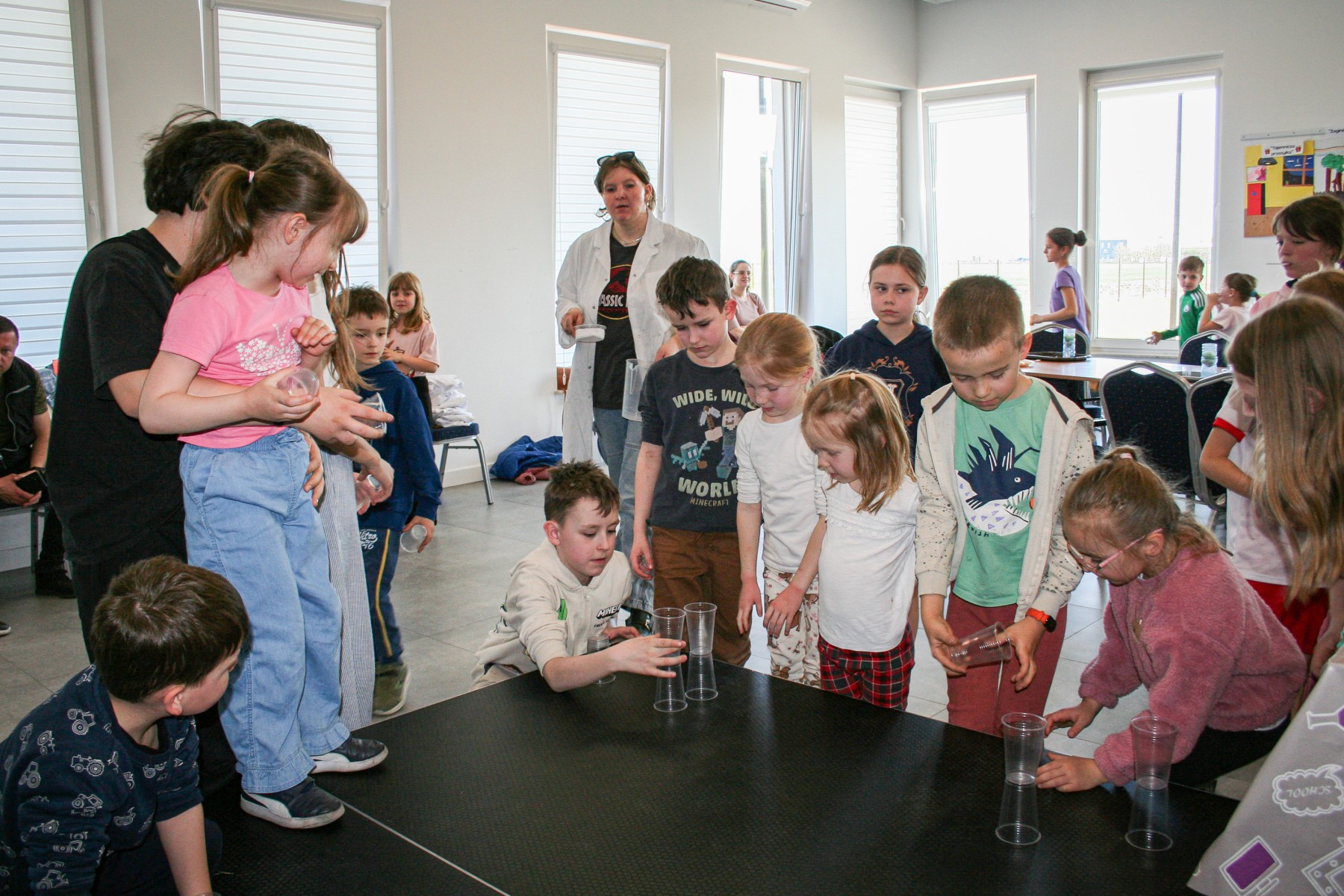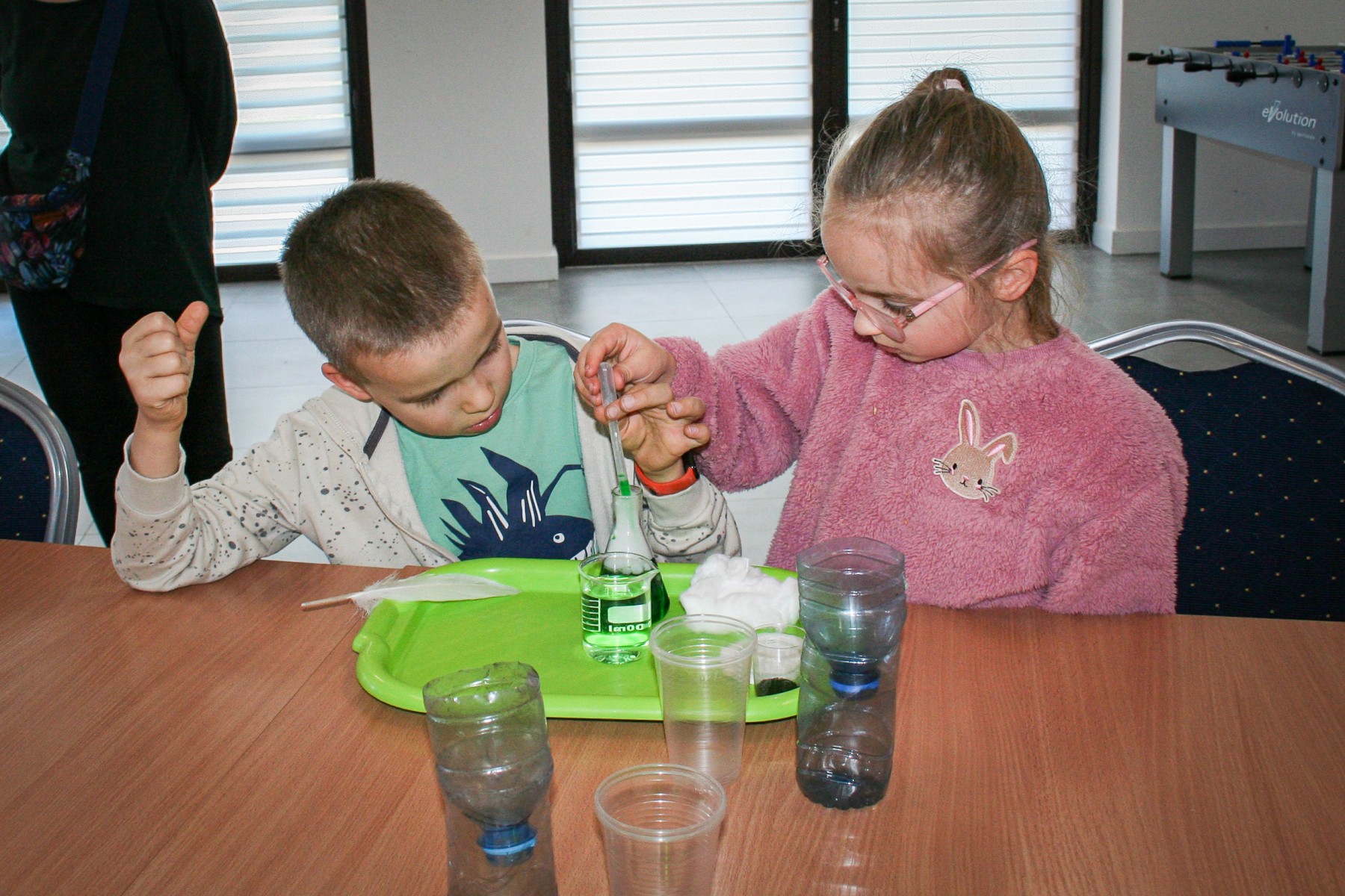 Podczas spotkania dzieci miały okazję wcielić się w rolę małych naukowców i odkrywać tajemnice naszej planet y. Dowiedziały się, jak przebiega proces filtracji wody oraz dlaczego jest on tak ważny dla ochrony środowiska. Poznały również odnawialne źródła energii i wspólnie zastanawiały się, jak możemy z nich korzystać na co dzień. Nie zabrakło także rozmów o zanieczyszczeniu powietrza. Dzieci zobaczyły, jak wygląda ono w praktyce i dowiedziały się, co każdy z nas może zrobić, aby je ograniczyć. Z dumą zaprezentowały też swoją wiedzę na temat segregacji odpadów