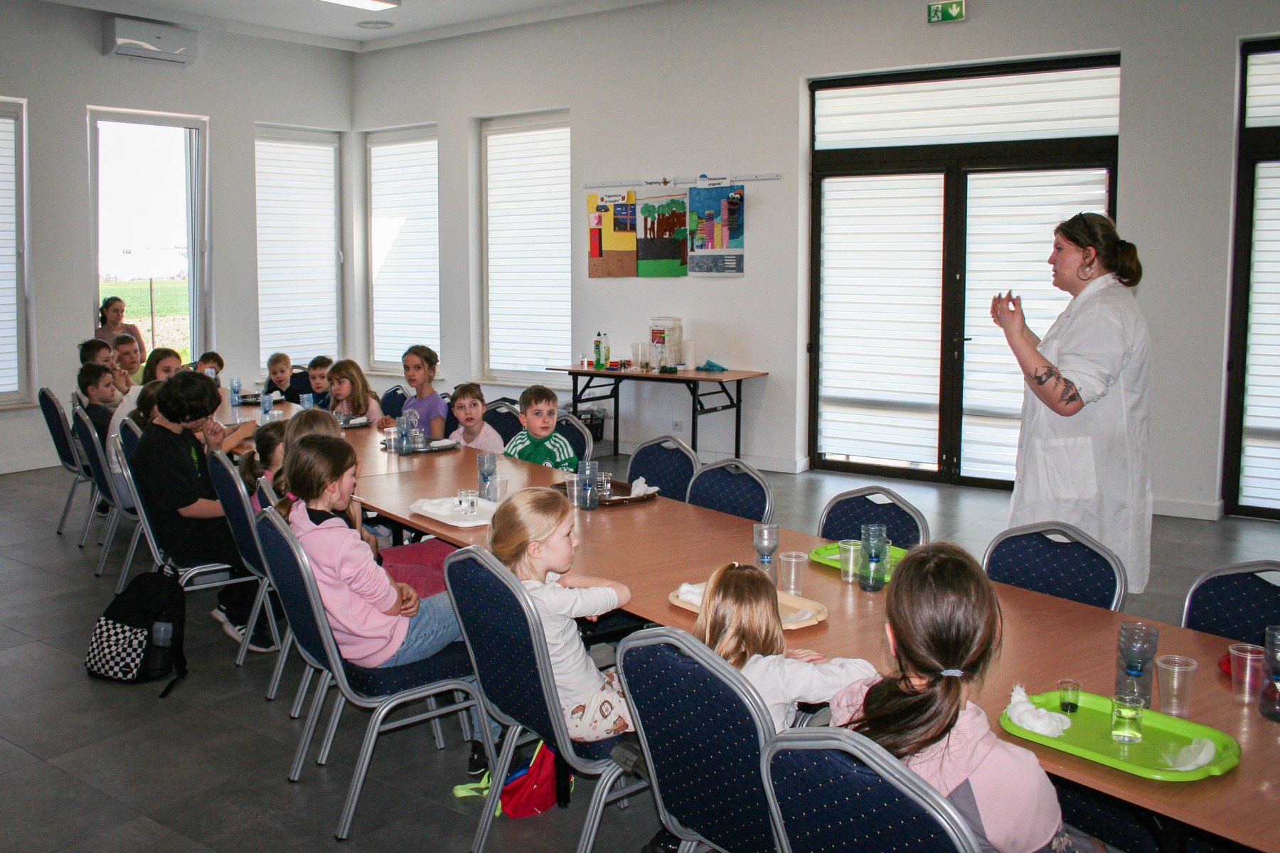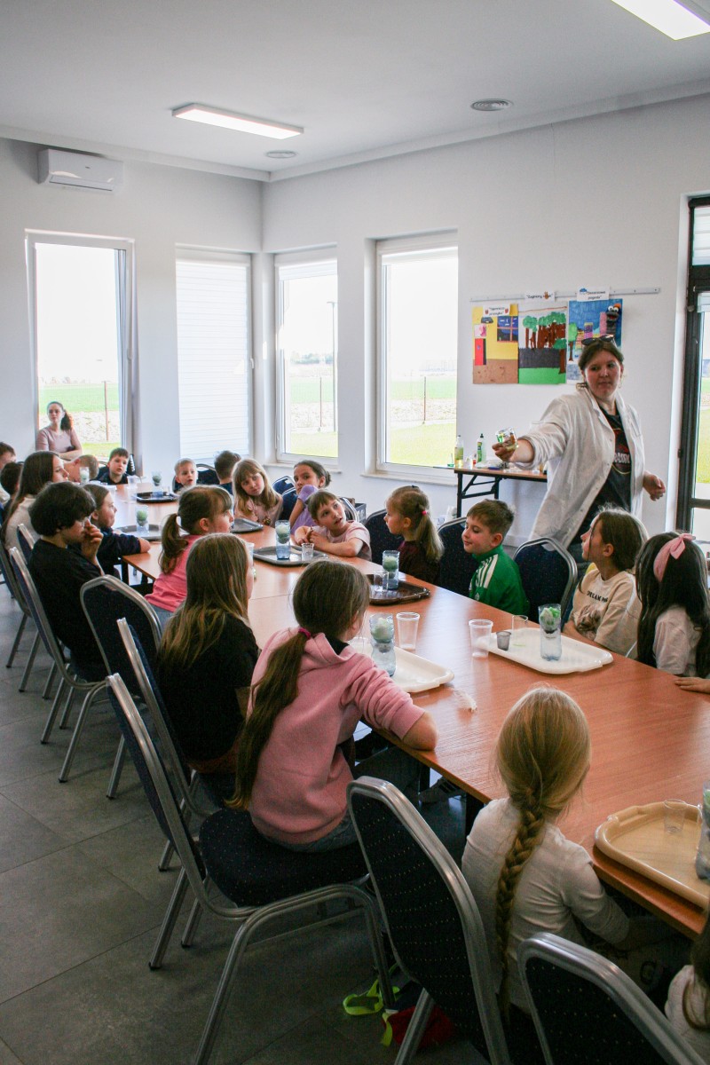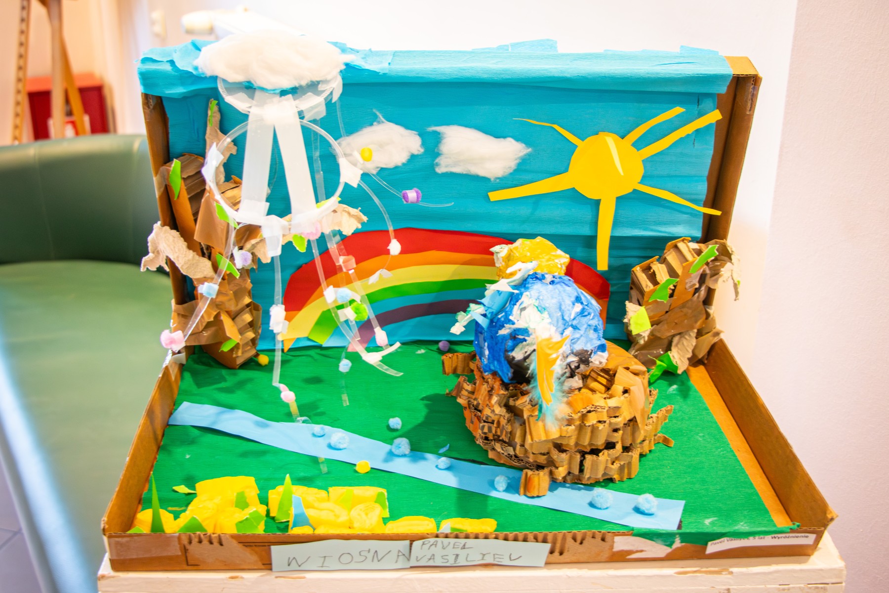 Podczas spotkania dzieci miały okazję wcielić się w rolę małych naukowców i odkrywać tajemnice naszej planet y. Dowiedziały się, jak przebiega proces filtracji wody oraz dlaczego jest on tak ważny dla ochrony środowiska. Poznały również odnawialne źródła energii i wspólnie zastanawiały się, jak możemy z nich korzystać na co dzień. Nie zabrakło także rozmów o zanieczyszczeniu powietrza. Dzieci zobaczyły, jak wygląda ono w praktyce i dowiedziały się, co każdy z nas może zrobić, aby je ograniczyć. Z dumą zaprezentowały też swoją wiedzę na temat segregacji odpadów