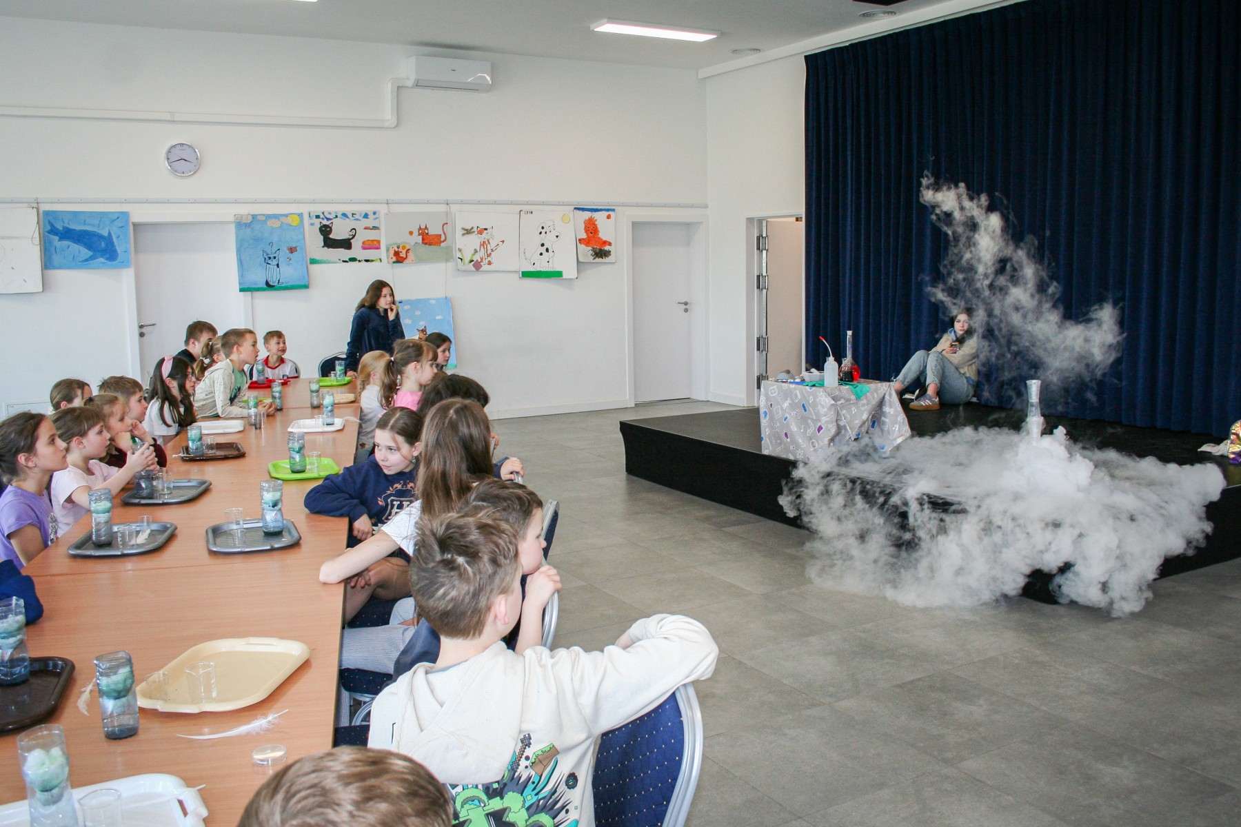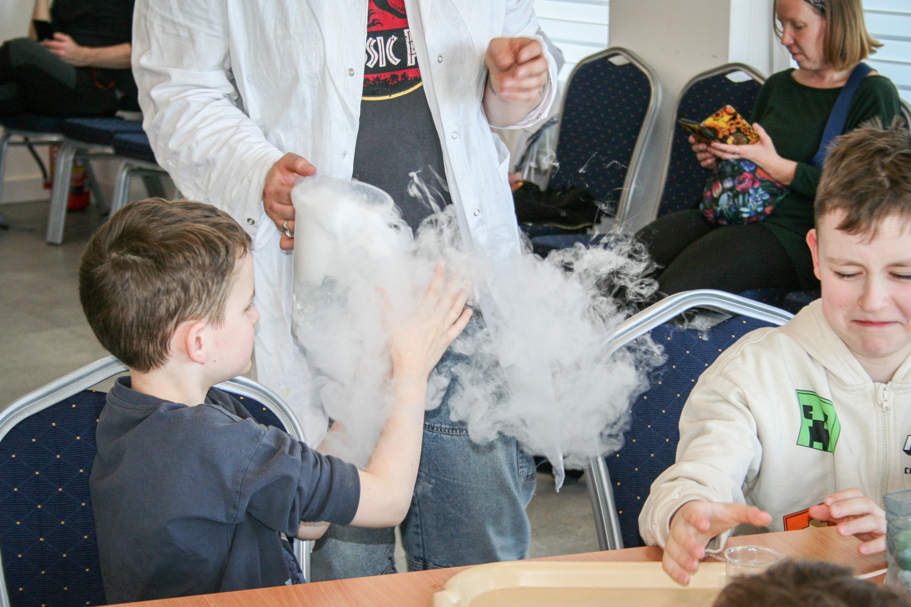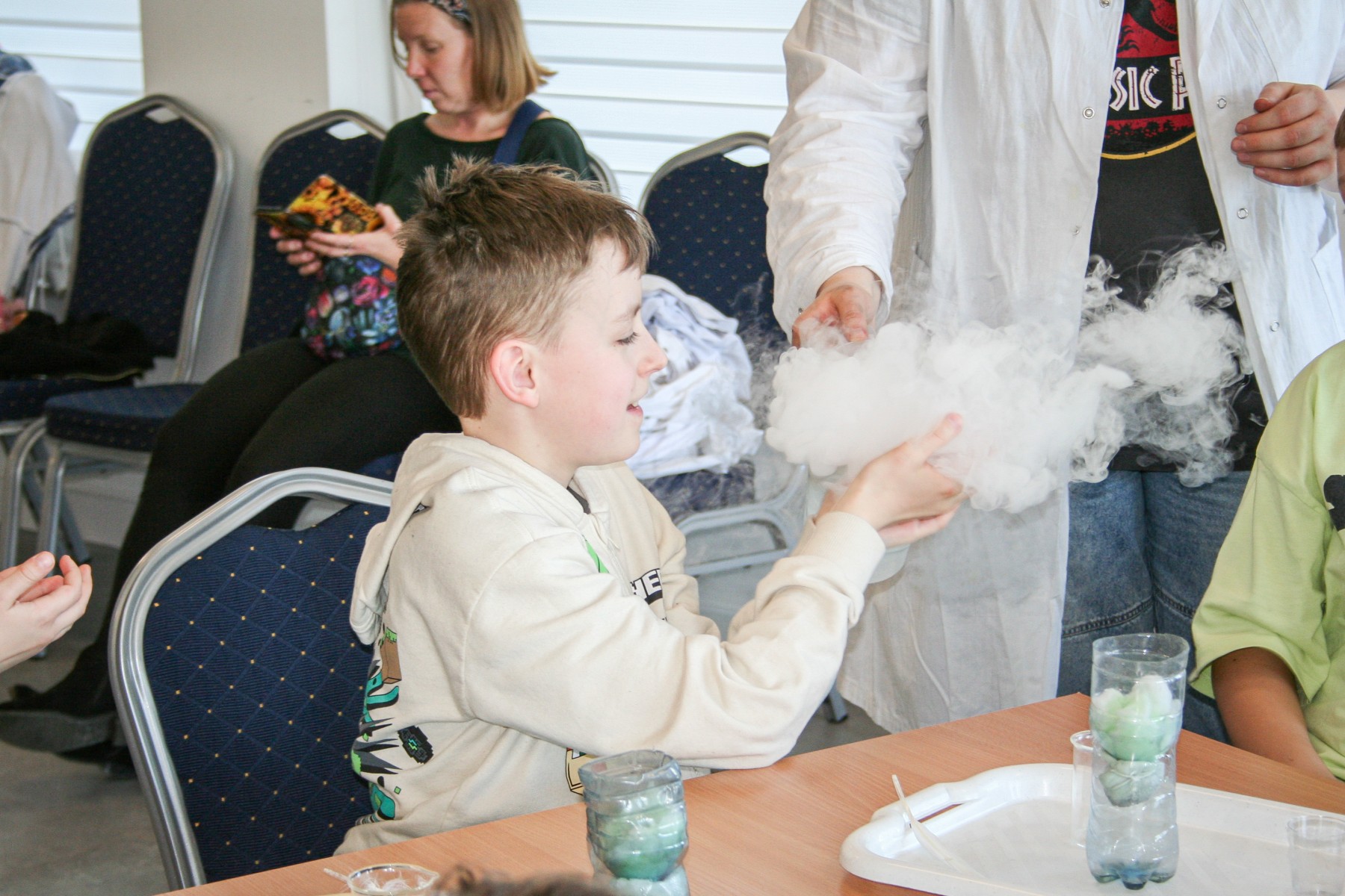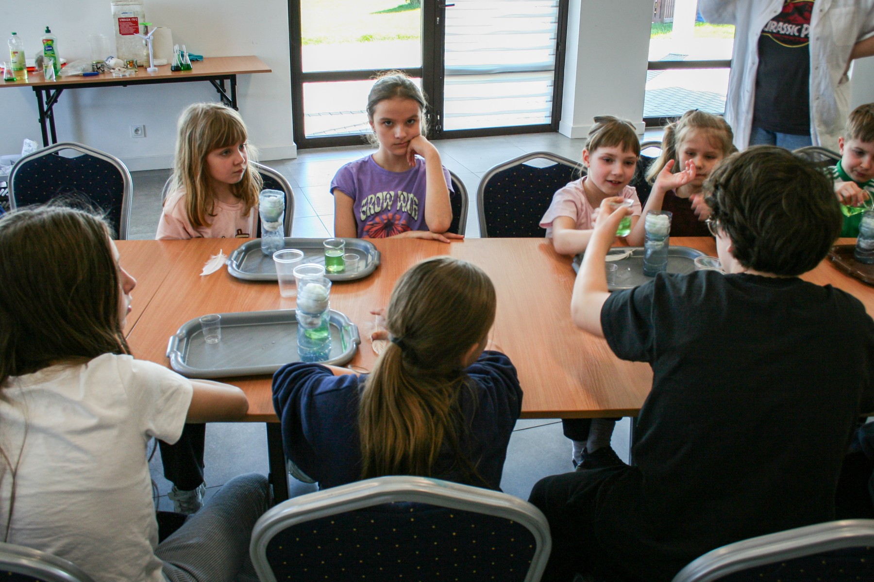 Na zakończenie czekała na wszystkich wyjątkowa atrakcja – „sesja zdjęciowa małego chemika”, podczas której dzieci mogły pozować w efektownej scenerii z suchym lodem.