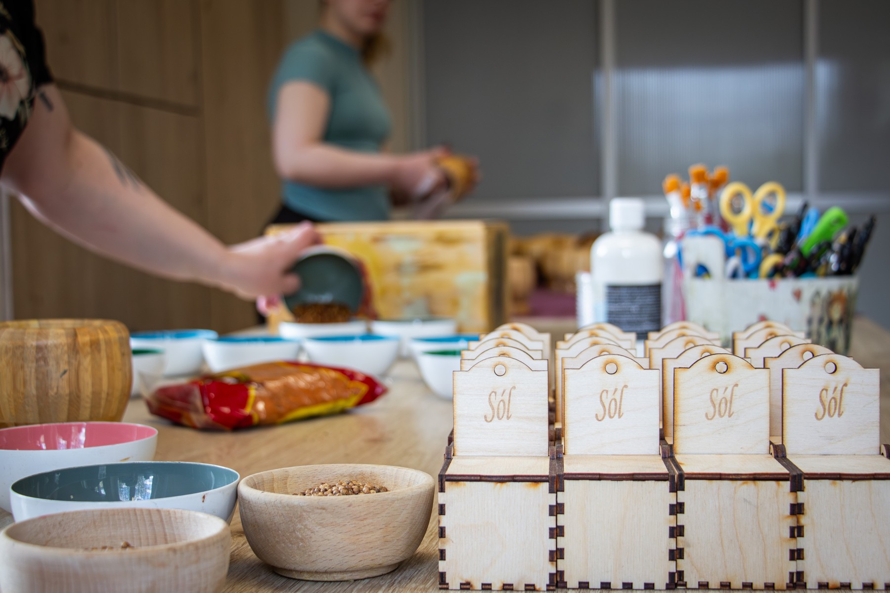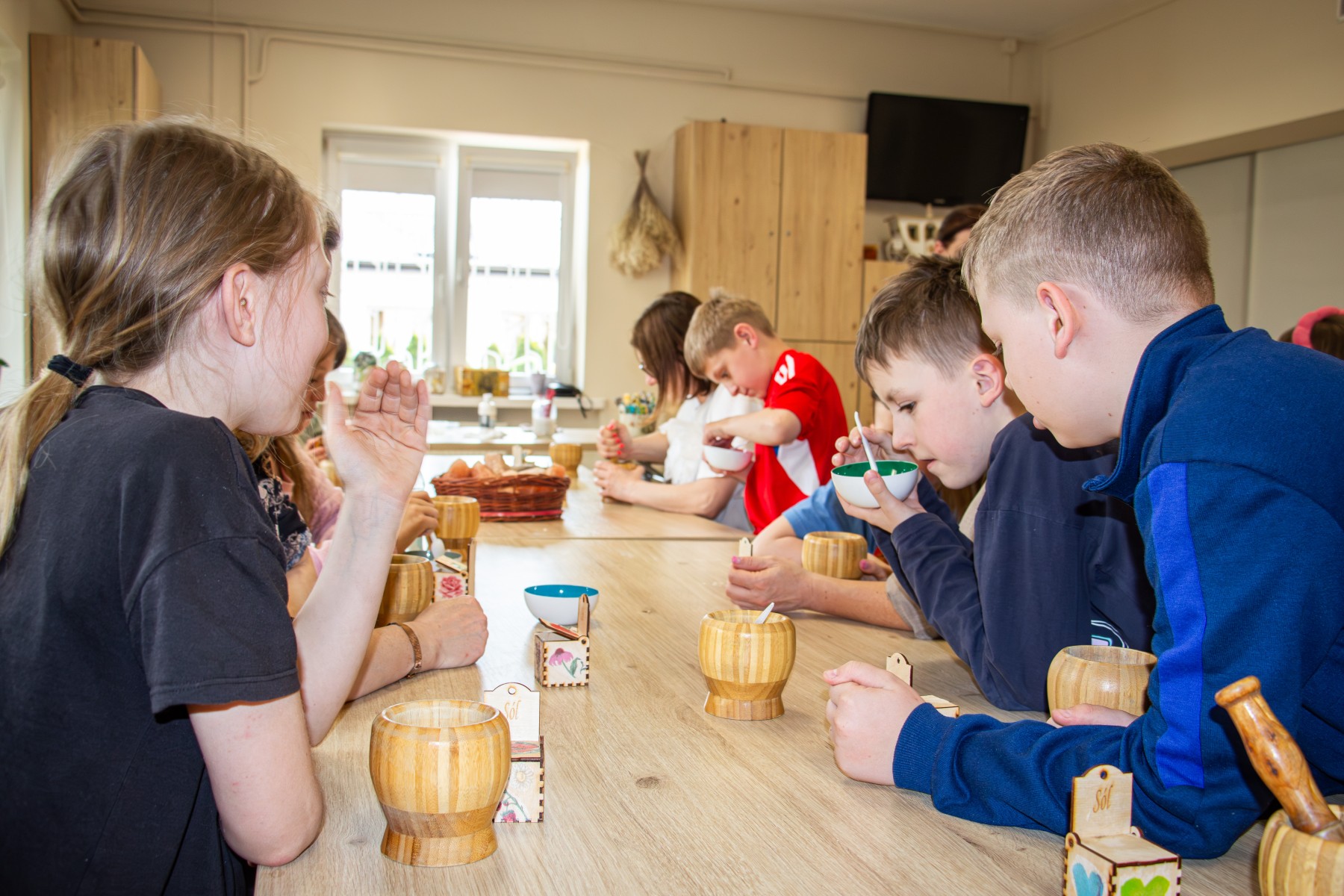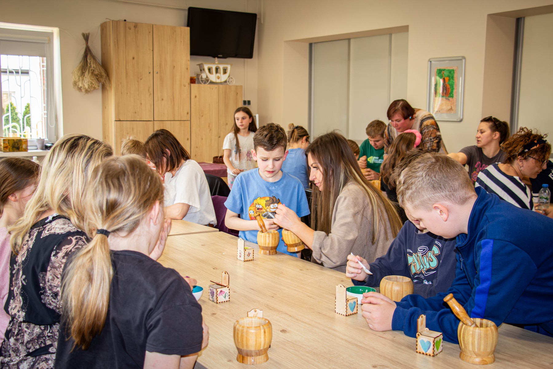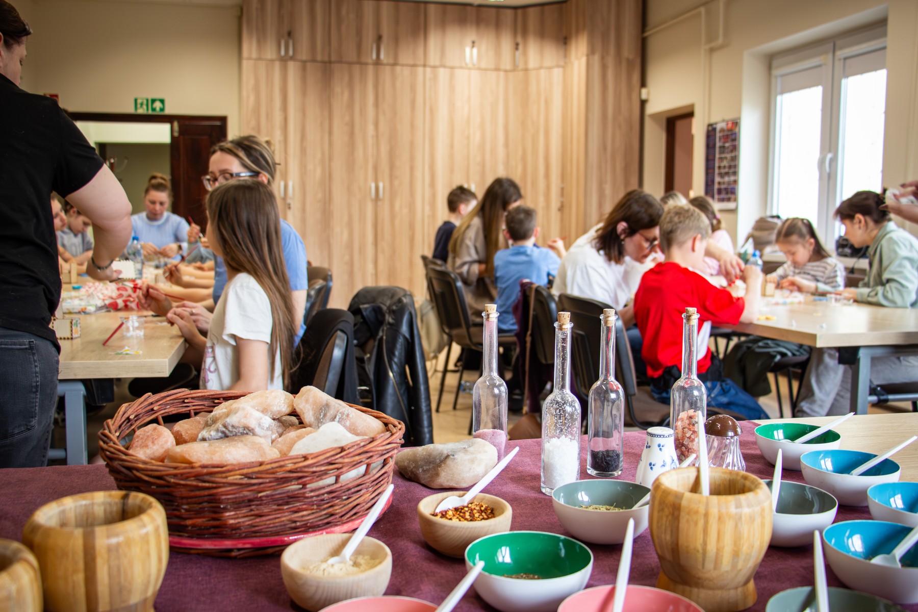 W niedzielę, 19 kwietnia, w Filii Domu Kultury „Uśmiech” w Broniszach odbyły się warsztaty rodzinne „Laboratorium smaku – sól w kuchni”. Zajęcia miały charakter artystyczno-kulinarny. Najpierw jednak spora dawka teorii, a potem przeszliśmy do czynów. Odkryliśmy tajemnice soli, przygotowaliśmy mieszanki smakowe z wykorzystaniem ziół. Następnie ozdobiliśmy drewniane solniczki metodą serwetkową decoupage. Gotowe mieszanki solne przesypaliśmy do ozdobionych solniczek i zabraliśmy do domu. Teraz z pewnością każda potrawa będzie smakowała jeszcze lepiej, SMACZNEGO!