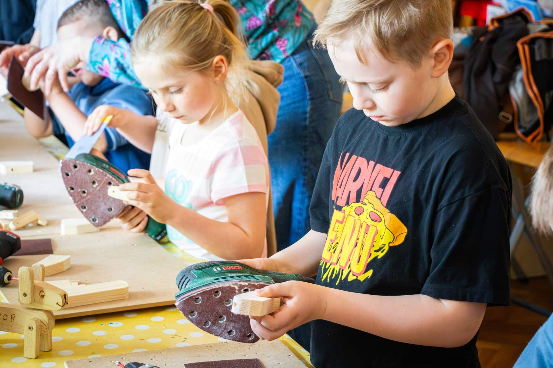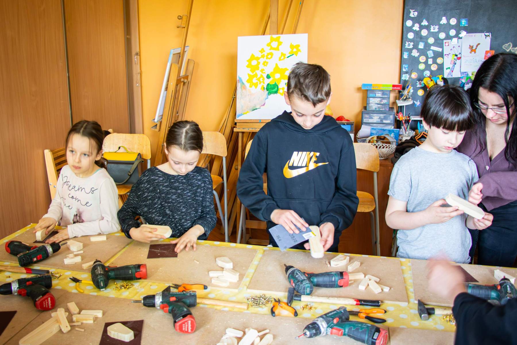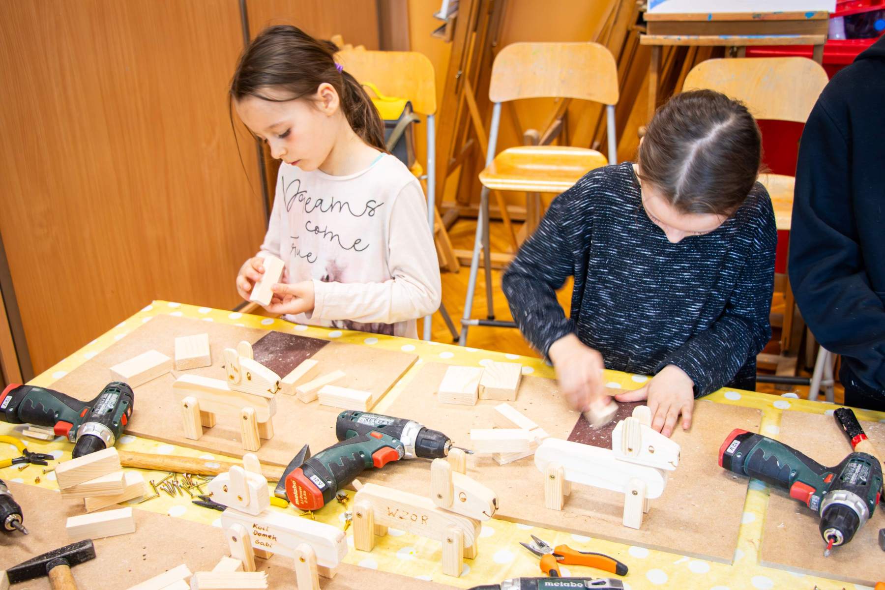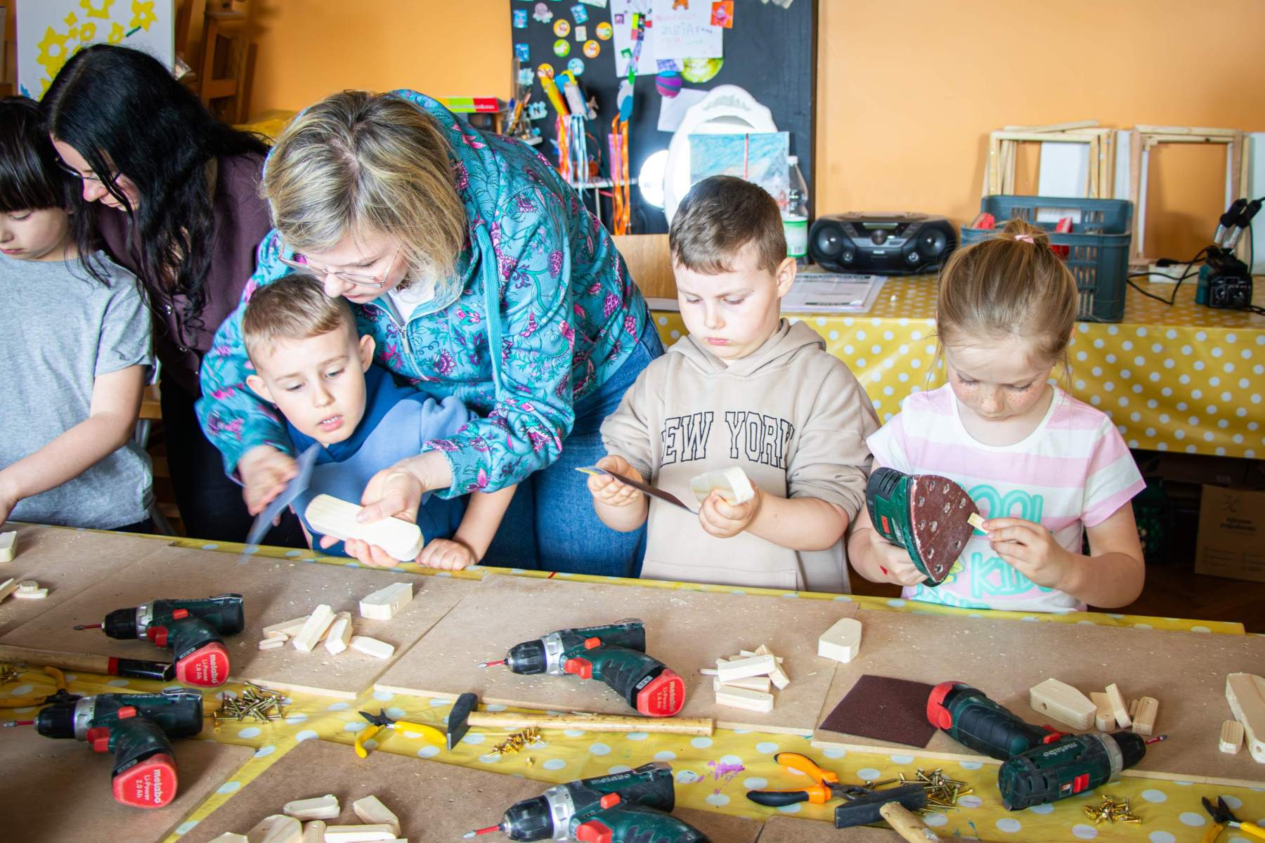 Podczas spotkania uczestnicy mieli okazję zapoznać się z podstawowymi narzędziami i technikami pracy z drewnem. Pod okiem prowadzącego dzieci samodzielnie przygotowywały elementy, a następnie składały swoje prace, rozwijając przy tym zdolności manualne oraz kreatywność.