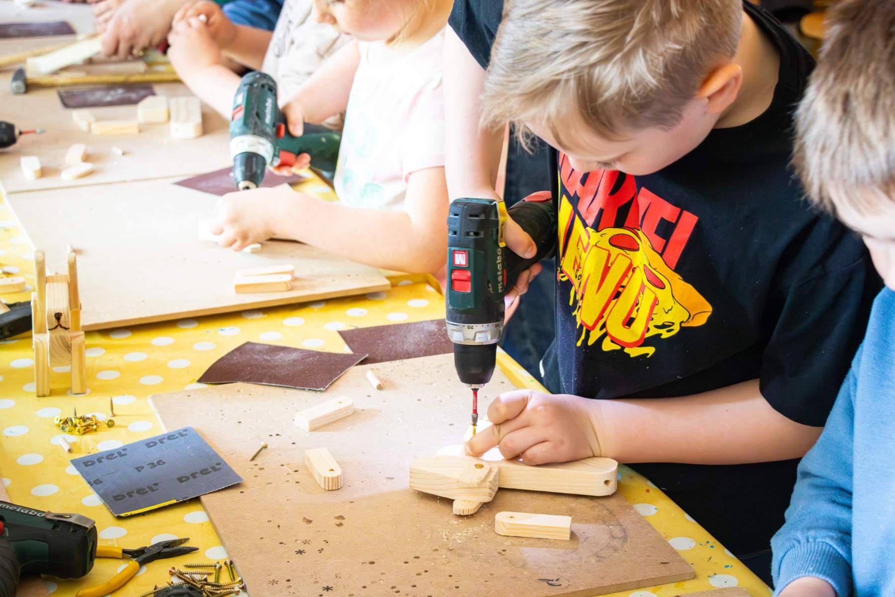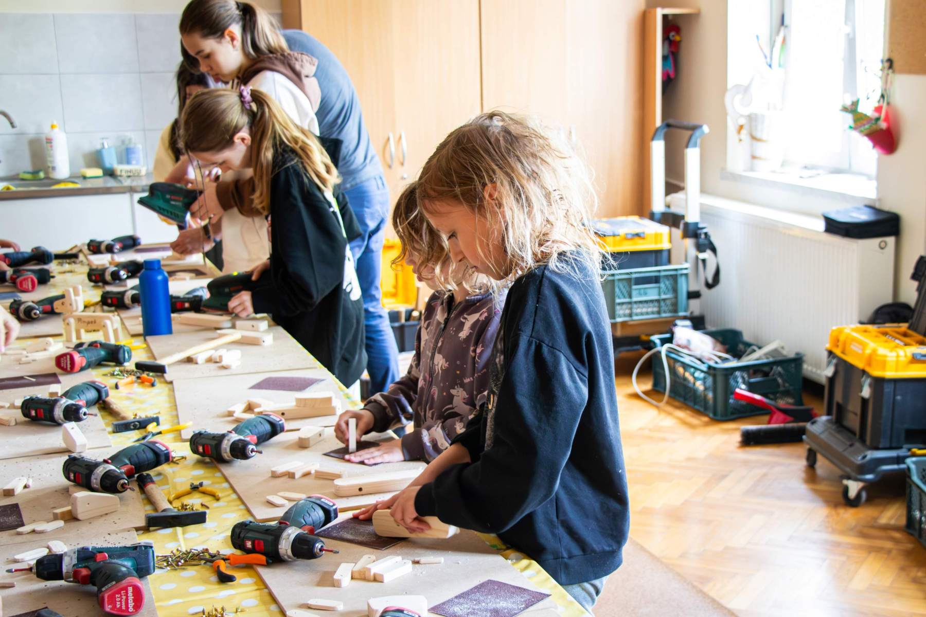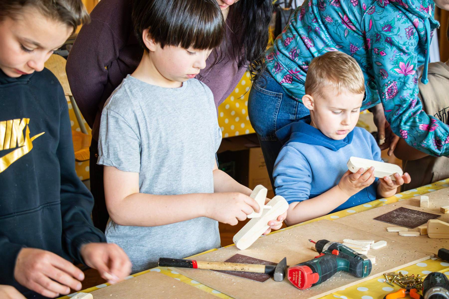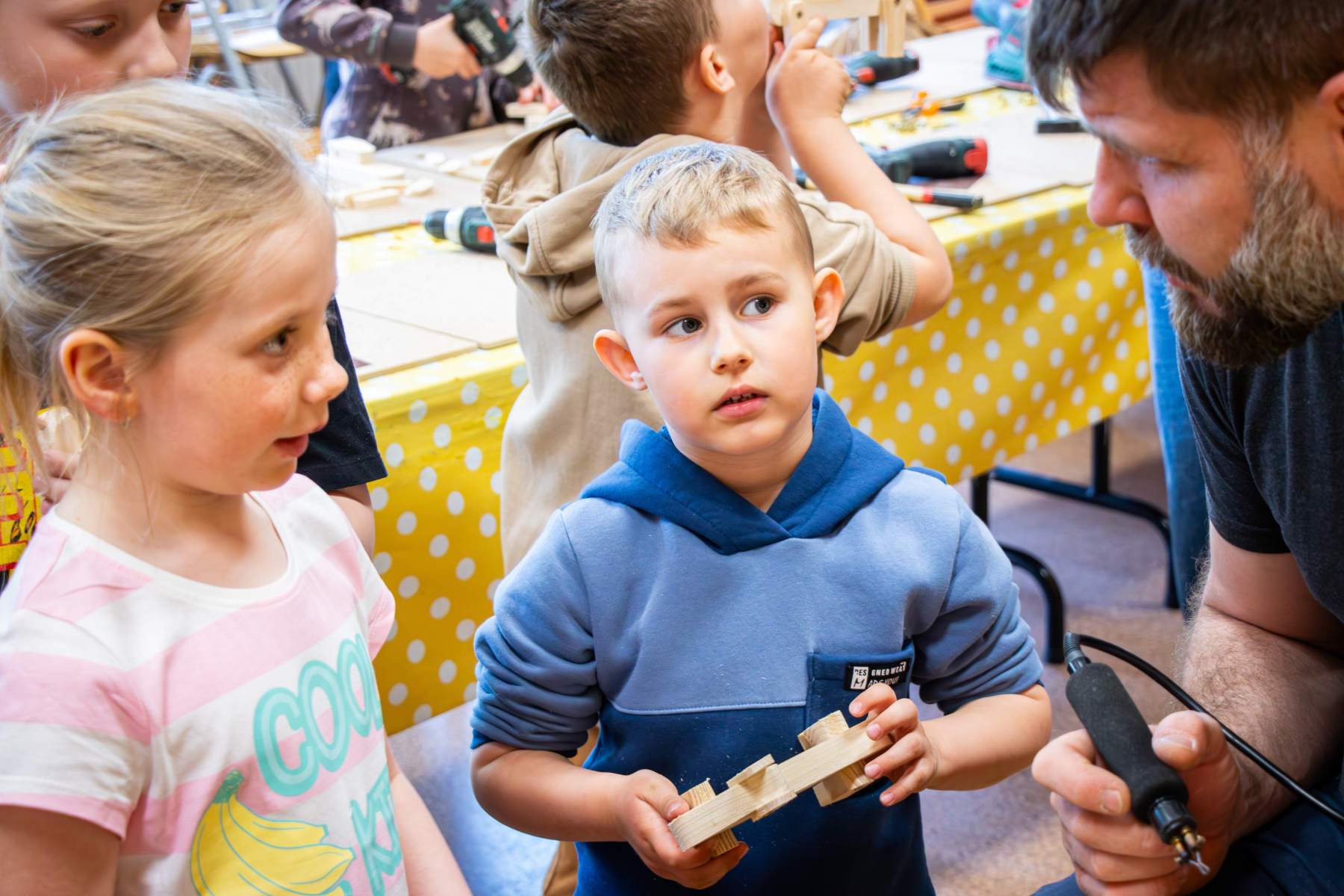 Podczas spotkania uczestnicy mieli okazję zapoznać się z podstawowymi narzędziami i technikami pracy z drewnem. Pod okiem prowadzącego dzieci samodzielnie przygotowywały elementy, a następnie składały swoje prace, rozwijając przy tym zdolności manualne oraz kreatywność.